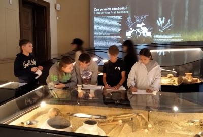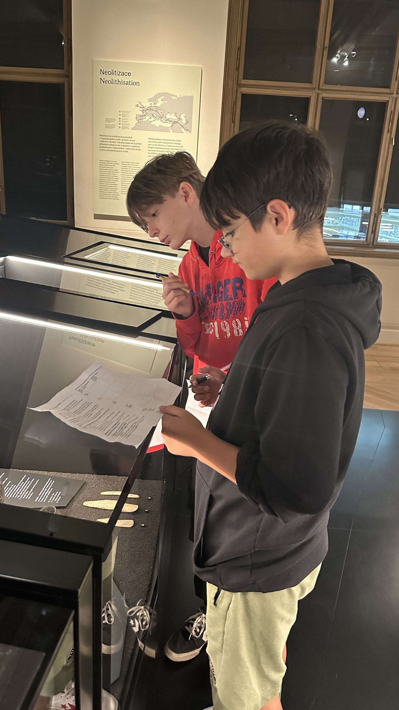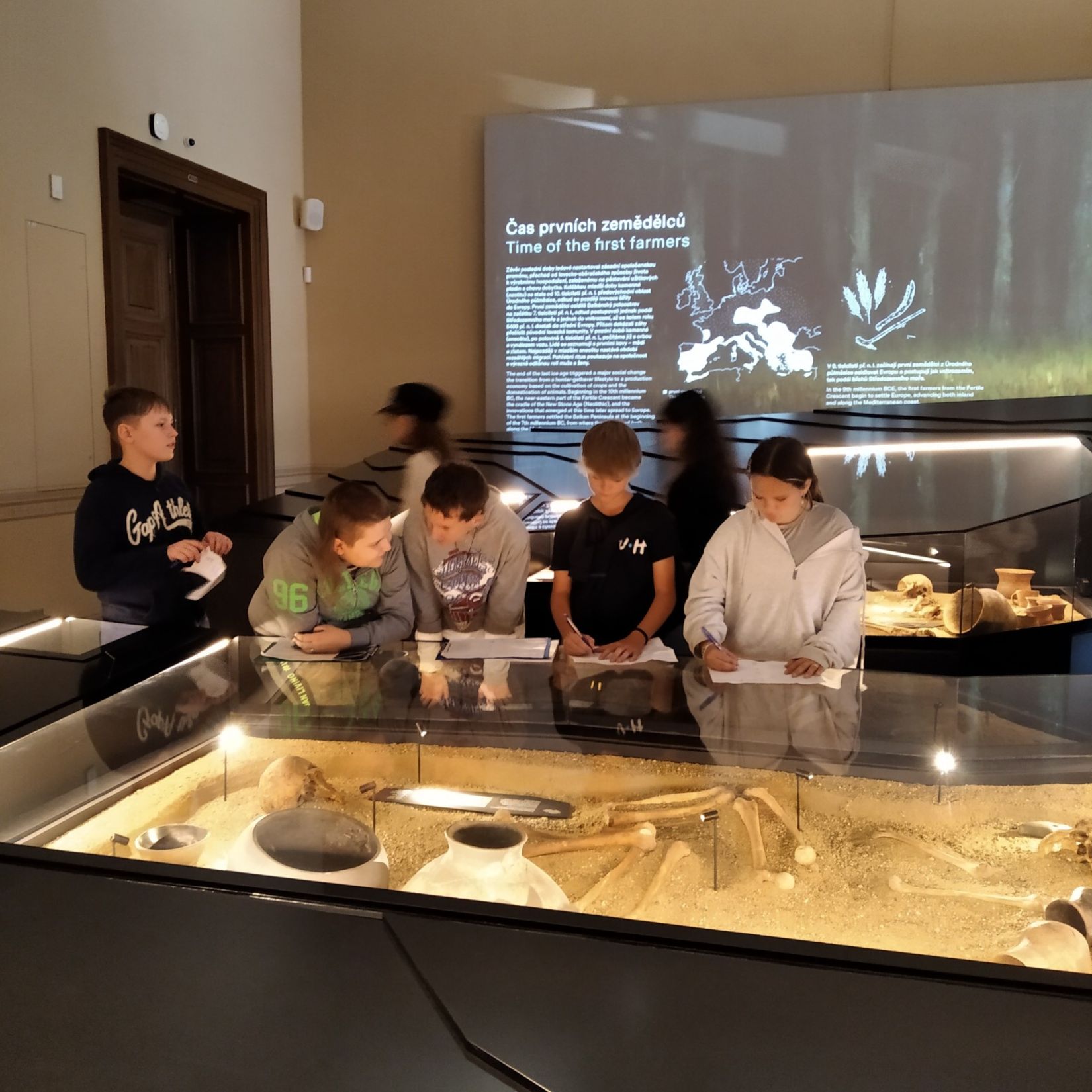 Žáci 6. a 7. tříd se vydali do Historické budovy Národního muzea, kde navštívili novou expozici "Lidé a jejich předci". Ta provádí návštěvníky napříč sedmi miliony let lidské historie - od prvních homininů, kteří sestoupili ze stromů, přes australopitéky a po moderního člověka.