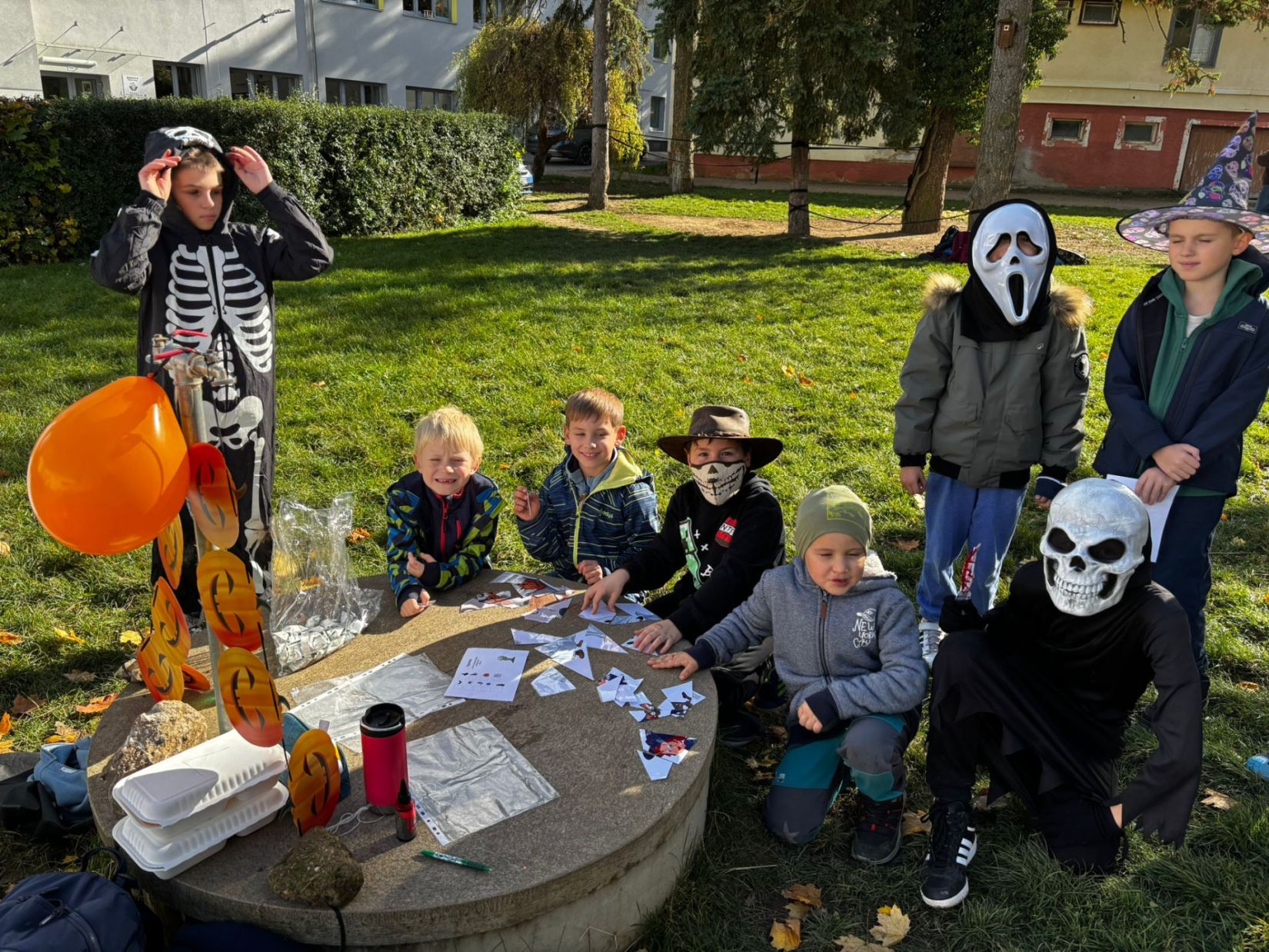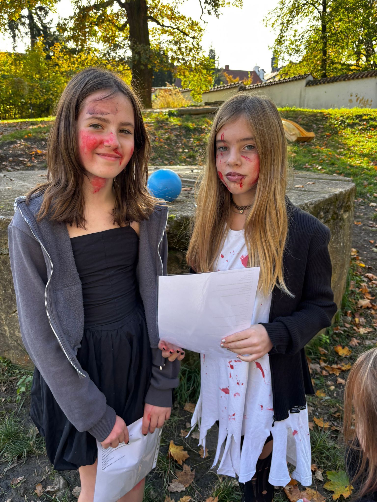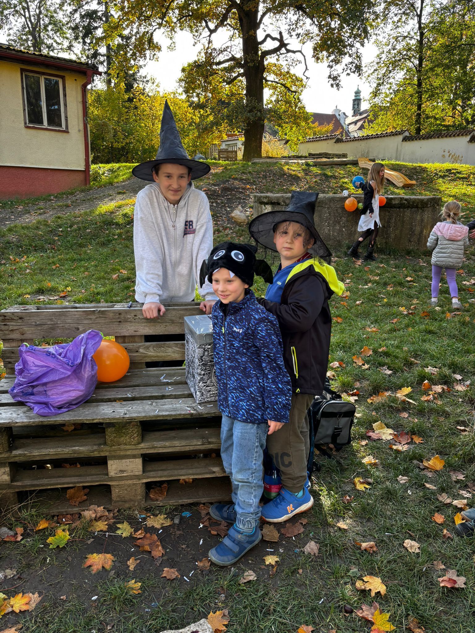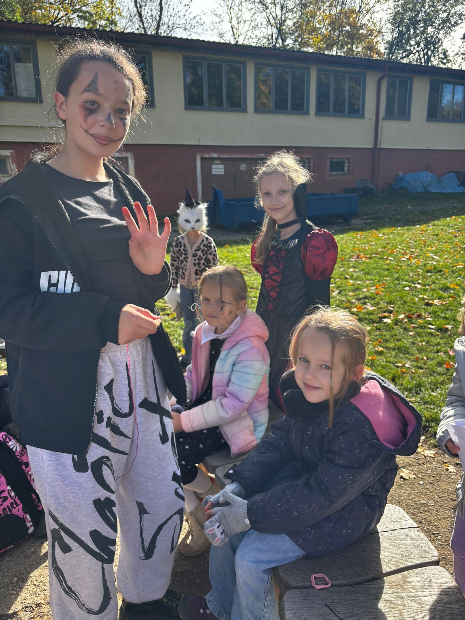 V úterý 21. října 2025 se školní zahrada proměnila v tajemné a strašidelné místo plné duchů, čarodějnic, netopýrů a dýní. Halloweenské odpoledne, které pro mladší spolužáky připravili žáci 6. A a 6. B, se neslo ve znamení zábavy, tvoření a přátelské atmosféry.
