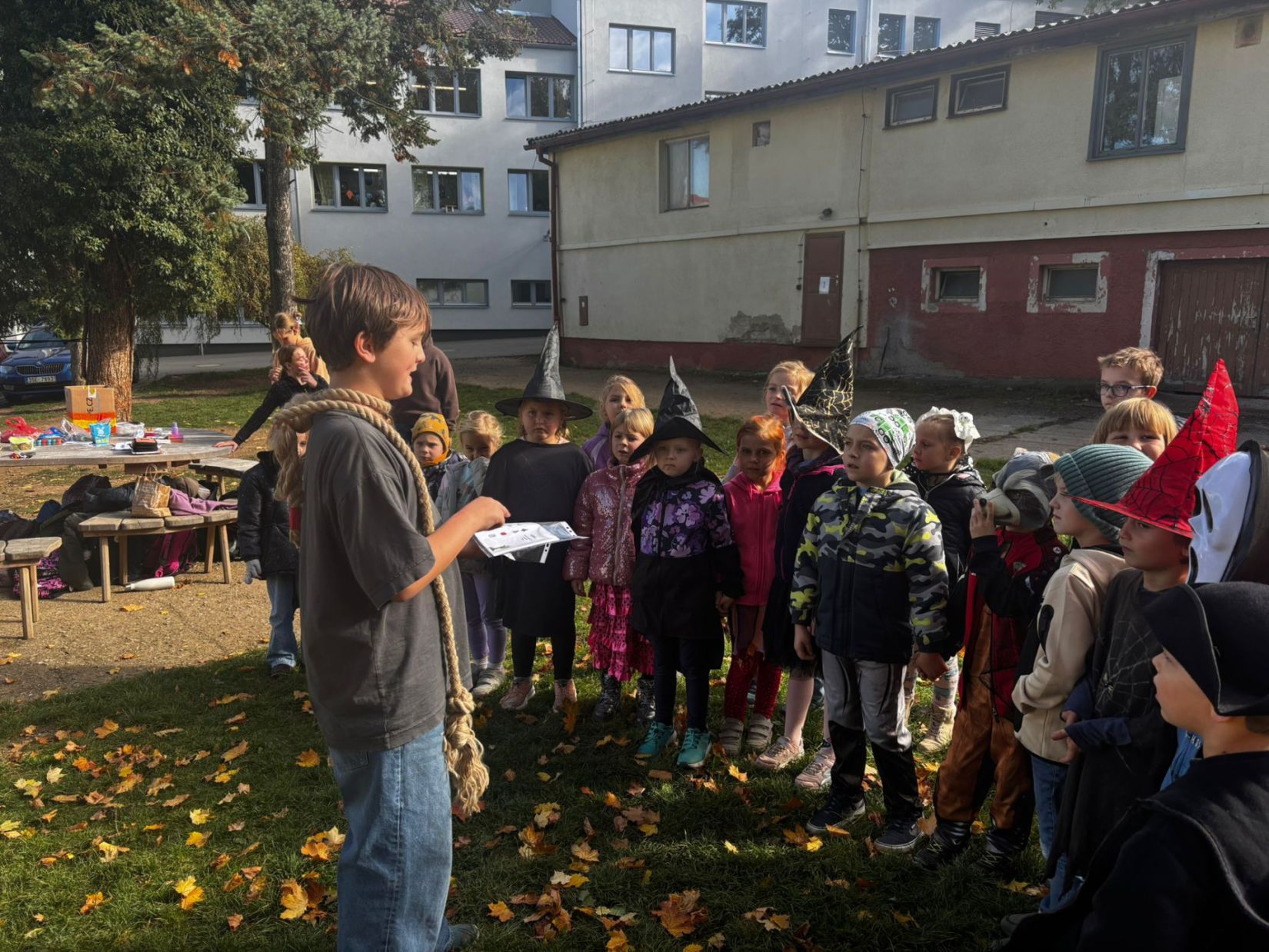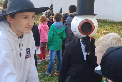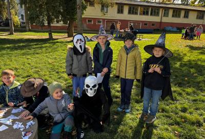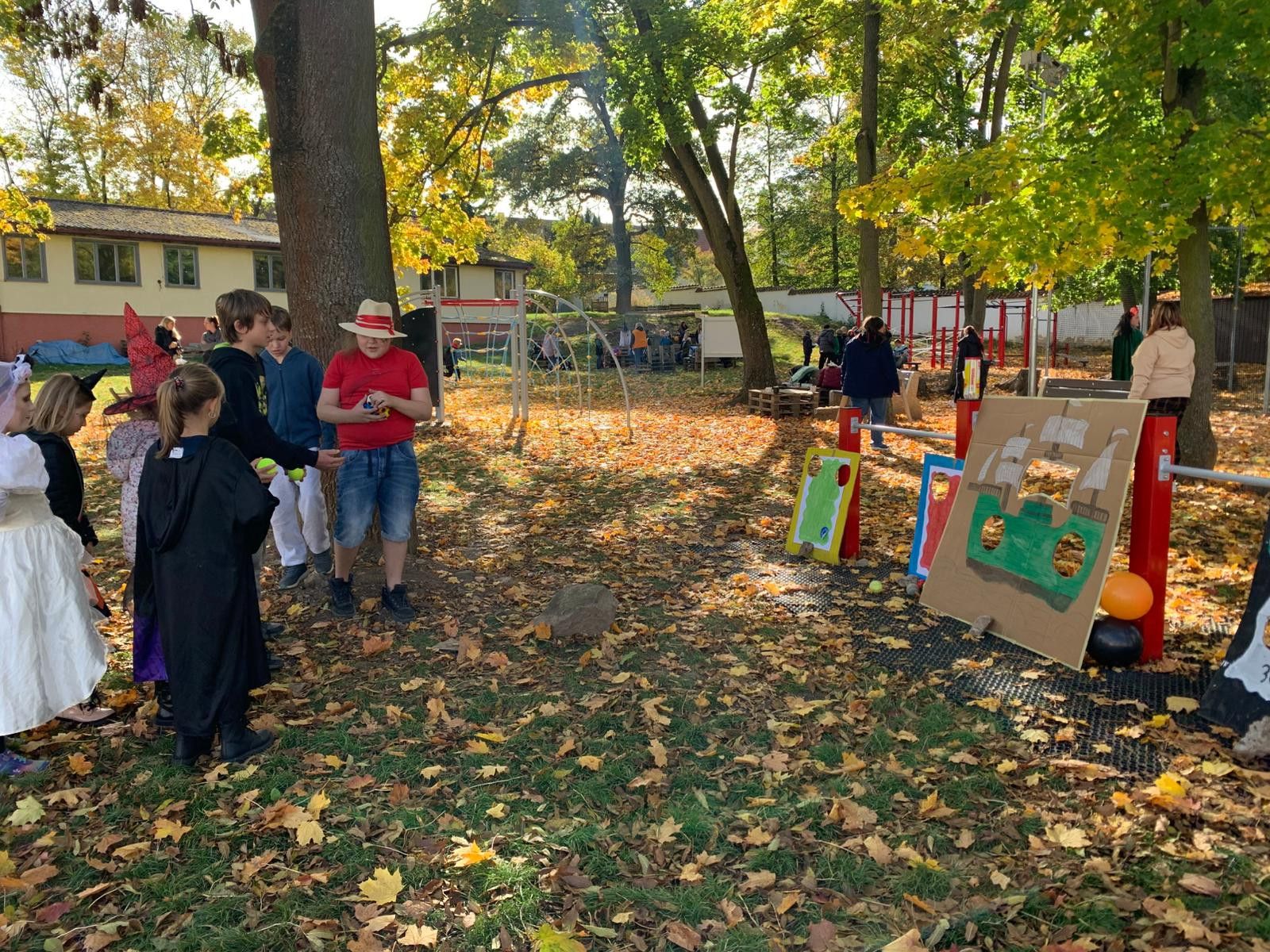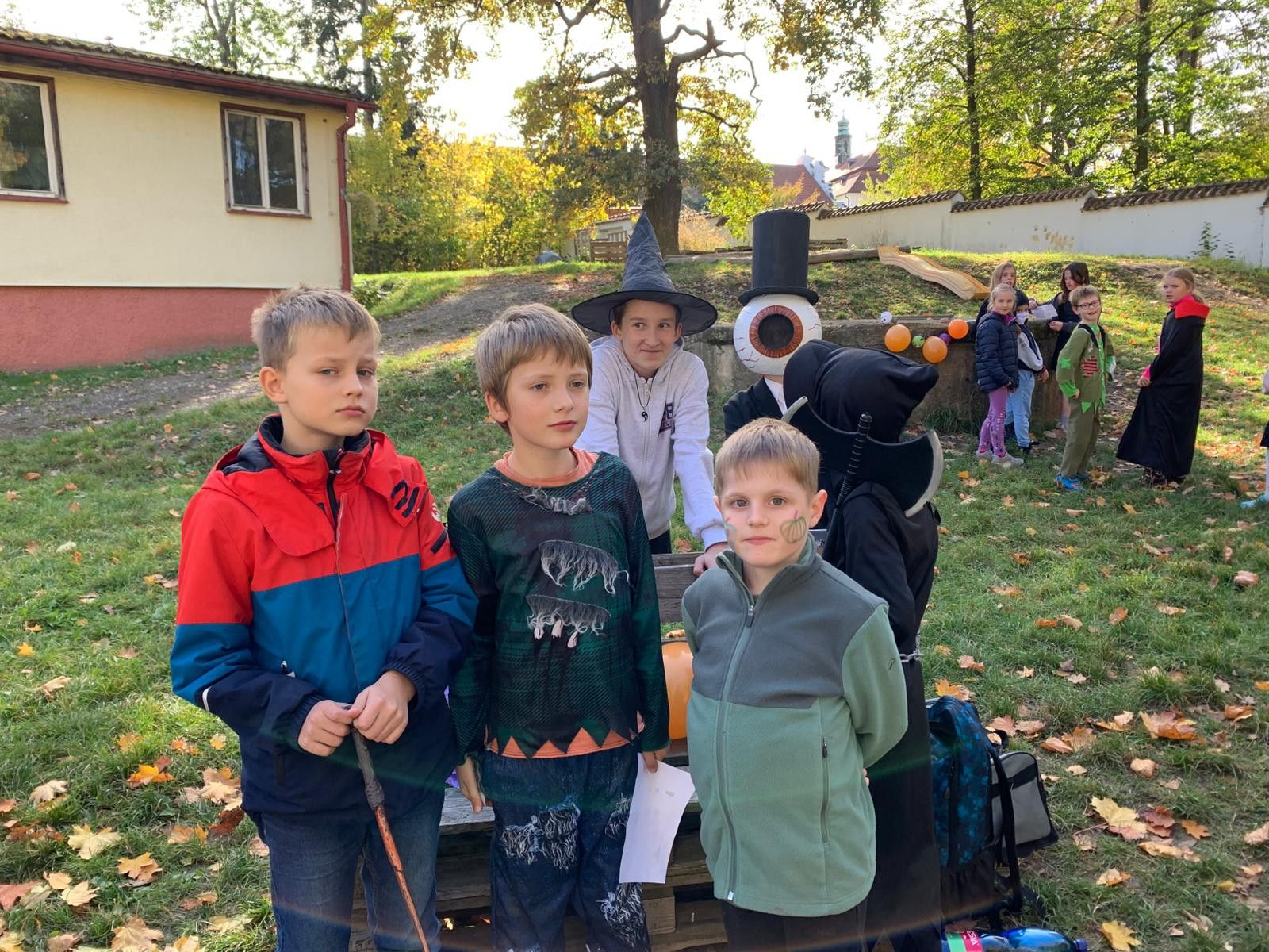 V úterý 21. října 2025 se školní zahrada proměnila v tajemné a strašidelné místo plné duchů, čarodějnic, netopýrů a dýní. Halloweenské odpoledne, které pro mladší spolužáky připravili žáci 6. A a 6. B, se neslo ve znamení zábavy, tvoření a přátelské atmosféry.