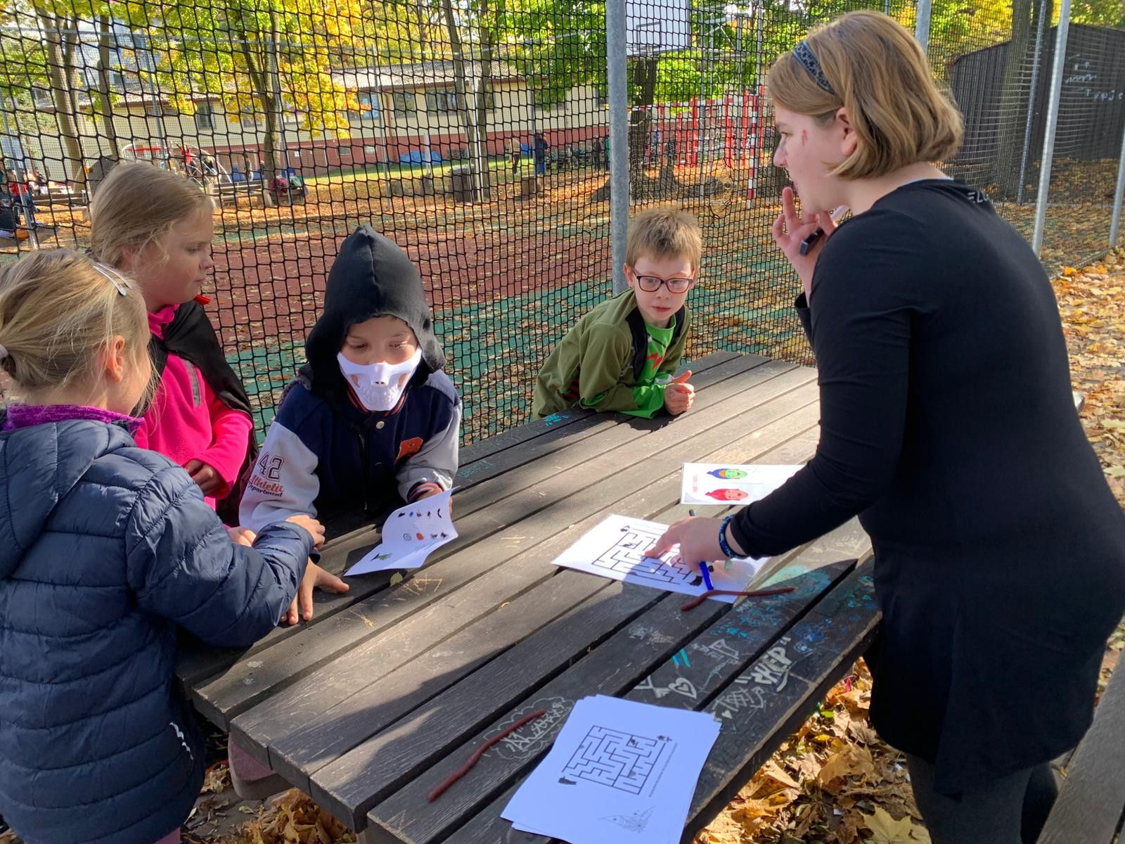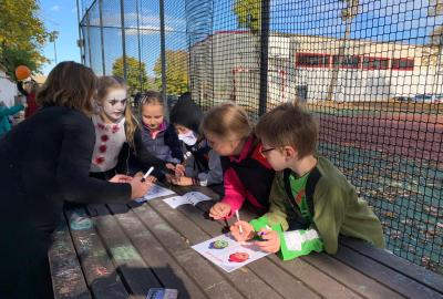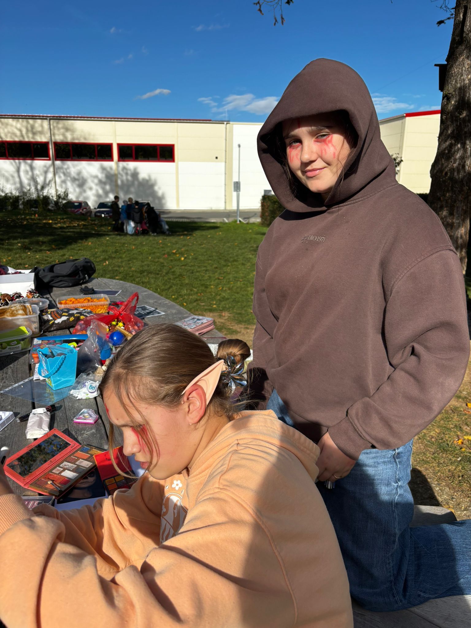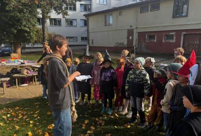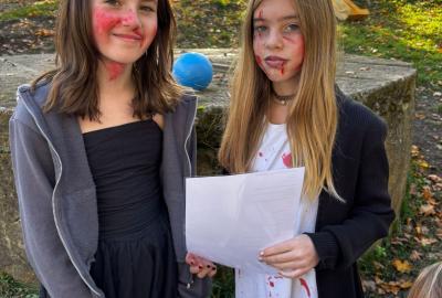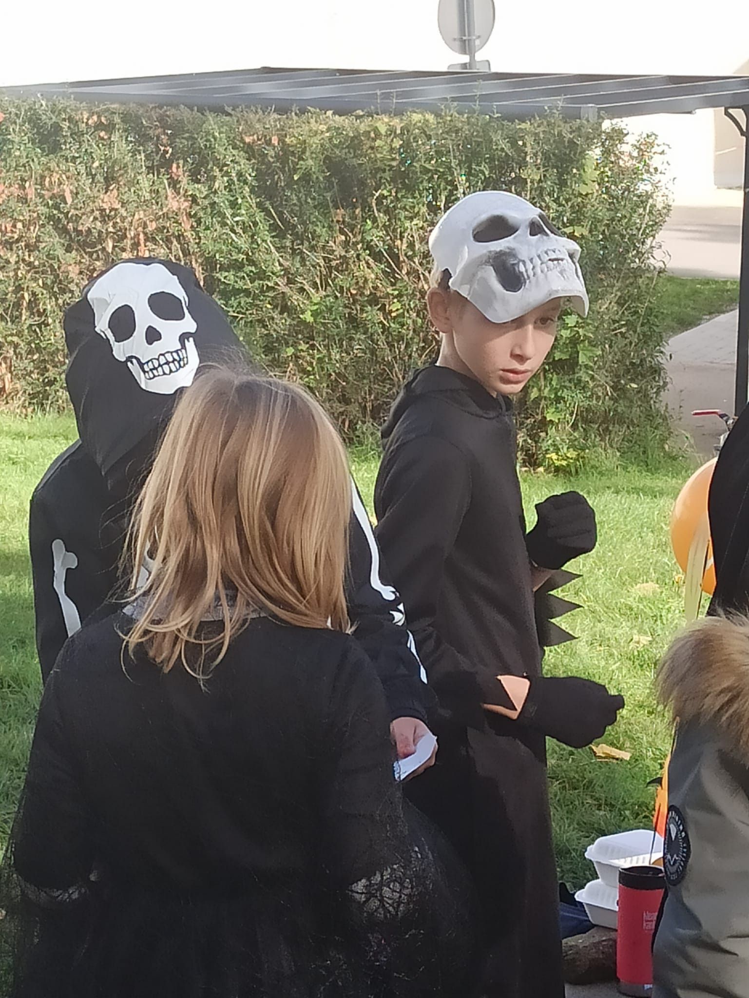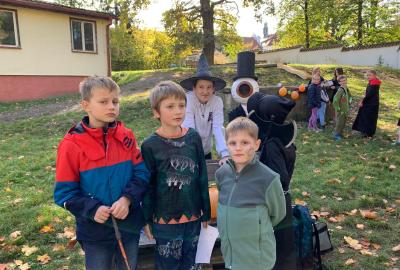 V úterý 21. října 2025 se školní zahrada proměnila v tajemné a strašidelné místo plné duchů, čarodějnic, netopýrů a dýní. Halloweenské odpoledne, které pro mladší spolužáky připravili žáci 6. A a 6. B, se neslo ve znamení zábavy, tvoření a přátelské atmosféry.