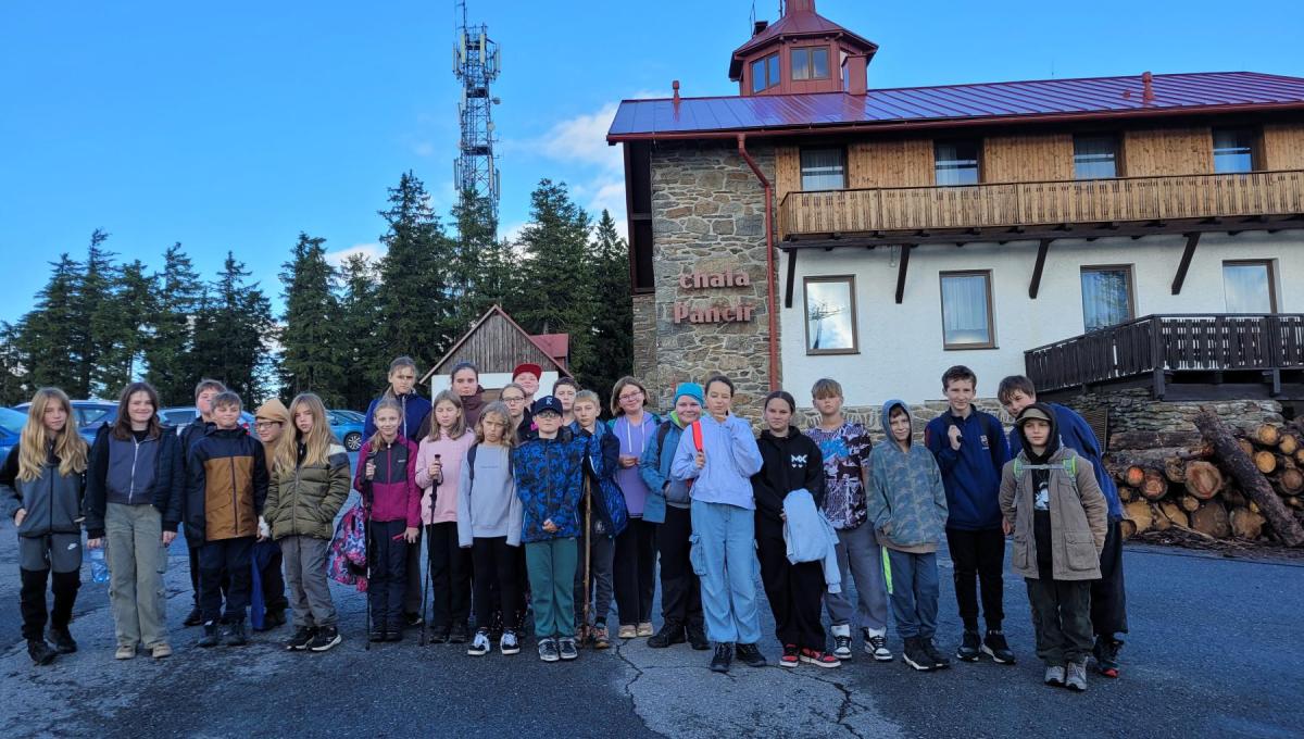 Poté jsme si pochutnali na výborném obědě – kuřecím vývaru s nudlemi a oblíbených špagetách. Odpoledne jsme se vydali na pěší túru na Pancíř, kde nás v cíli odměnilo krásné podzimní počasí – modrá obloha a sluneční paprsky.