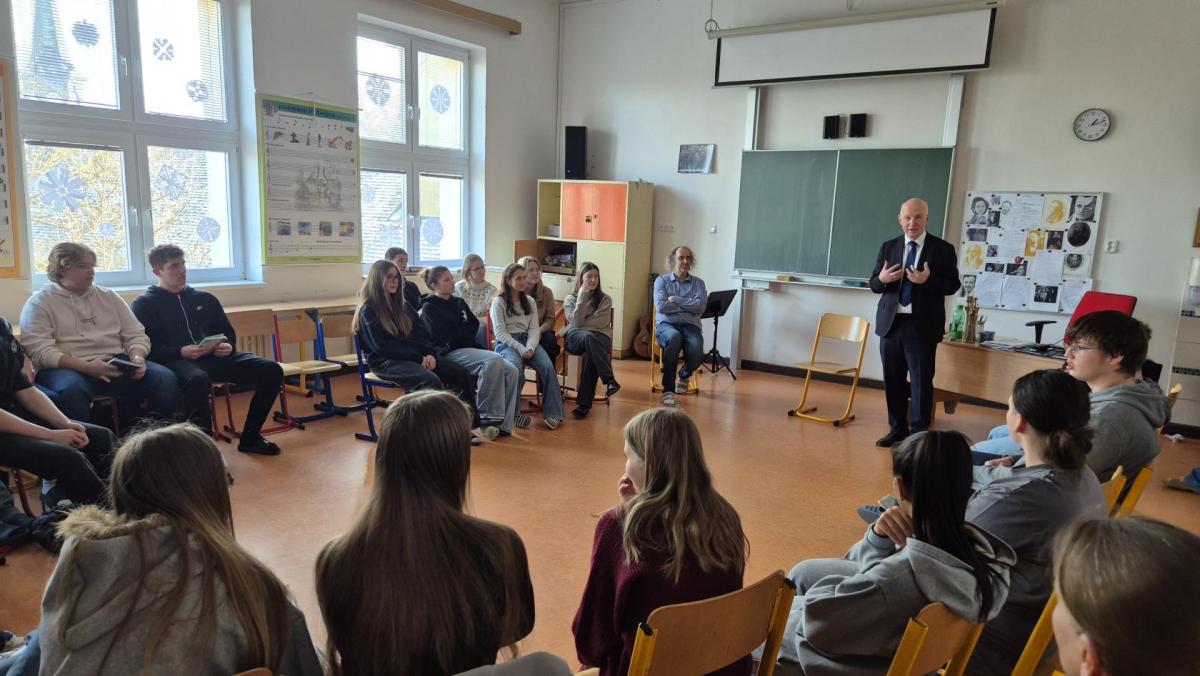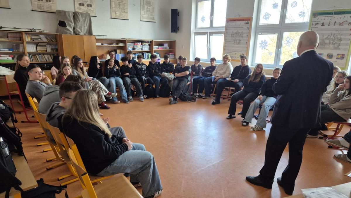 V úterý 6.1. 2025 se na naší škole uskutečnila beseda se senátorem Pavlem Fischerem, která byla určena pro žáky 8. a 9. ročníků.