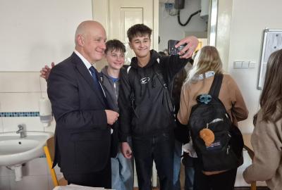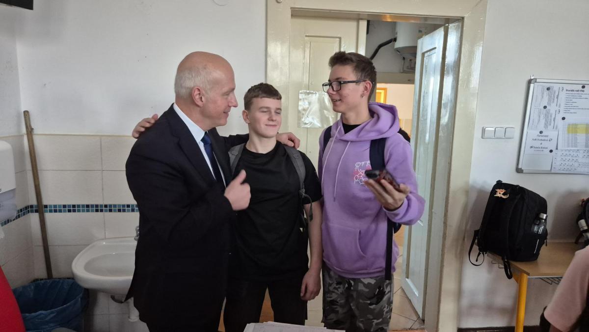 Diskuze byla velmi zajímavá a přinesla mnoho podnětných myšlenek o aktuálním dění, práci v politice ale i ze soukromého života. Žáci měli možnost klást otázky a dozvědět se více o tématech, která je zajímají. Atmosféra byla příjemná a akce se setkala s pozitivním ohlasem. Velmi děkujeme našemu kolegovi Petru Krutskému, který celou akci zorganizoval a postaral se i o hudební závěr besedy, kde jsme si s panem Fischerem společně zazpívali :-).