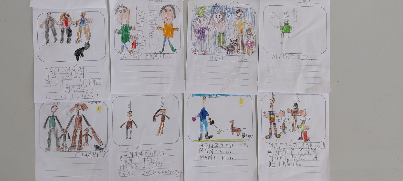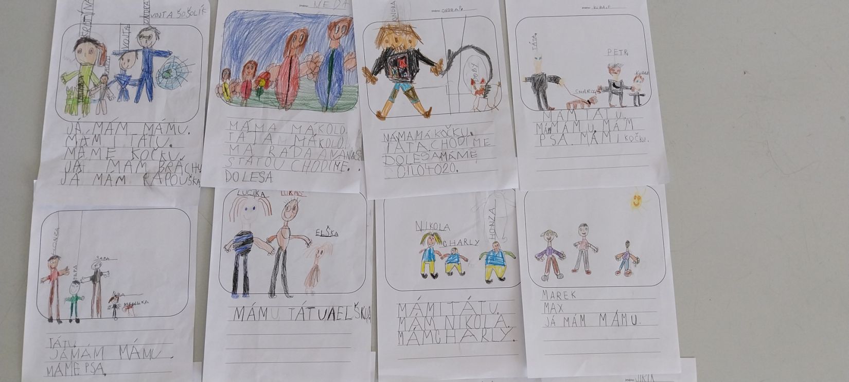Krásně se jim dařilo! Když nevěděli, jako to napsat, přišli se zeptat. Napsala jsem jim to na lístek nebo na tabuli a oni to opsali.