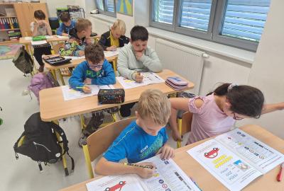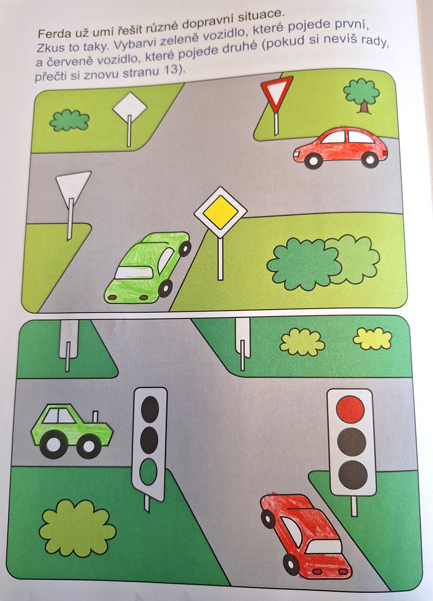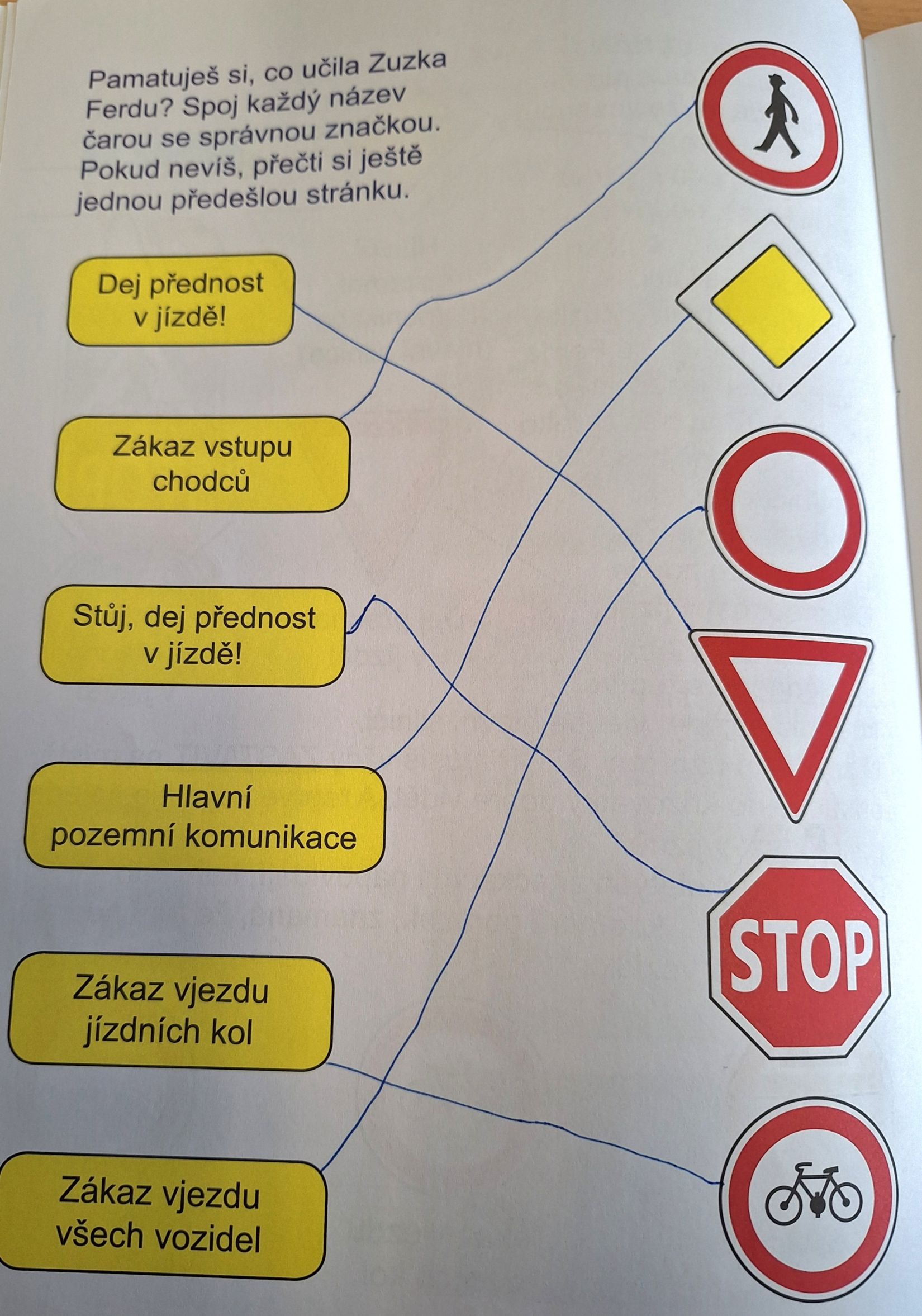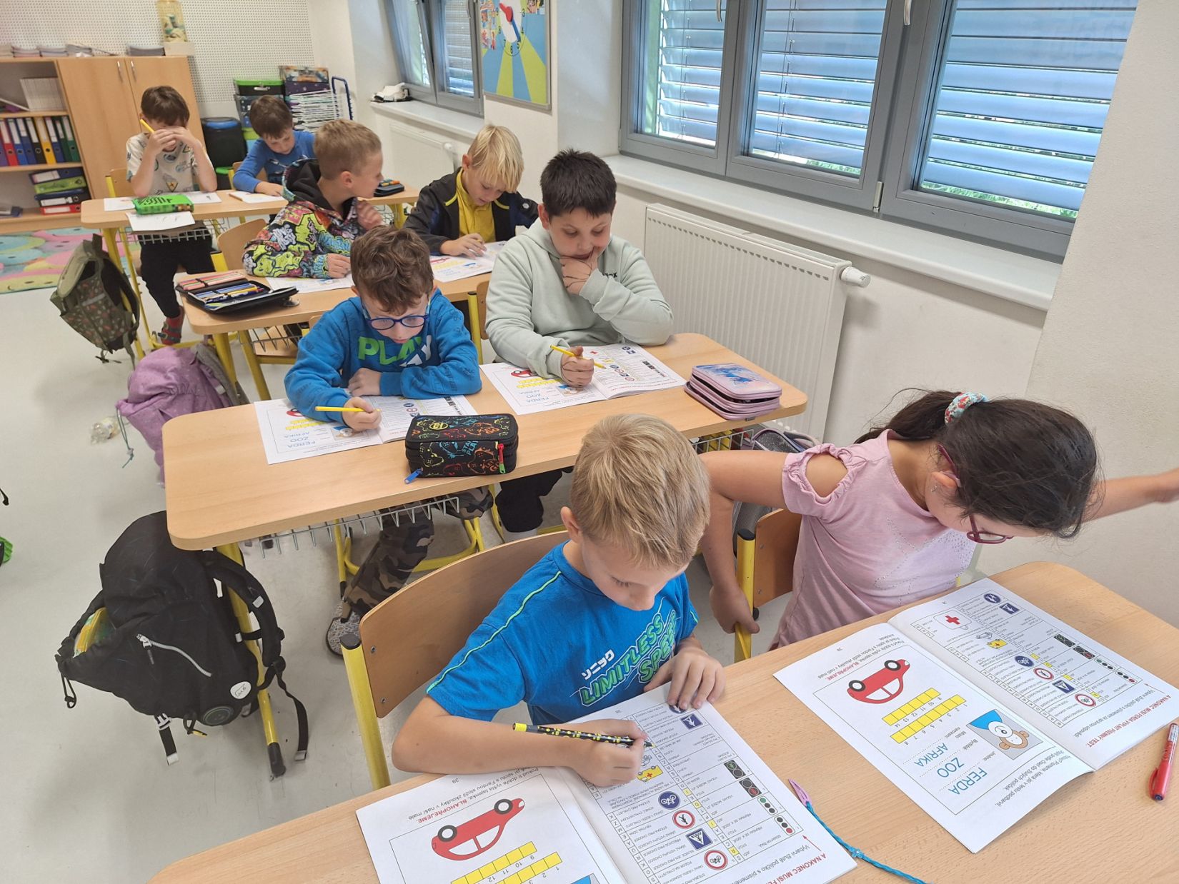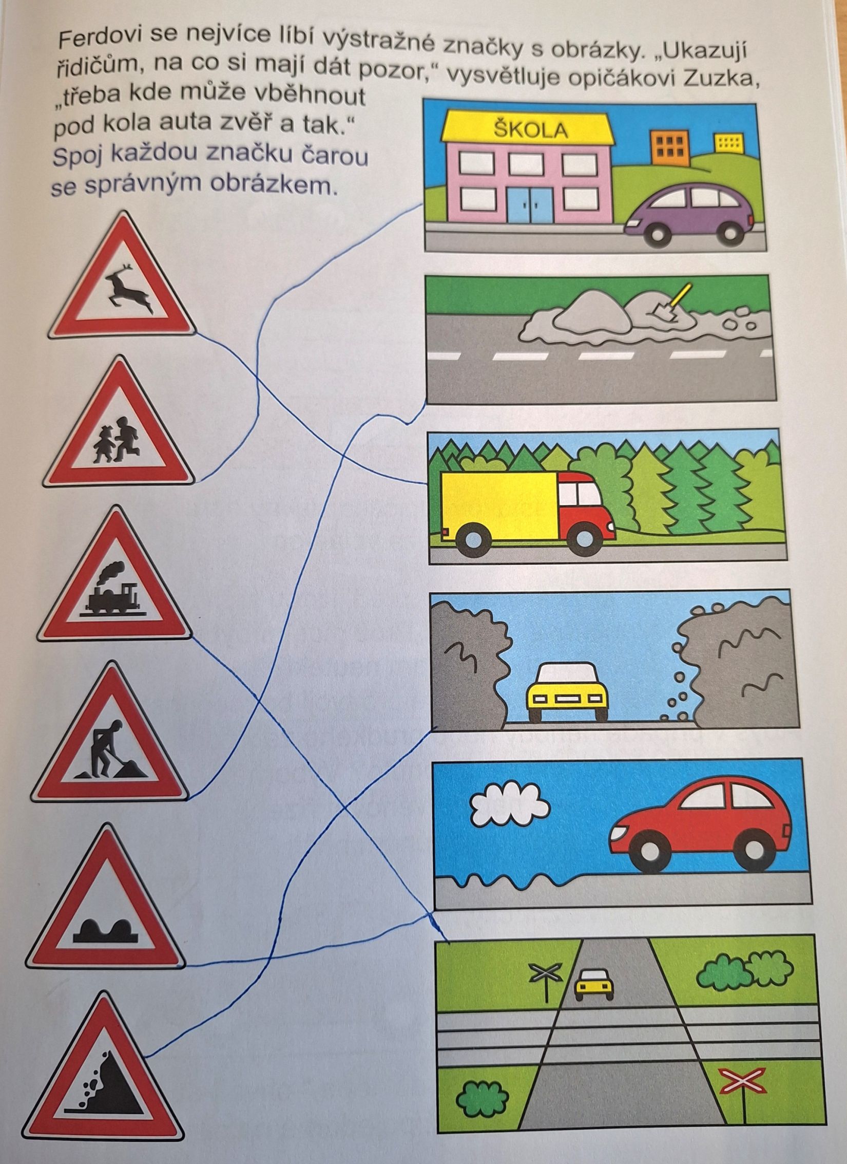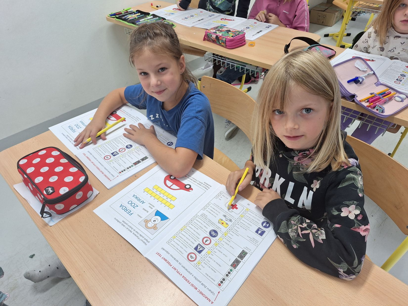 Celý měsíc září jsme věnovali dopravní výchově. Povídali jsme si o naší cestě do školy. Abychom ji hravě zvládli, seznámili jsme se se základními pravidly silničního provozu. K tomu jsme použili pracovní sešit Ferda v autoškole. Děti to moc bavilo. Propojili jsme hodiny čtení a prvouky. Četli jsme si o tom, jak opičák Ferda dělal autoškolu. Žáci se tak seznámili s nejdůležitějšími dopravními značkami, umí řešit základní dopravní situace na křižovatce či u železničního přejezdu, ví, jaká je základní výbava cyklisty, znají telefonní čísla na policii, hasiče a záchrannou službu... Na závěr žáci spolu s Ferdou složili zkoušku. Pracovali ve dvojicích a byli moc šikovní.