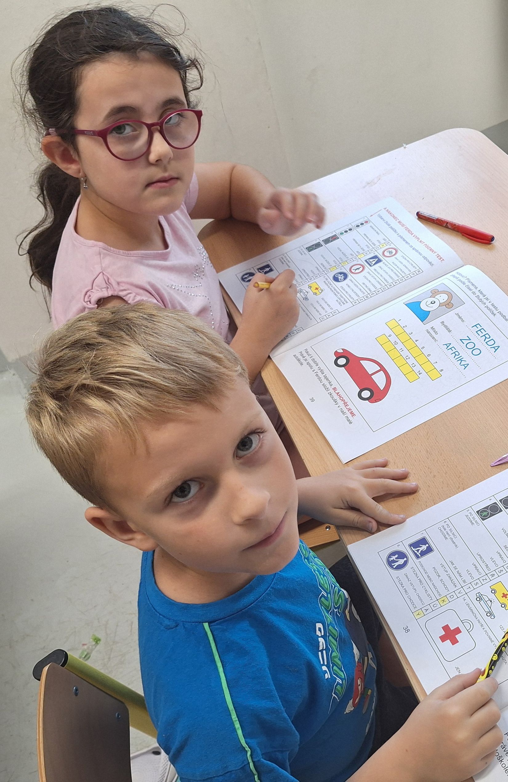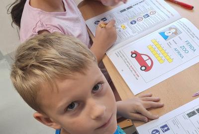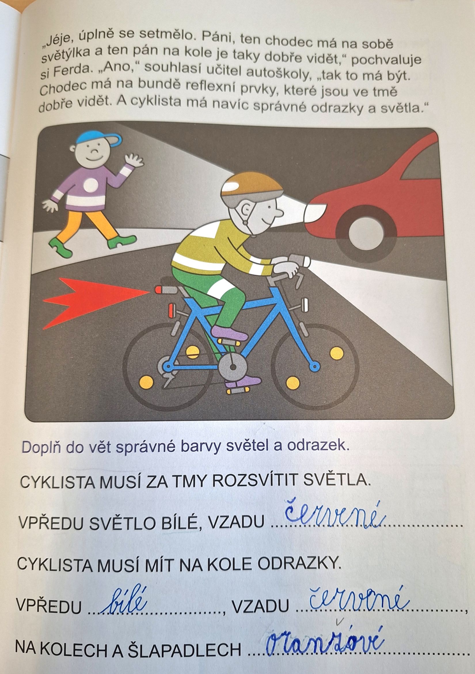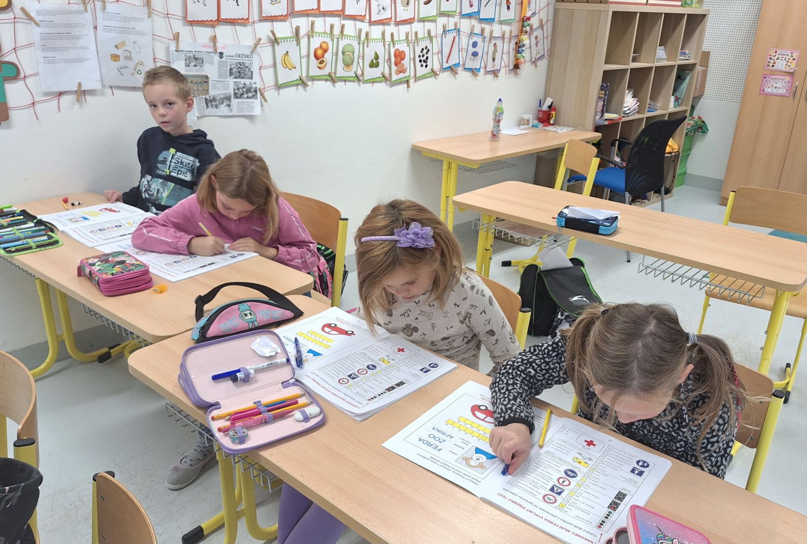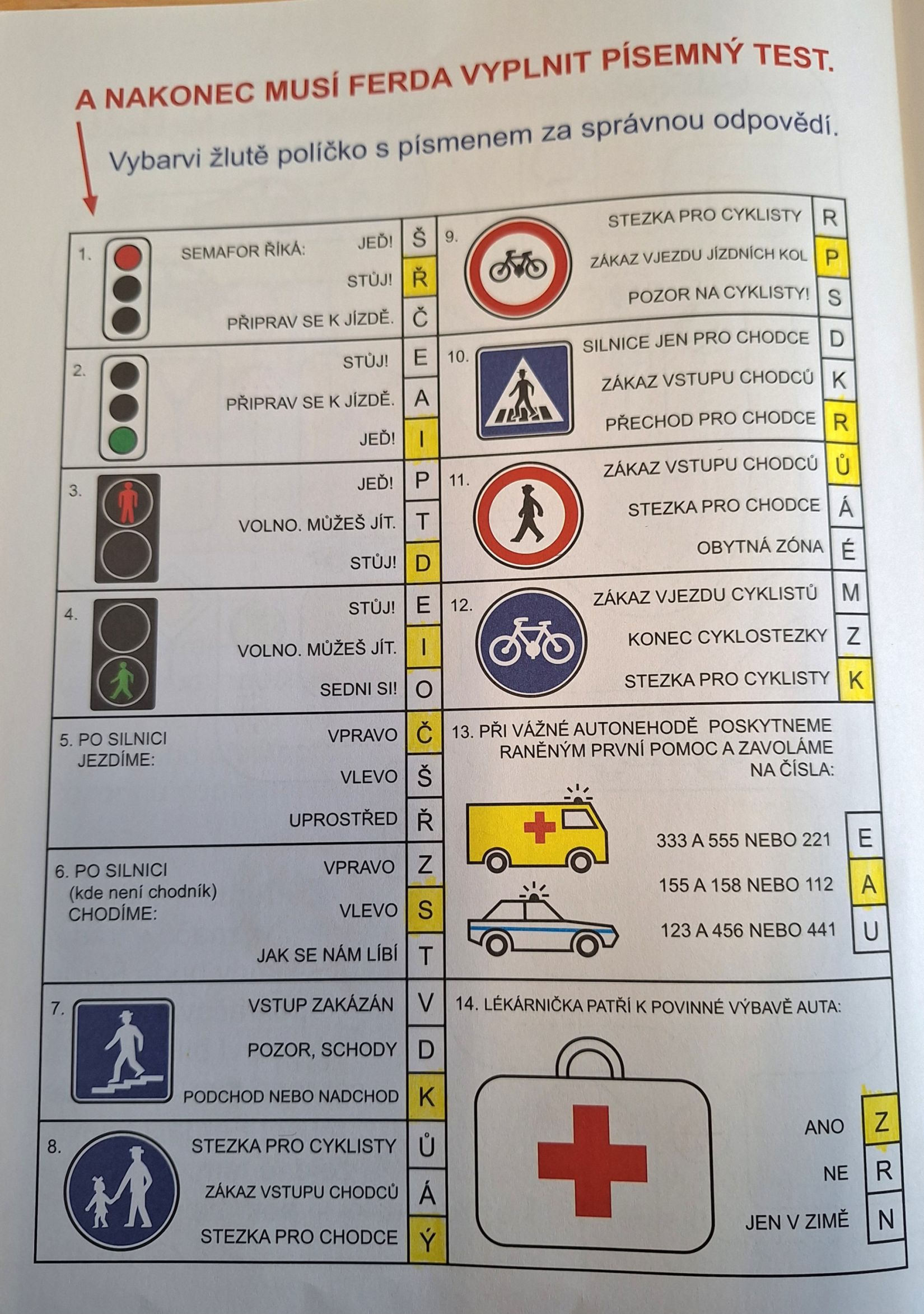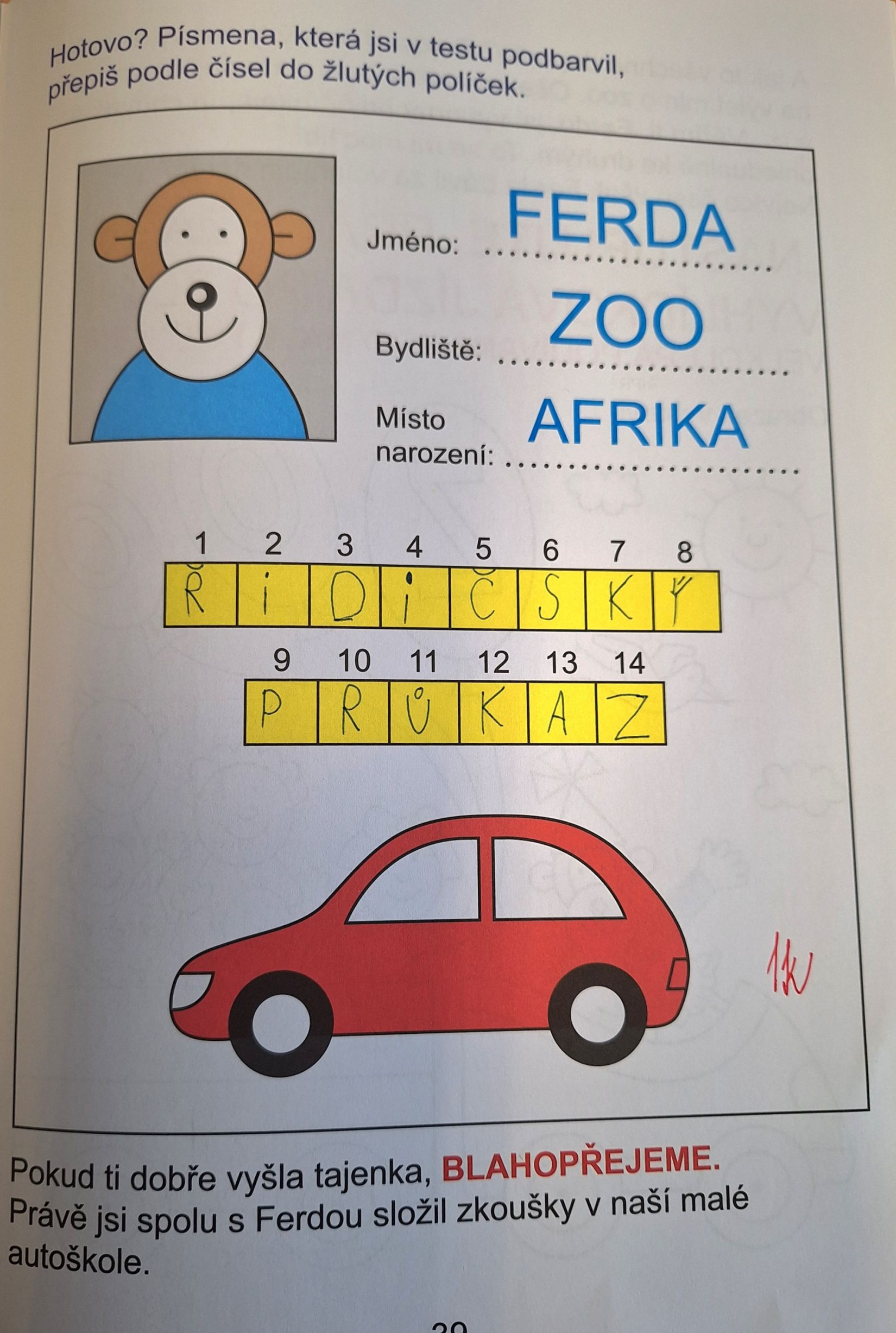 Celý měsíc září jsme věnovali dopravní výchově. Povídali jsme si o naší cestě do školy. Abychom ji hravě zvládli, seznámili jsme se se základními pravidly silničního provozu. K tomu jsme použili pracovní sešit Ferda v autoškole. Děti to moc bavilo. Propojili jsme hodiny čtení a prvouky. Četli jsme si o tom, jak opičák Ferda dělal autoškolu. Žáci se tak seznámili s nejdůležitějšími dopravními značkami, umí řešit základní dopravní situace na křižovatce či u železničního přejezdu, ví, jaká je základní výbava cyklisty, znají telefonní čísla na policii, hasiče a záchrannou službu... Na závěr žáci spolu s Ferdou složili zkoušku. Pracovali ve dvojicích a byli moc šikovní.