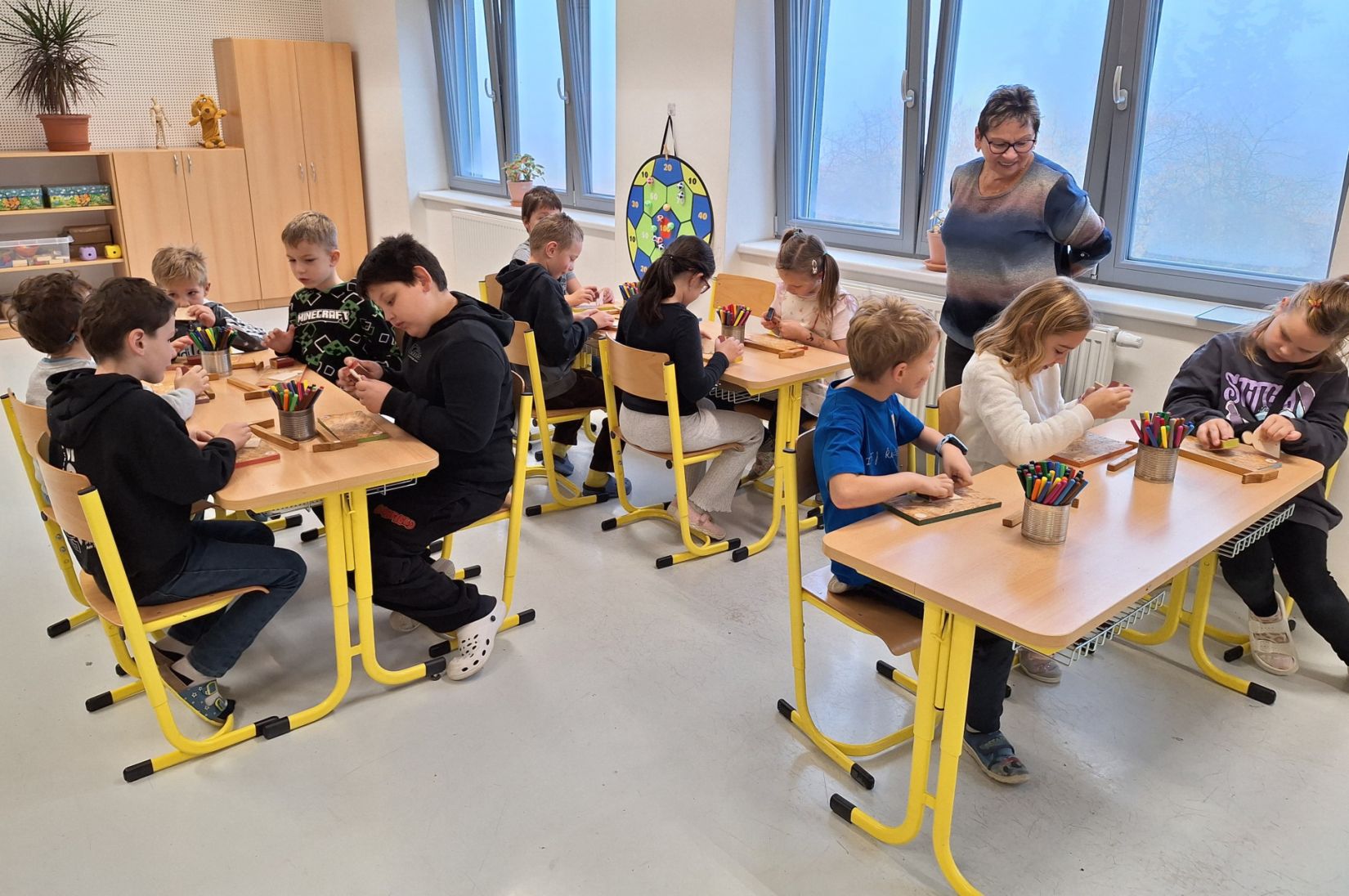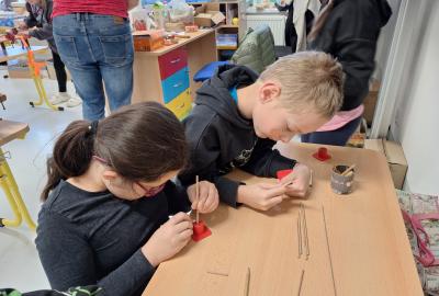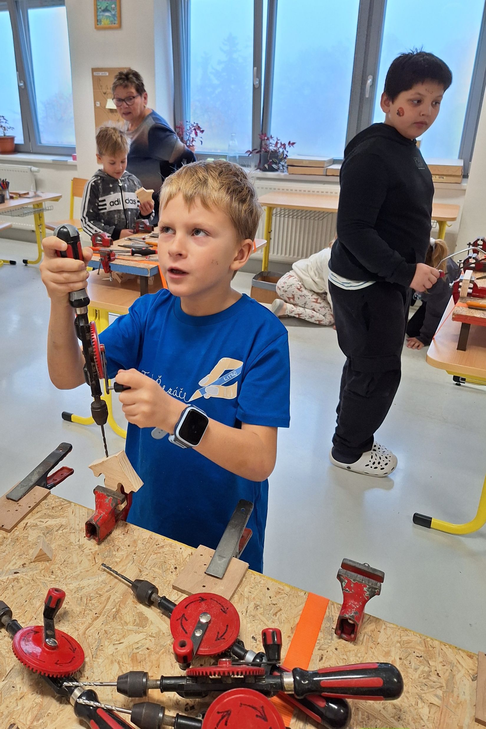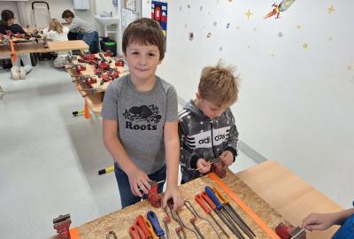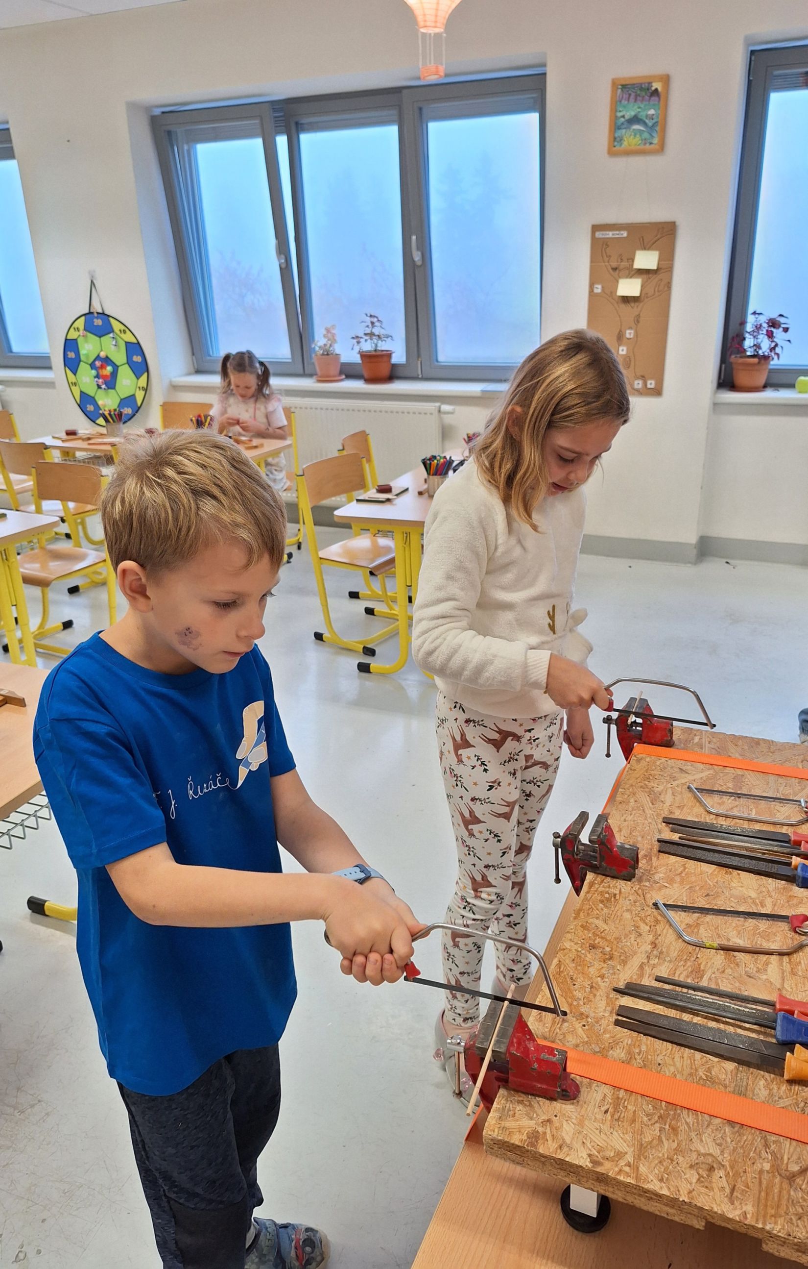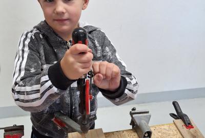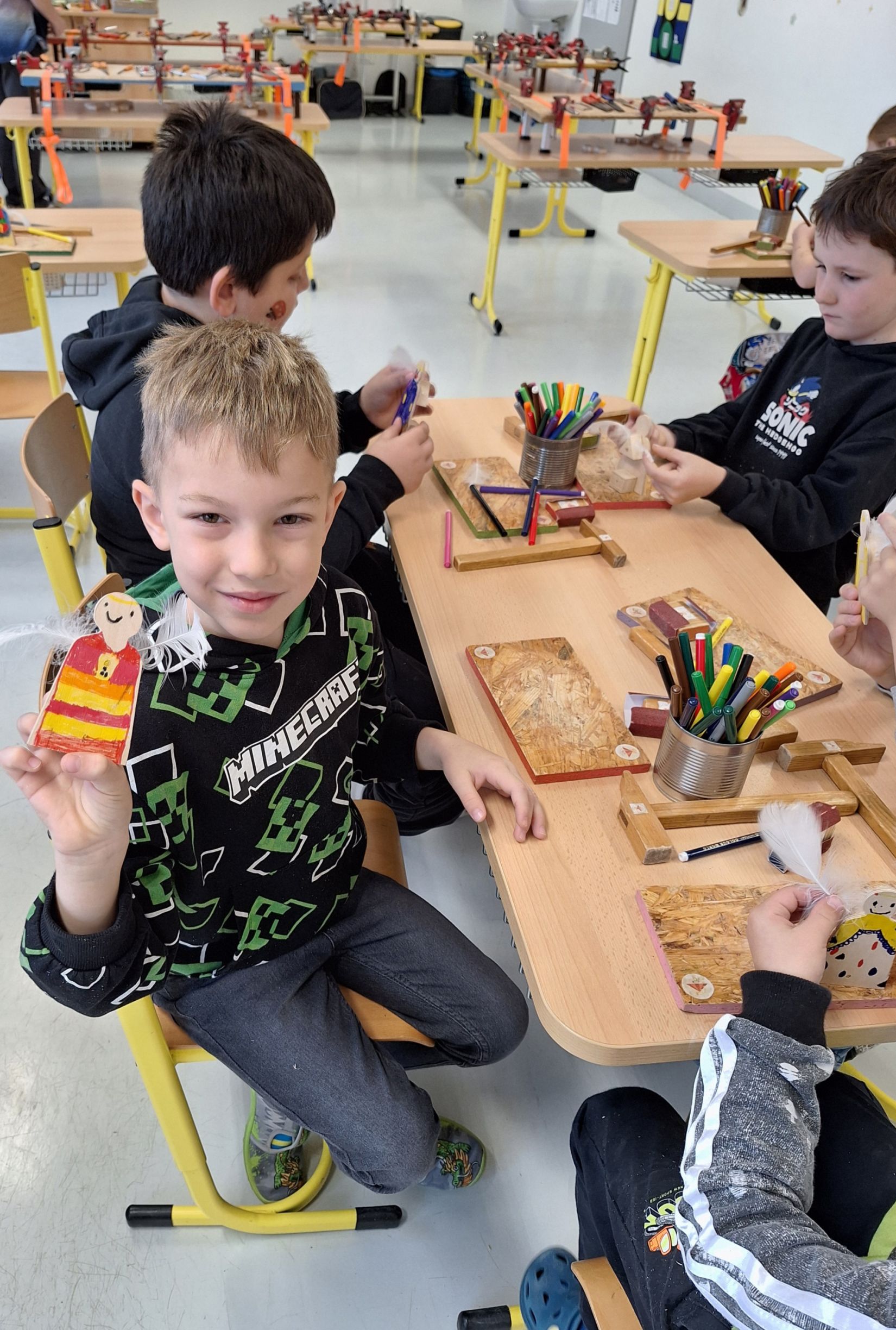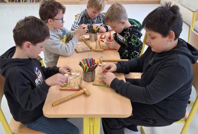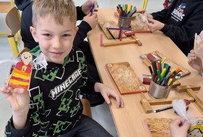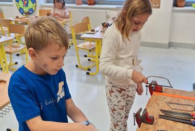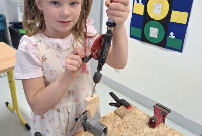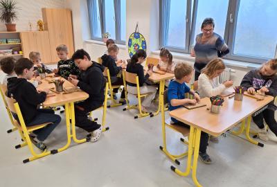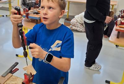 Ve středu 5. 11. 2025 jsme vyráběli v Hoblinkově dílničce anděla. Žáci byli stejně jako vloni seznámeni se zásadami bezpečnosti při práci s nářadím jako je pilka, ruční vrtačka, kladívko, smirkový papír, svěrák a pilník. Pod odborným vedením příjemné paní lektorky a jejích pomocníků se práce všem dařila. Děti se tak mohou již začít těšit na Advent.