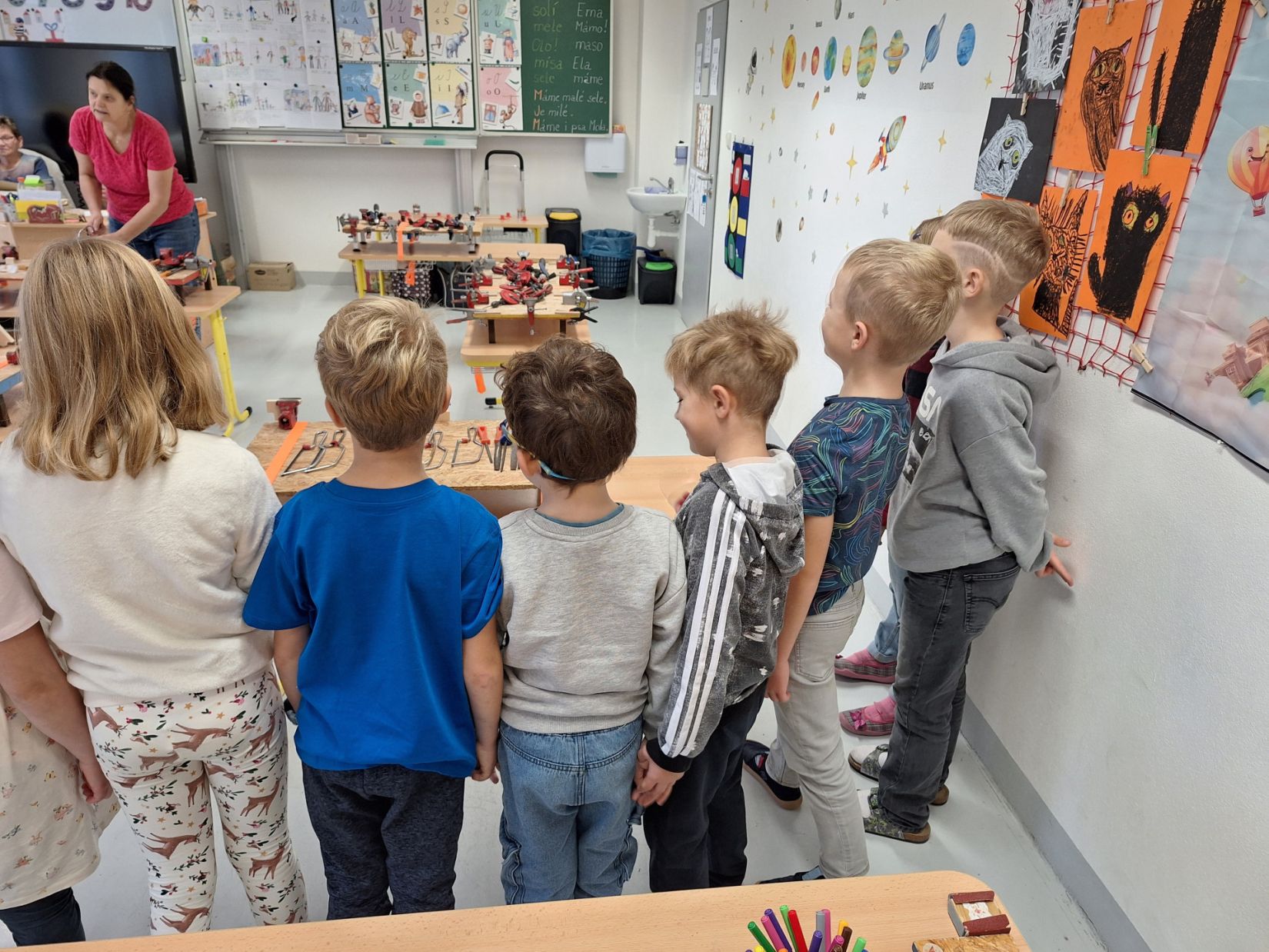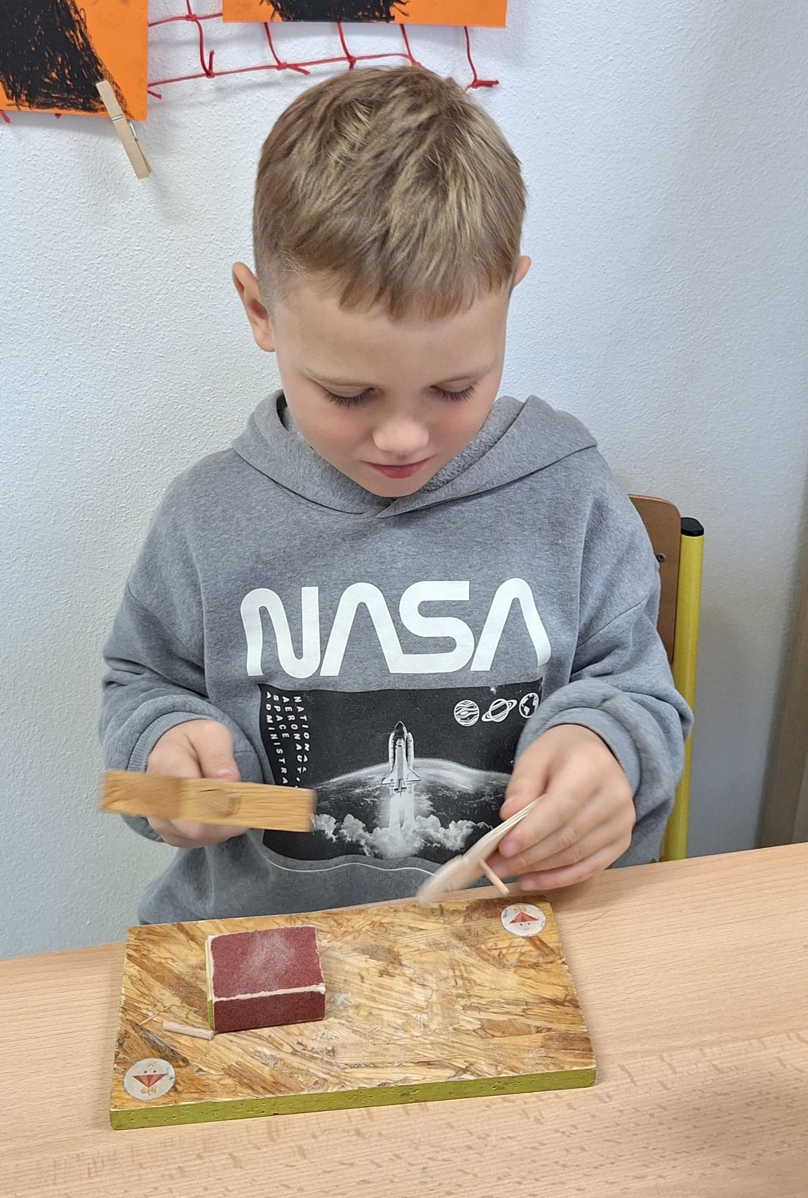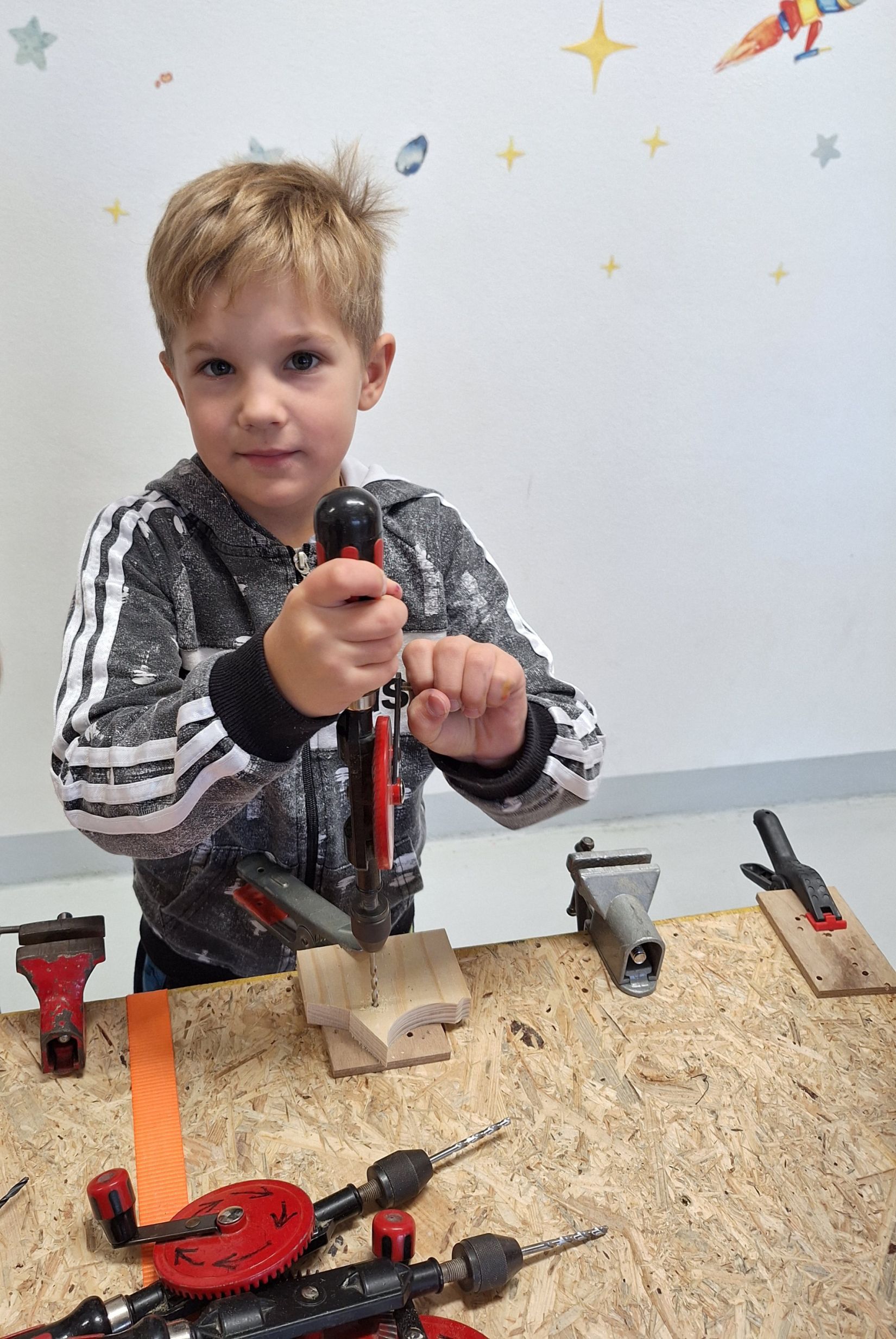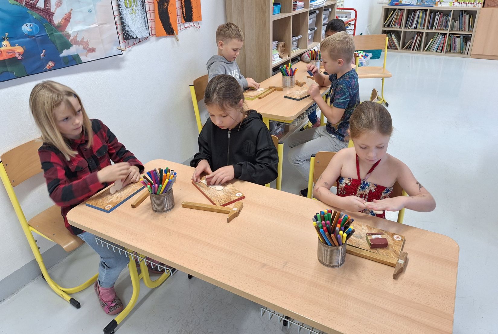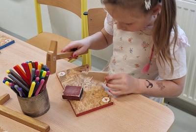 Ve středu 5. 11. 2025 jsme vyráběli v Hoblinkově dílničce anděla. Žáci byli stejně jako vloni seznámeni se zásadami bezpečnosti při práci s nářadím jako je pilka, ruční vrtačka, kladívko, smirkový papír, svěrák a pilník. Pod odborným vedením příjemné paní lektorky a jejích pomocníků se práce všem dařila. Děti se tak mohou již začít těšit na Advent.