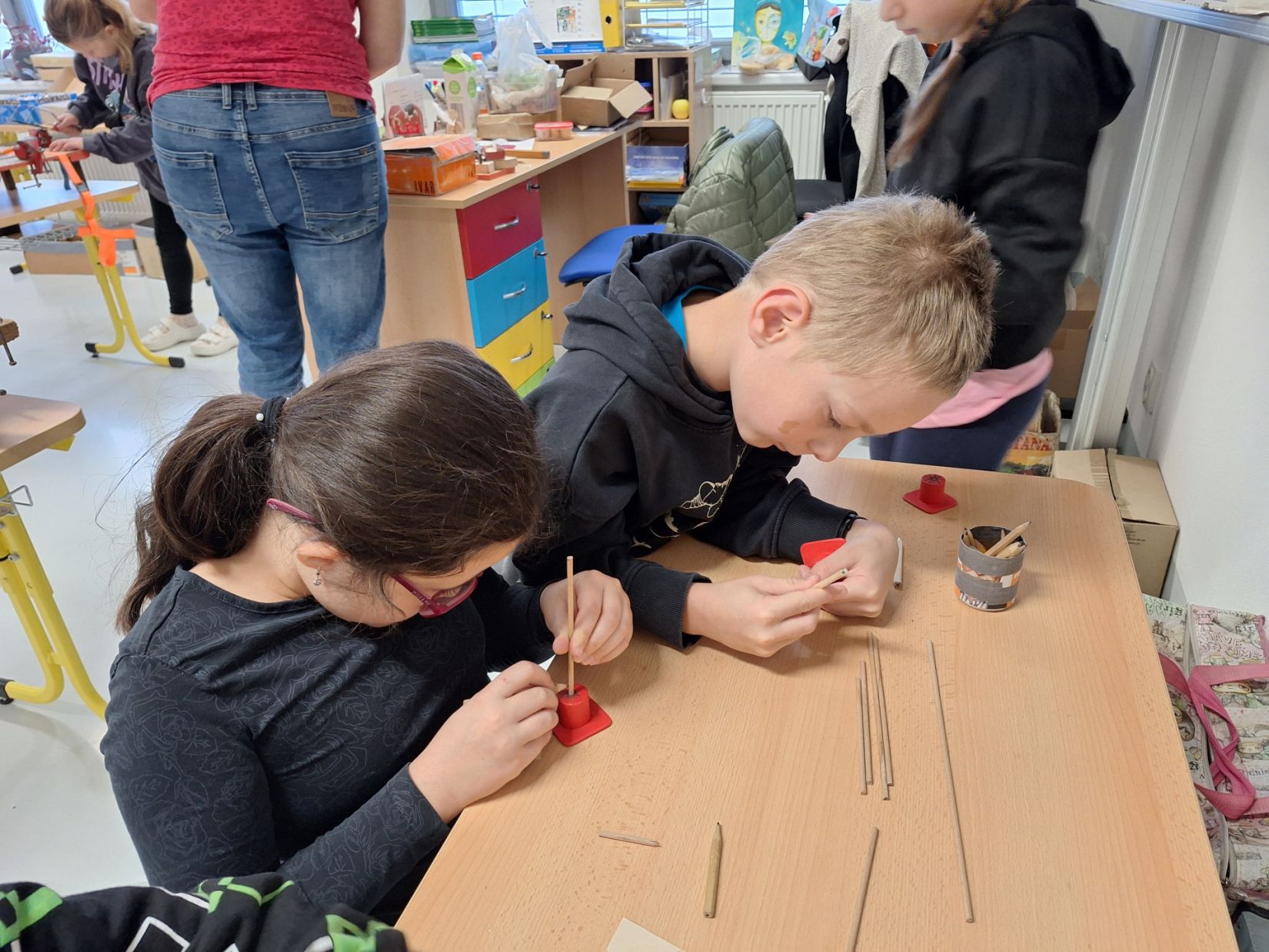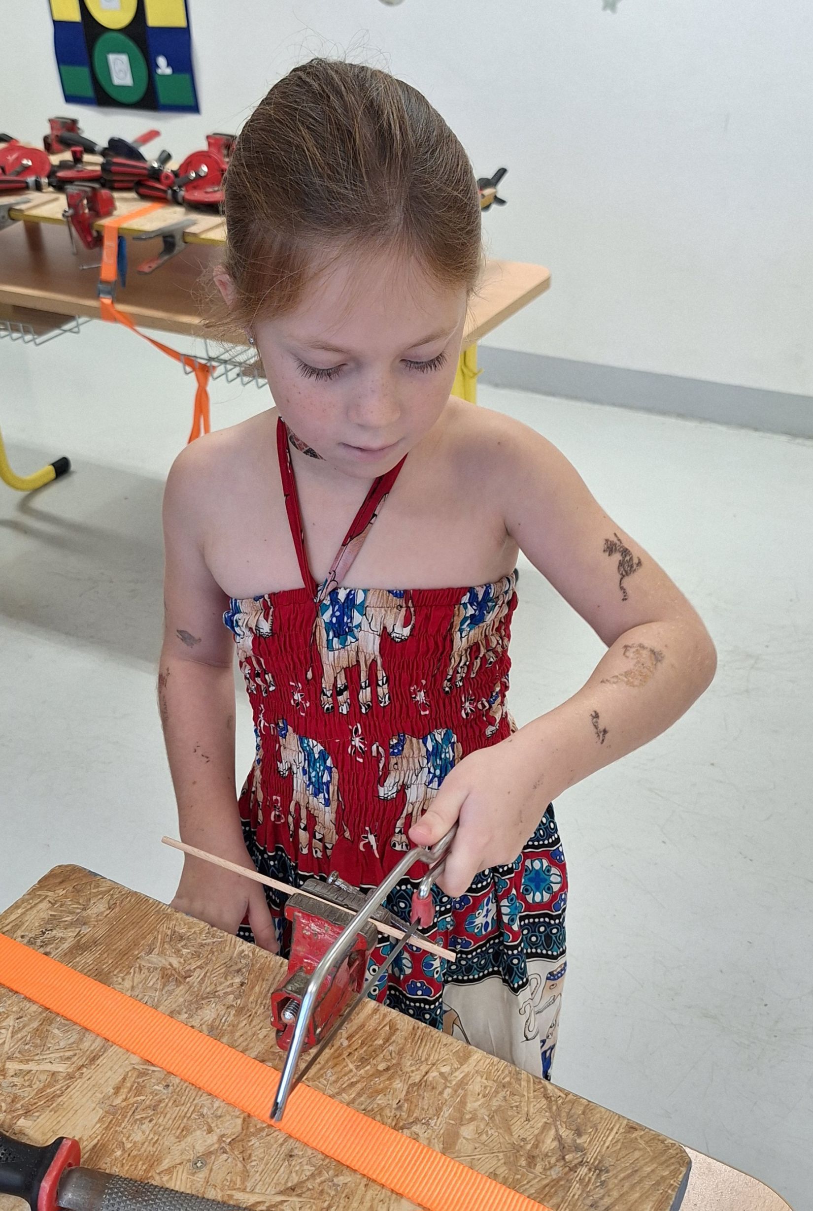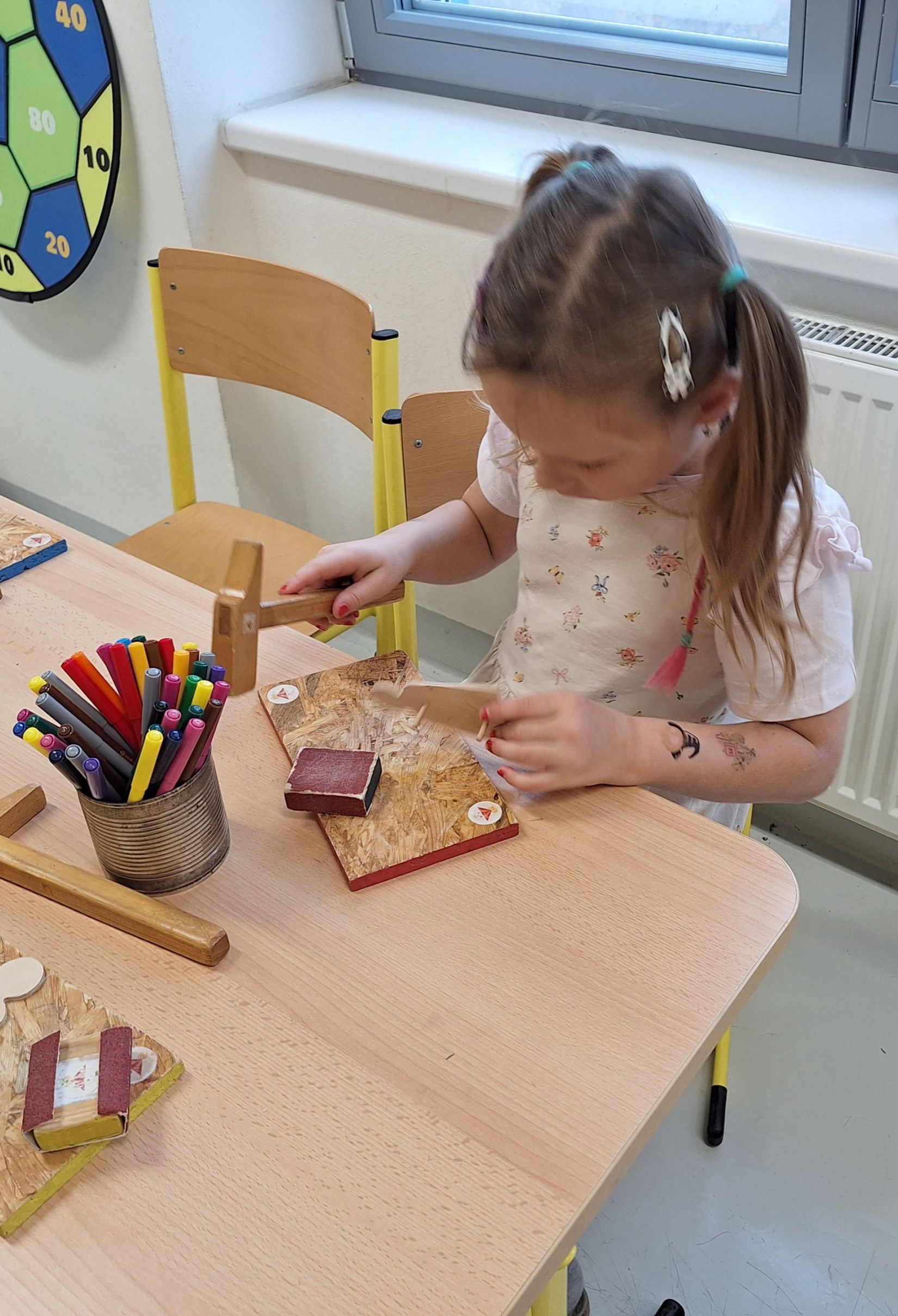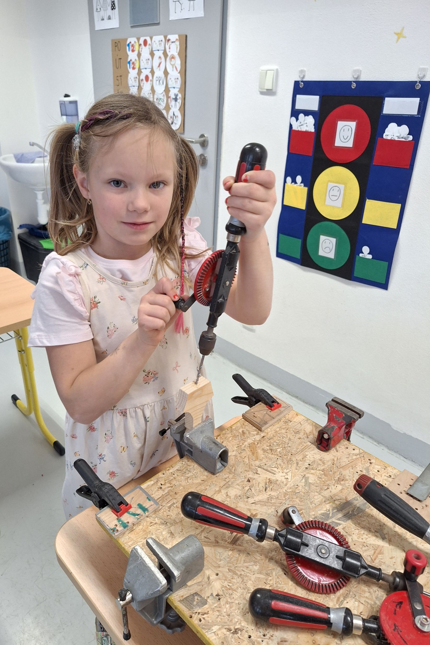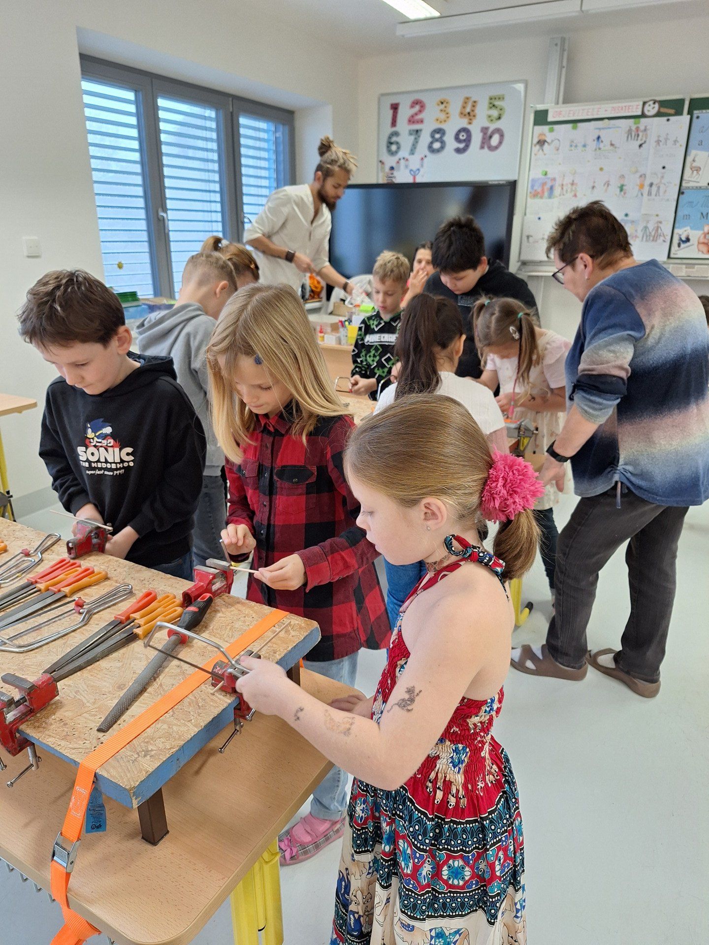 Ve středu 5. 11. 2025 jsme vyráběli v Hoblinkově dílničce anděla. Žáci byli stejně jako vloni seznámeni se zásadami bezpečnosti při práci s nářadím jako je pilka, ruční vrtačka, kladívko, smirkový papír, svěrák a pilník. Pod odborným vedením příjemné paní lektorky a jejích pomocníků se práce všem dařila. Děti se tak mohou již začít těšit na Advent.