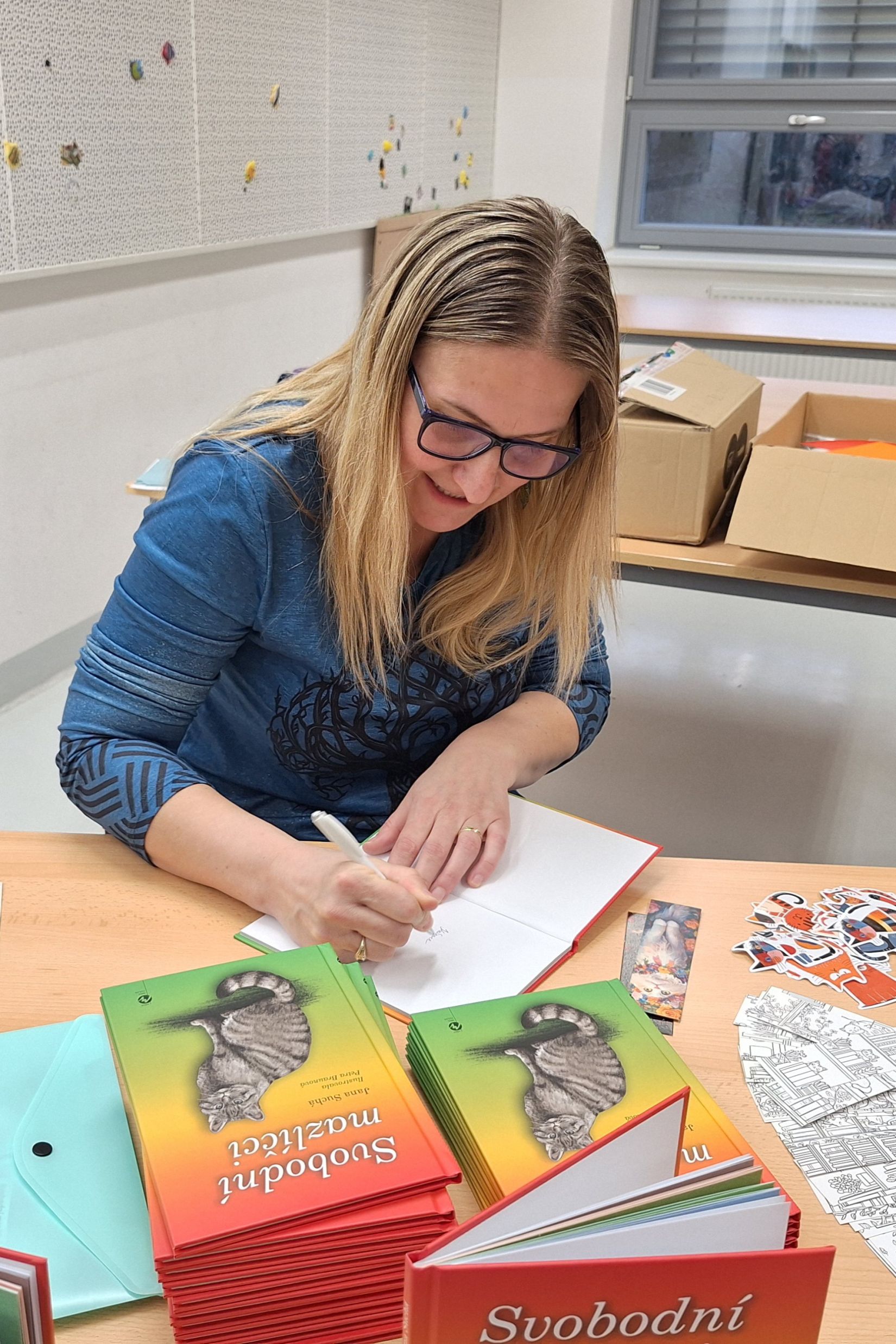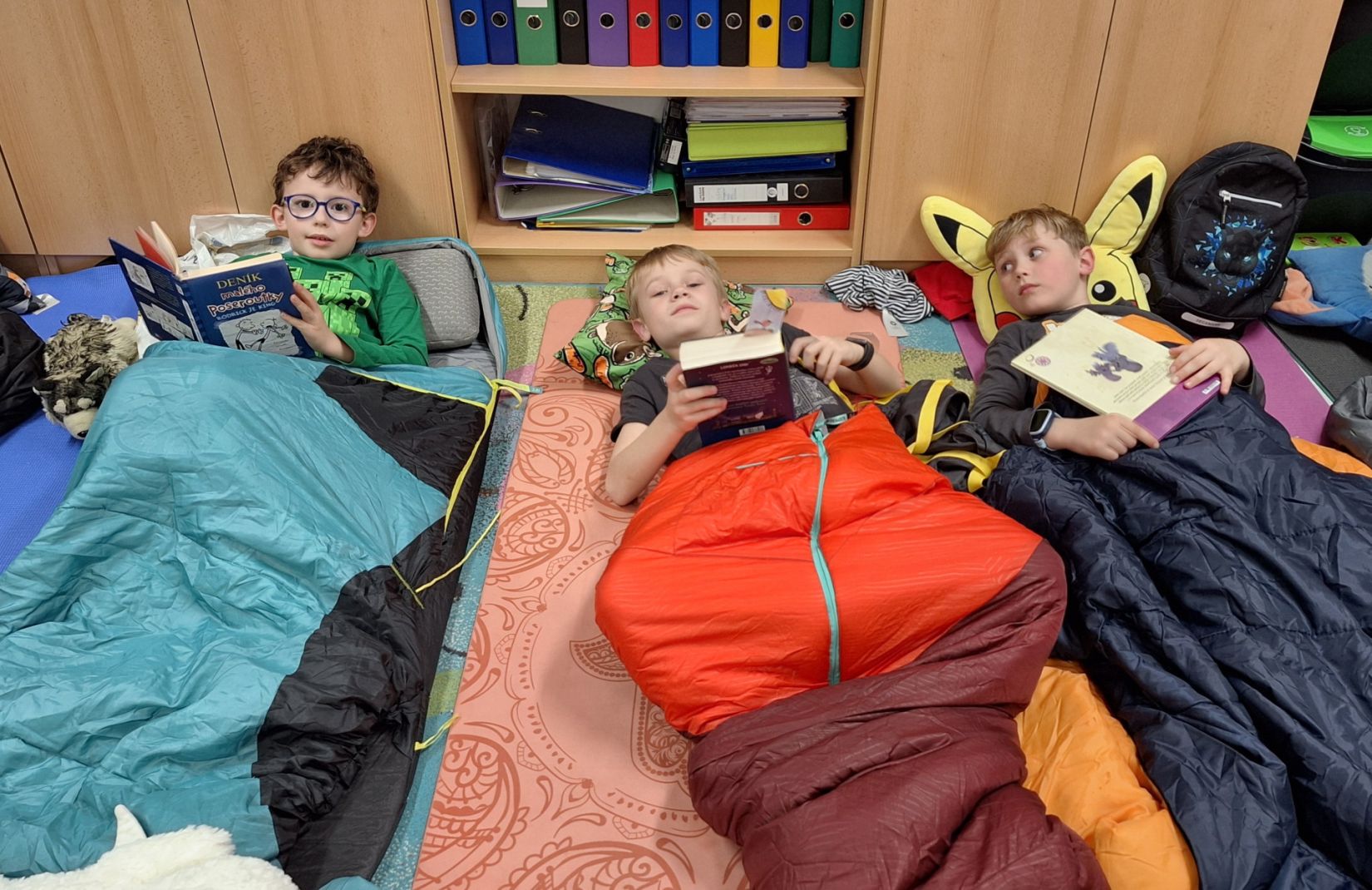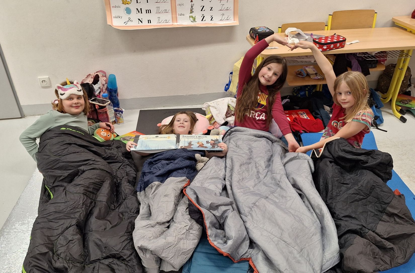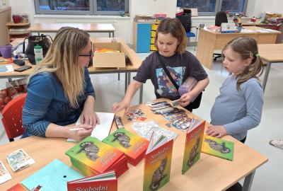 Máme za sebou Noc s Andersenem. Věřím, že děti byly spokojené. Nejprve jsme se seznámili se spisovatelkou Janou Suchou a její knihou Svobodní mazlíčci. My jsme s touto knihou již pracovali v hodinách čtení. Paní spisovatelka dětem četla, povídala jim o tom, jak kniha vznikla. Velký důraz kladla na ochranu přírody. Program doplnila o zábavně-naučné aktivity, kdy žáci pracovali ve skupinách a dozvěděli se zajímavosti o králíkovi a zajíci. Na závěr proběhla autogramiáda. Poté následovala aktivita ve třídě, kdy jsme kreslili pohádkové postavy. Nejočekávanějším bodem večera byla večeře - šunková pizza. A pak už do pelíšků! Děti si prohlížely knížky, hrály hry nebo si jen tak povídaly. Šum byl slyšet ještě okolo 1 hodiny. Děti se již určitě těší na příští rok.