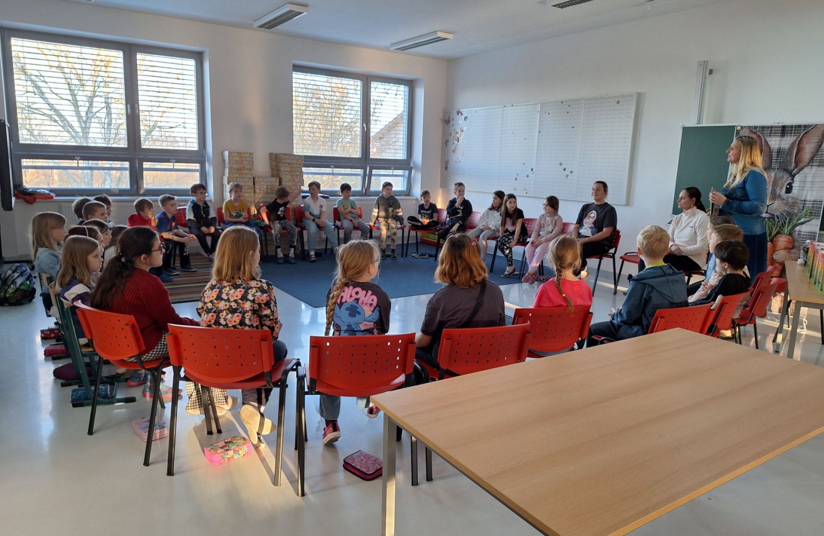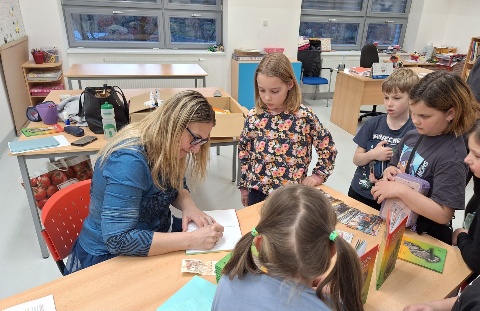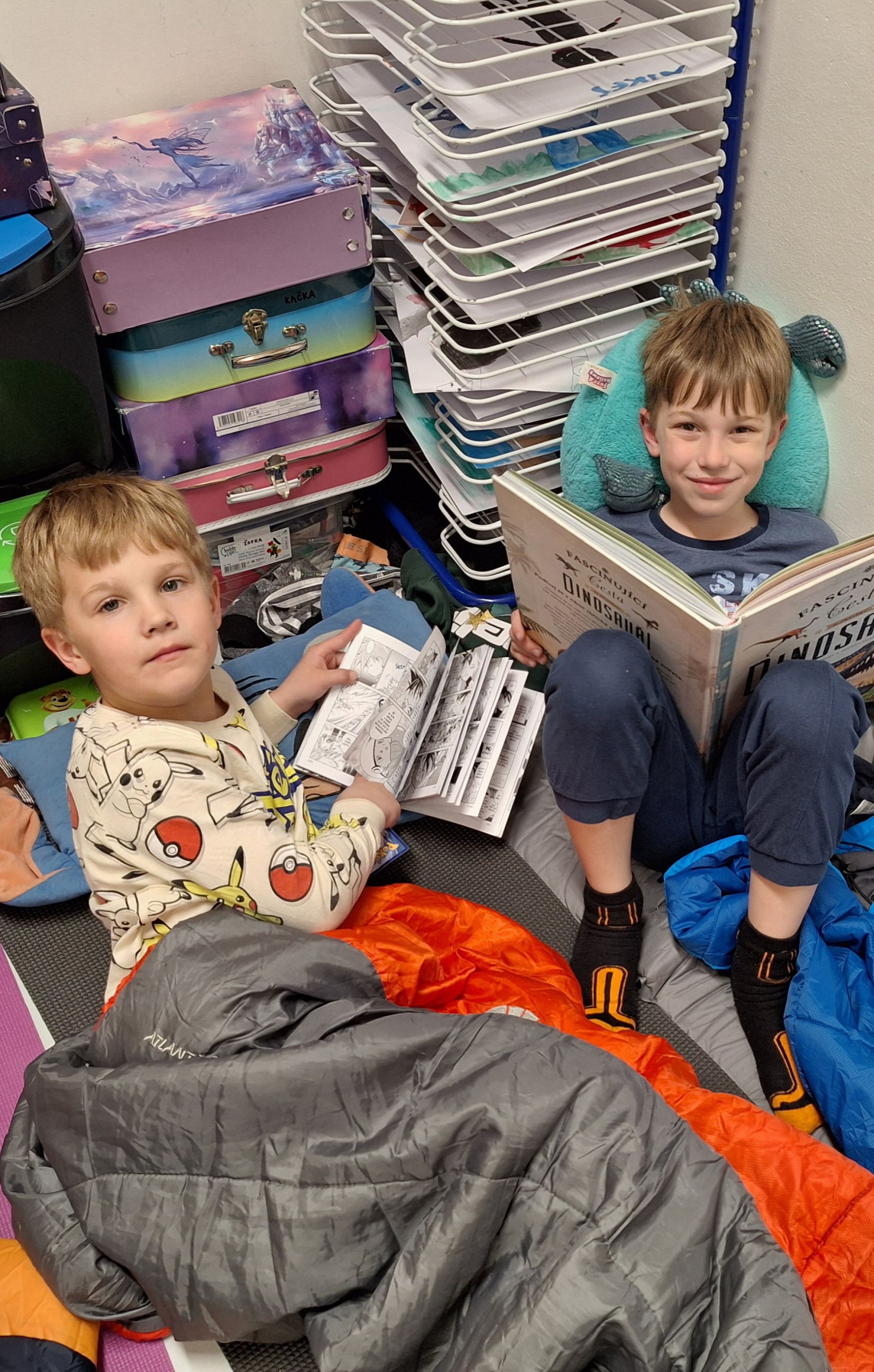 Máme za sebou Noc s Andersenem. Věřím, že děti byly spokojené. Nejprve jsme se seznámili se spisovatelkou Janou Suchou a její knihou Svobodní mazlíčci. My jsme s touto knihou již pracovali v hodinách čtení. Paní spisovatelka dětem četla, povídala jim o tom, jak kniha vznikla. Velký důraz kladla na ochranu přírody. Program doplnila o zábavně-naučné aktivity, kdy žáci pracovali ve skupinách a dozvěděli se zajímavosti o králíkovi a zajíci. Na závěr proběhla autogramiáda. Poté následovala aktivita ve třídě, kdy jsme kreslili pohádkové postavy. Nejočekávanějším bodem večera byla večeře - šunková pizza. A pak už do pelíšků! Děti si prohlížely knížky, hrály hry nebo si jen tak povídaly. Šum byl slyšet ještě okolo 1 hodiny. Děti se již určitě těší na příští rok.