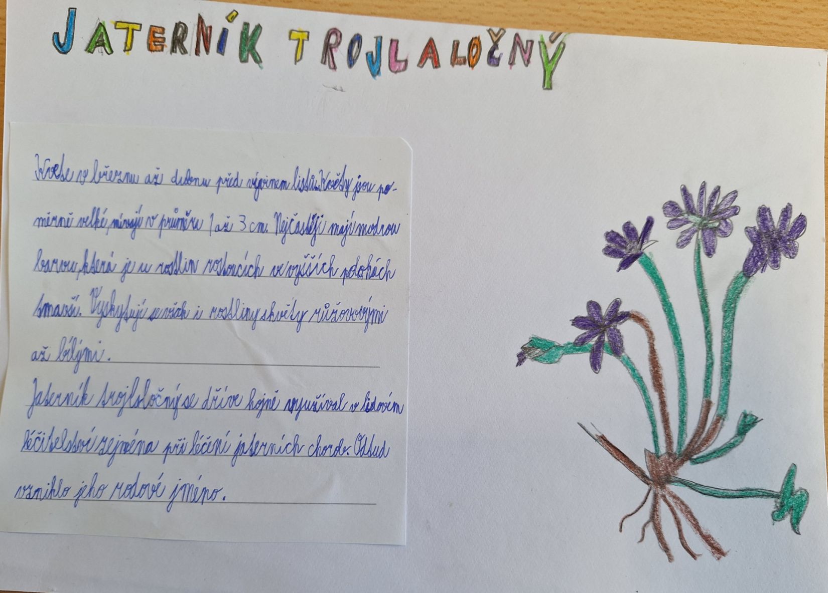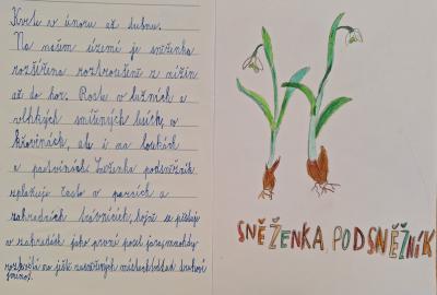 V rámci projektu Jarní květiny jsme se v úterý 24. 3. 2026 vypravili na Mramor. A opravdu bylo se na co dívat. Koberec z fialových poléšek byl užasný :-). V hodinách českého jazyka jsme poté vyhledávali o jarních květinách informace a v hodinách výtvarné výchovy a pracovních činností jsme je kreslili, vystřihávali, skládali a lepili. Ve středu 8. 4. 2026 jsme pokračovali v našem bádání a vypravili se do Obory k rybníku. Zde jsme viděli jiné druhy květin - dymnivku dutou, hrachor, pryskyřník, rozrazil, hluchavku nachovou. Rotkvetly už i pampelišky. Tentokrát jsme měli možnost pozorovat i vodní ptáky - kachny divoké a labutě. Dalšího živočicha - bobra - jsme sice neviděli, ale jeho práci ano. Už teď se těšíme na další výpravu do přírody.