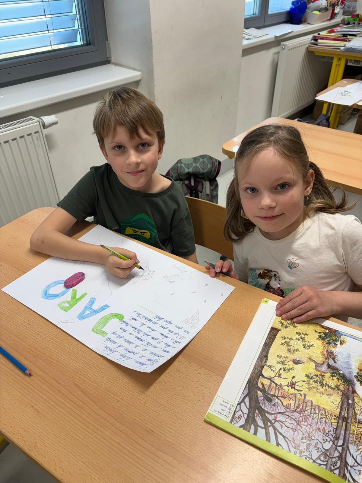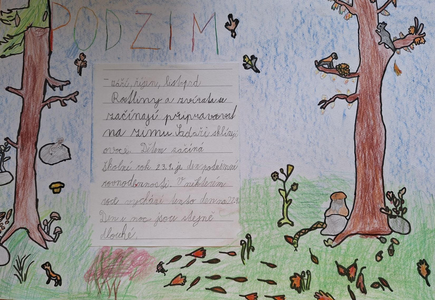 V hodinách prvouky se učíme o čase. Umíme vyjmenovat roční období, měsíce, dny v týdnu. Učíme se hodiny. V projektu Roční období se každá skupina snažila zapsat základní informace o daném období a nakreslit výstižný obrázek.