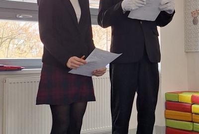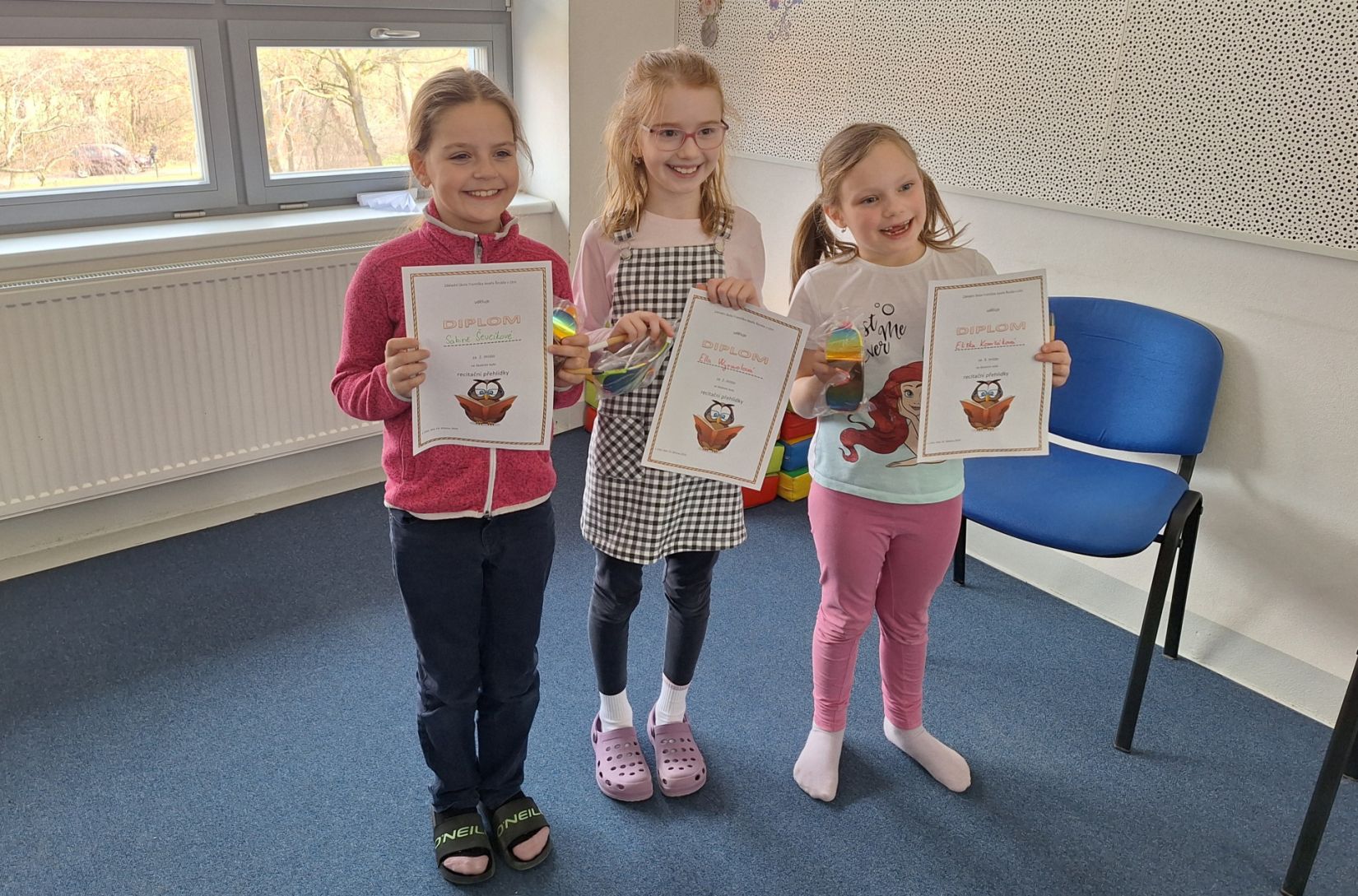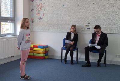 V úterý 10. 3. 2026 se konalo školní kolo recitační soutěže. Naši spolužáci soutěžili v kategorii 2. - 3. třída. Dvě první postupová místa obsadily žákyně 3.B. Na 3. místě se umístila naše Eliška Komžáková a Filip Karlík ze 2.B. Gratulujeme!!! Velkou pochvalu ale zaslouží všichni účastníci. Byli jste skvělí.