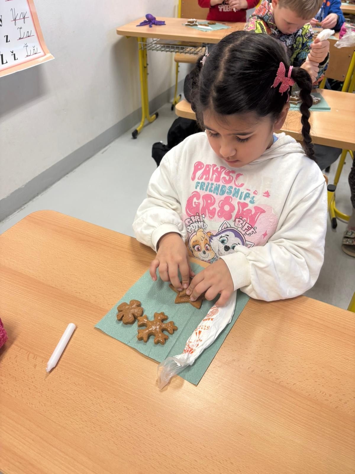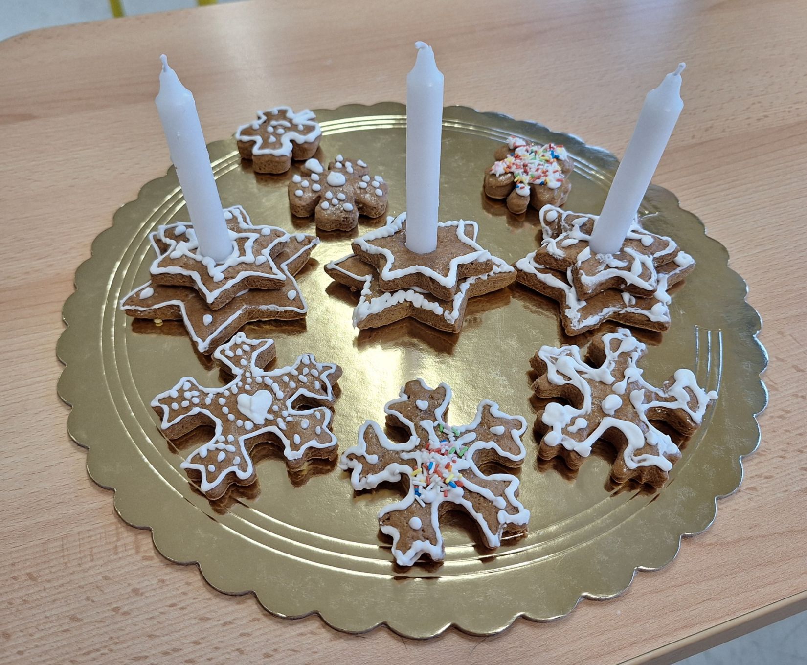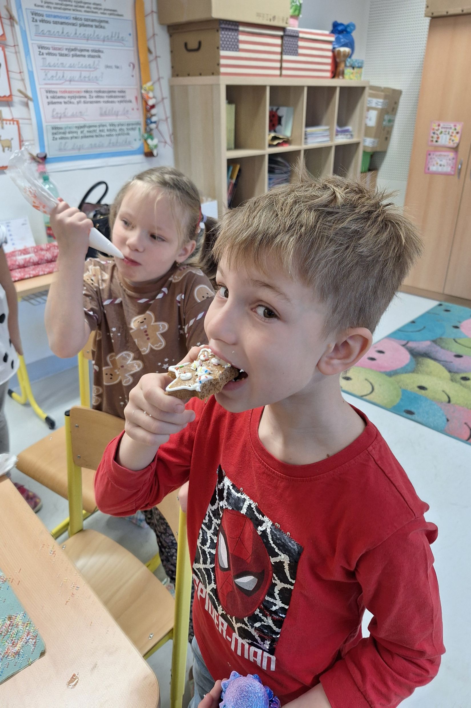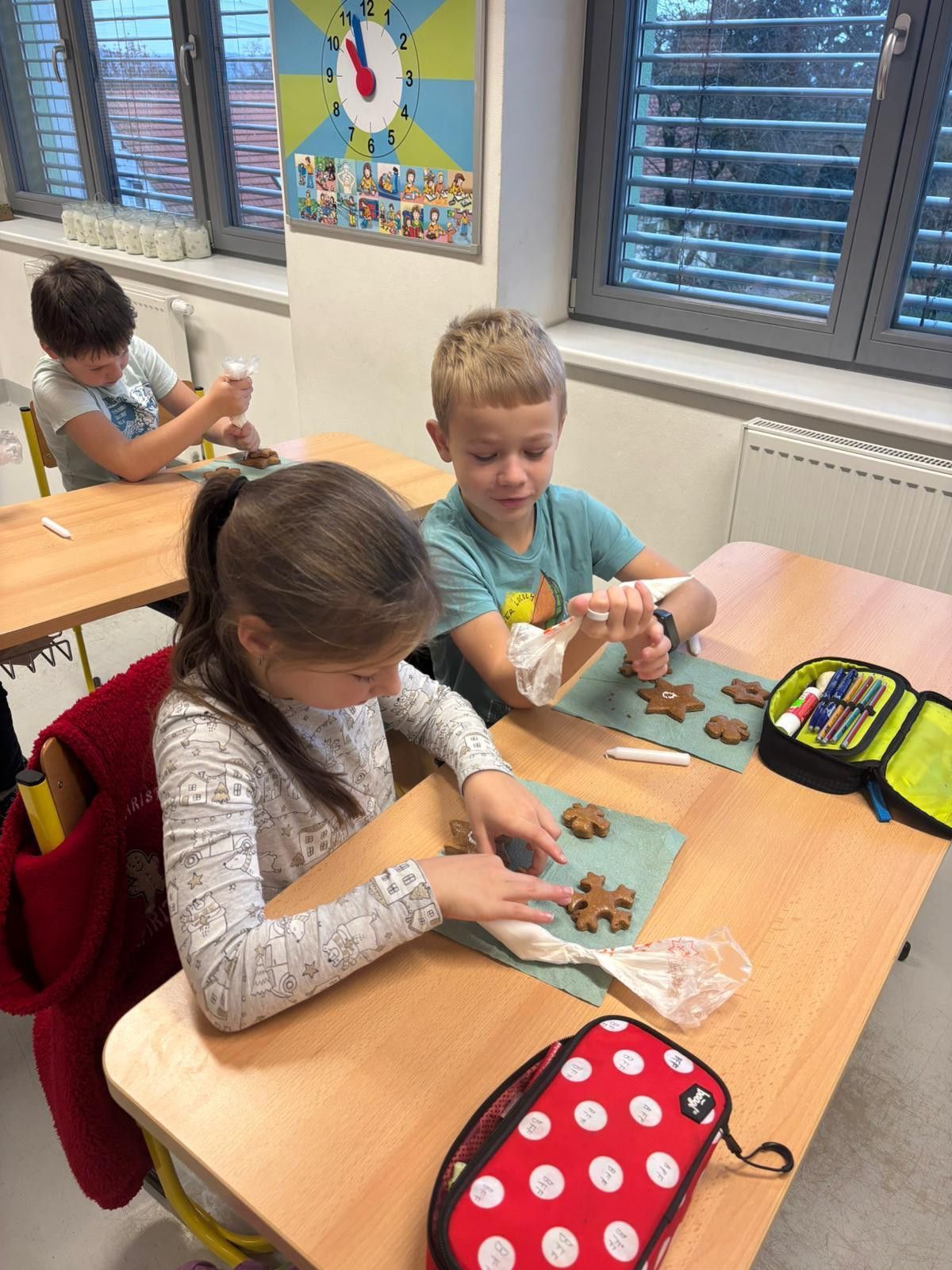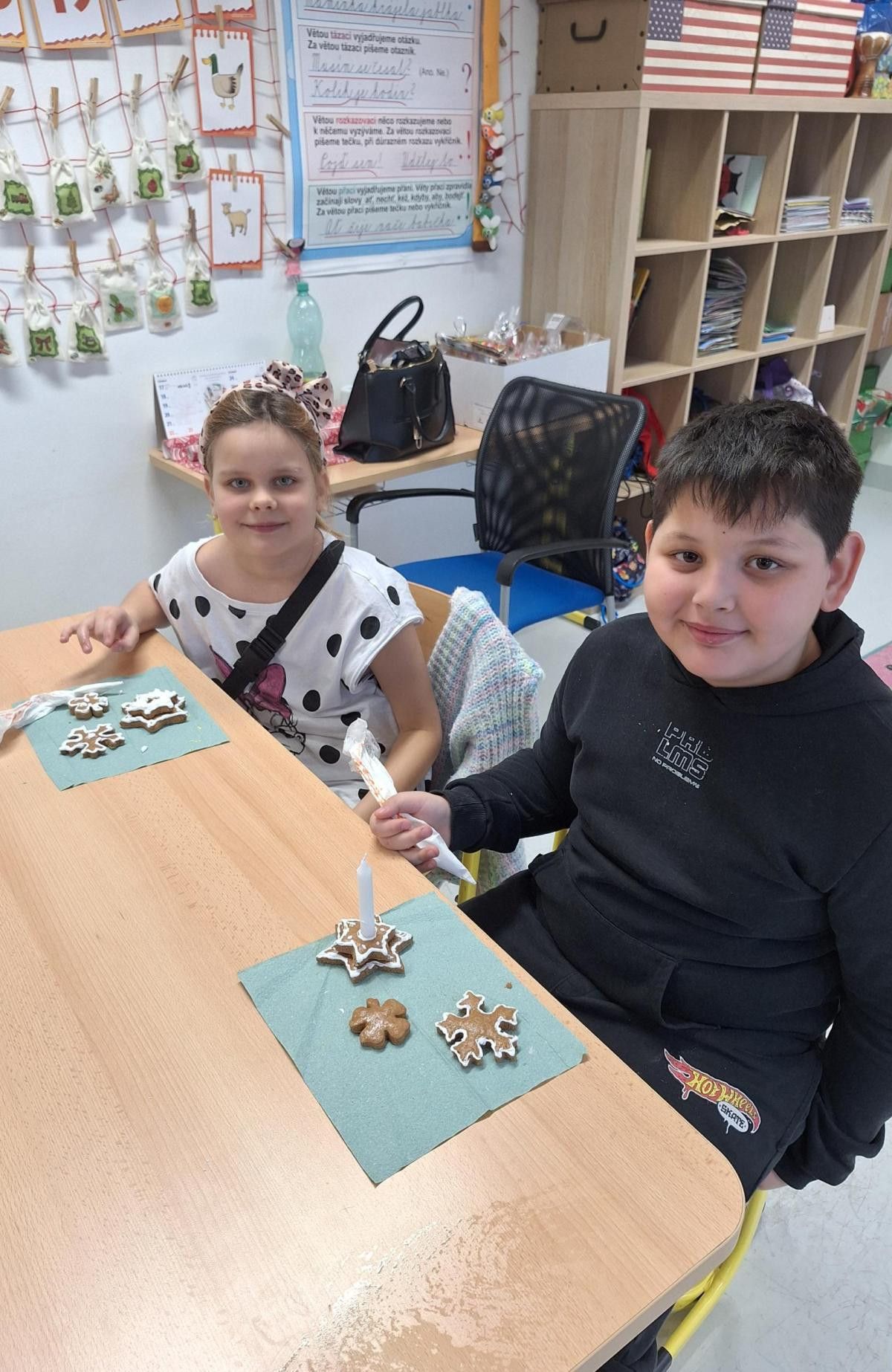 Vánoční trhy se opět povedly. Přípravu jsme nepodcenili. Moc děkujeme paní Kusé za výtvarný materiál a bývalé asistentce Jarušce za perníčky. I když prodávalo pouze 8 žáků (naši třídu postihl nějaký ošklivý bacil), vše jsme úspěšně prodali. Nejlepším obchodníkem byl Honzík Bulák, který vydržel od začátku do konce. Trhů se nemohla zúčastnit Šarlotka, tak nás podpořila tím, že na prodej vytvořila lodičky ze skořápek od ořechú a ozdobičky. Všem dětem děkuji, že se zúčastnily a rodičům a prarodičům děkujeme za to, že jste si naše výrobky koupili. Vydělané penízky si určitě společně užijeme.