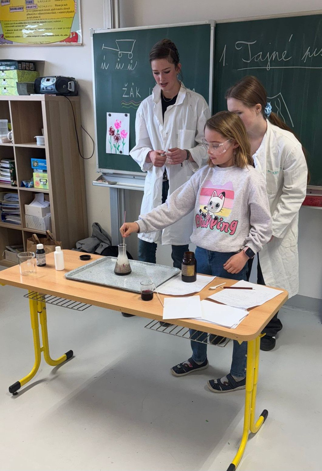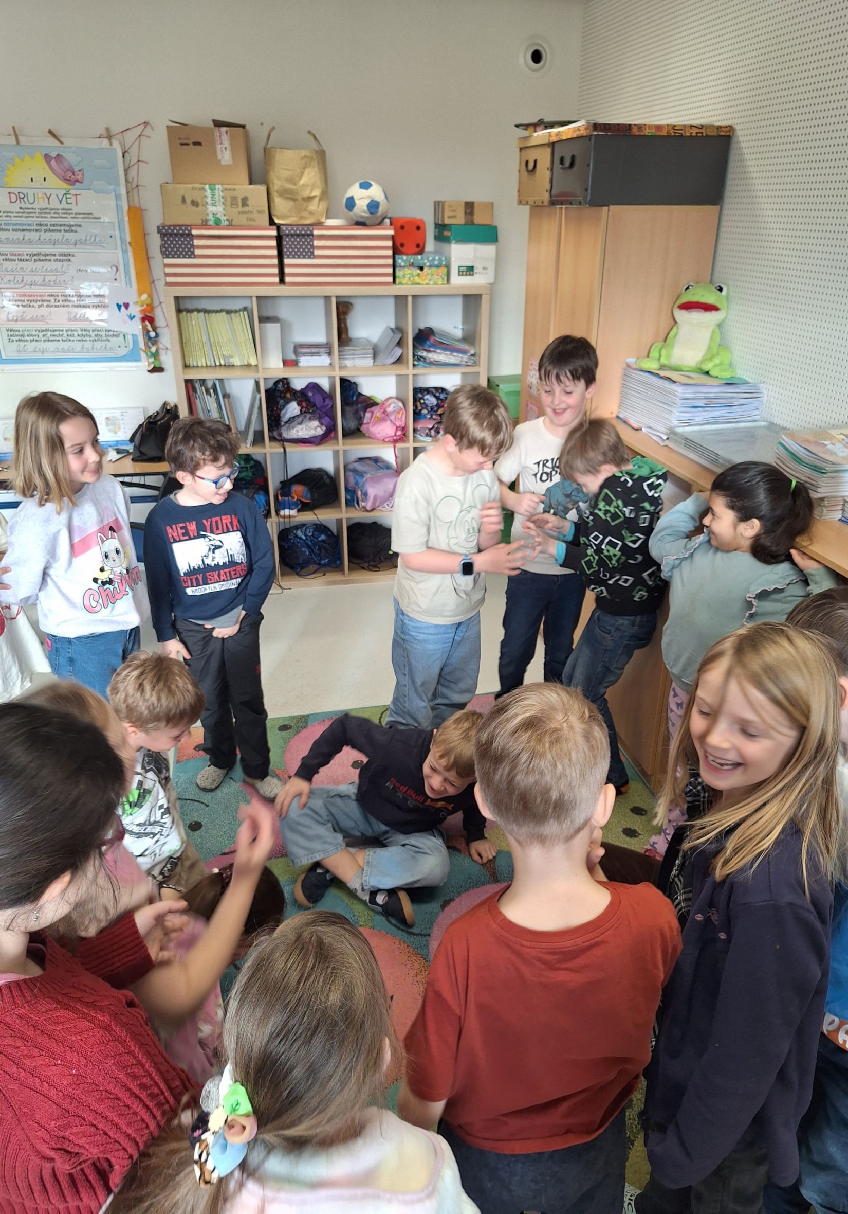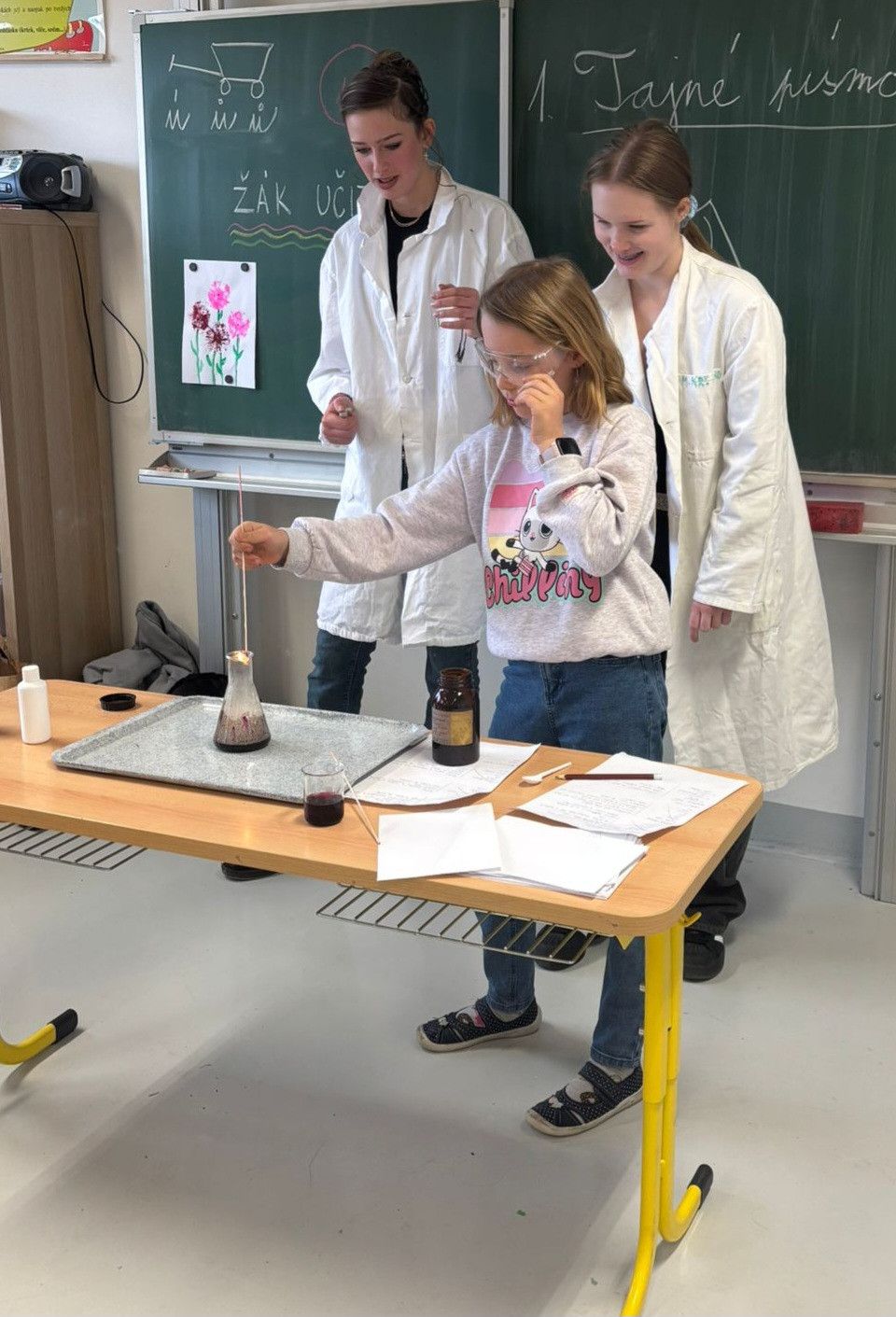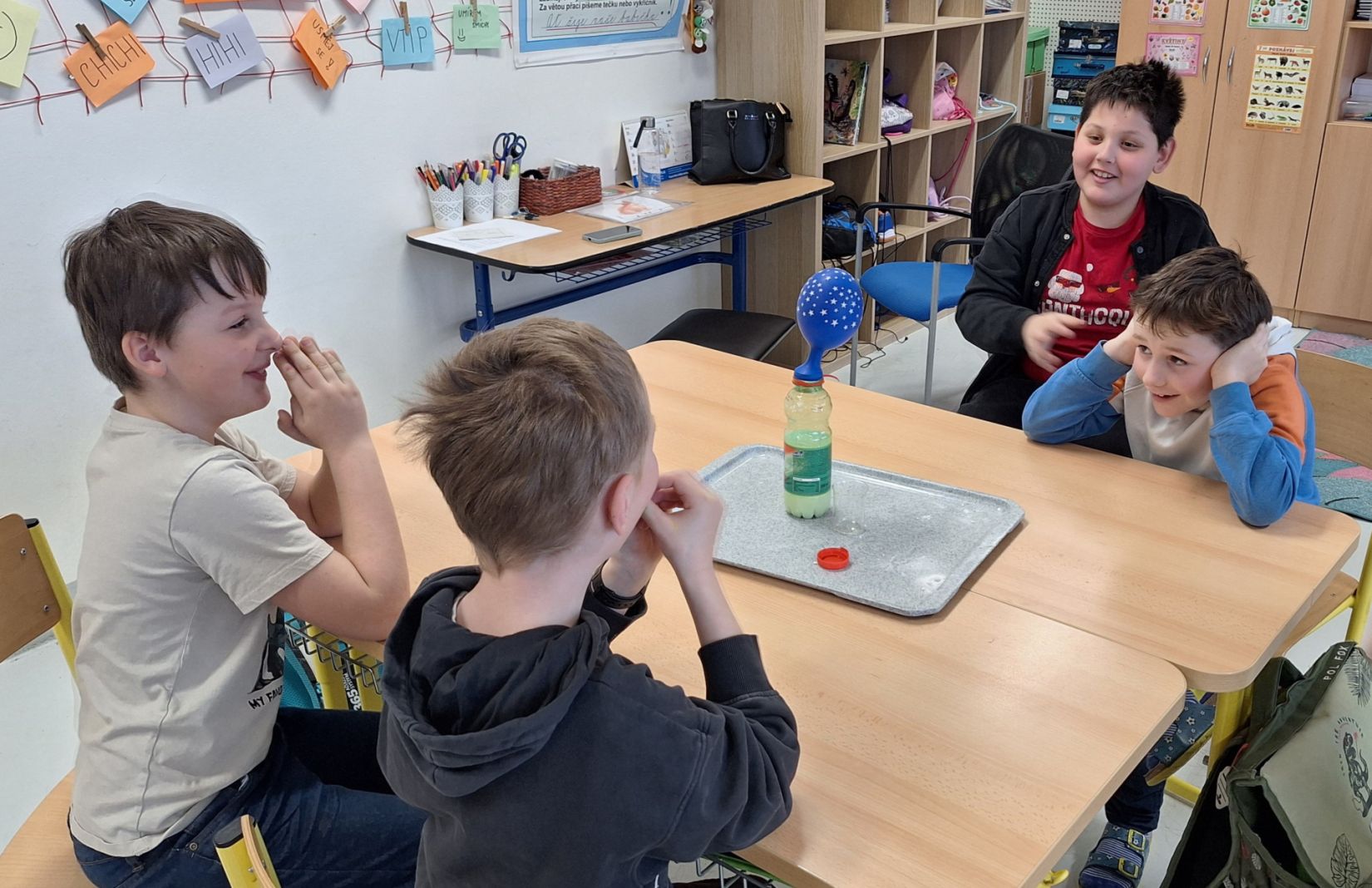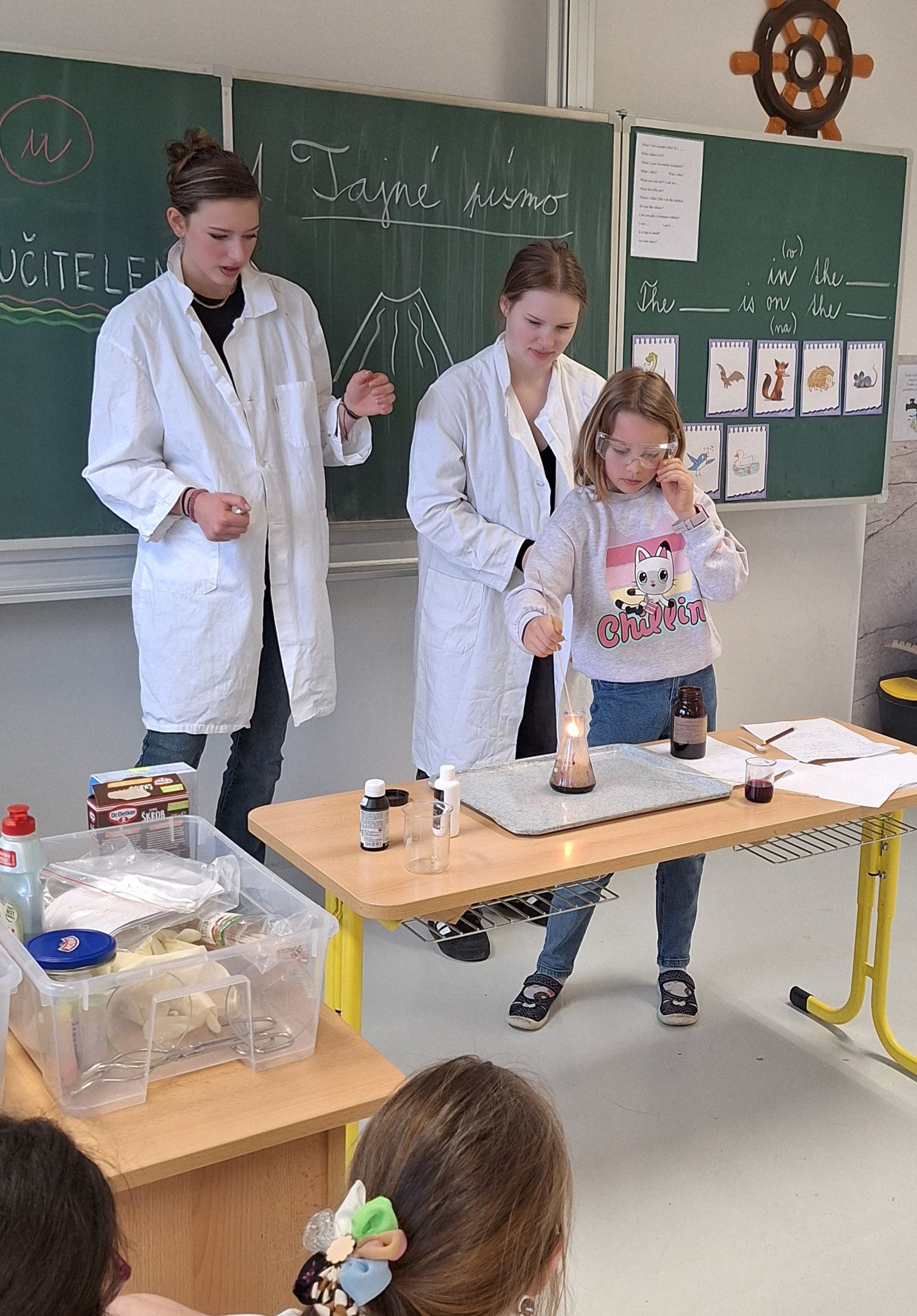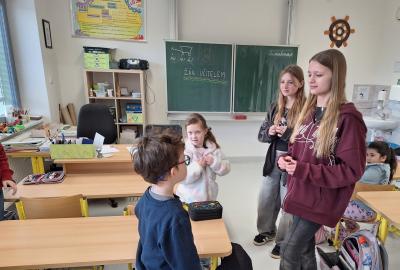 Ve středu 1. 4. 2026 se na naší škole konal projekt "Žák učitelem". V naší třídě se vystřídalo 6 milých "učitelek". První hodinu si připravily Kačka s Natálkou z 8. třídy. Byla to hodina matematiky plná her. Děti byly nadšené. Celou hodinu byly pozorné a hodné. Jedna z her se jim zalíbila natolik, že ji hrály i o přestávce. Určitě ji zařadíme i do našich hodin. Druhá hodina probíhala pod vedením Darinky a Emilky - opět žákyň z 8. třídy. Žáci pomocí otisku nastříhaných plastových brček "vykouzlili" nádherné kytice. Poslední dvě hodiny byly plné akce a napětí. Samantha a Nela z 9.A si pro nás připravily pod vedením paní zástupkyně Renaty Klimešové několik pokusů. Byly úžasné ("paní učitelky" i pokusy). Všem děvčatům moc děkujeme za skvěle připravené hodiny. Už nyní se těšíme na příští školní rok a tuto akci.