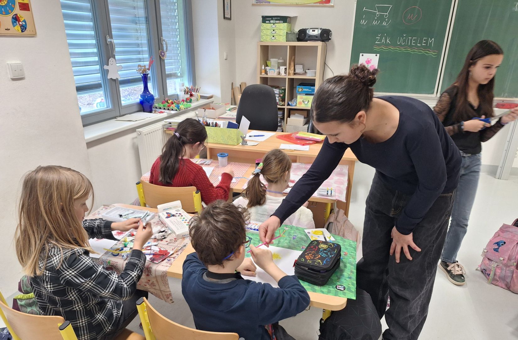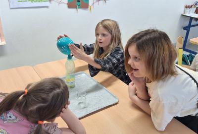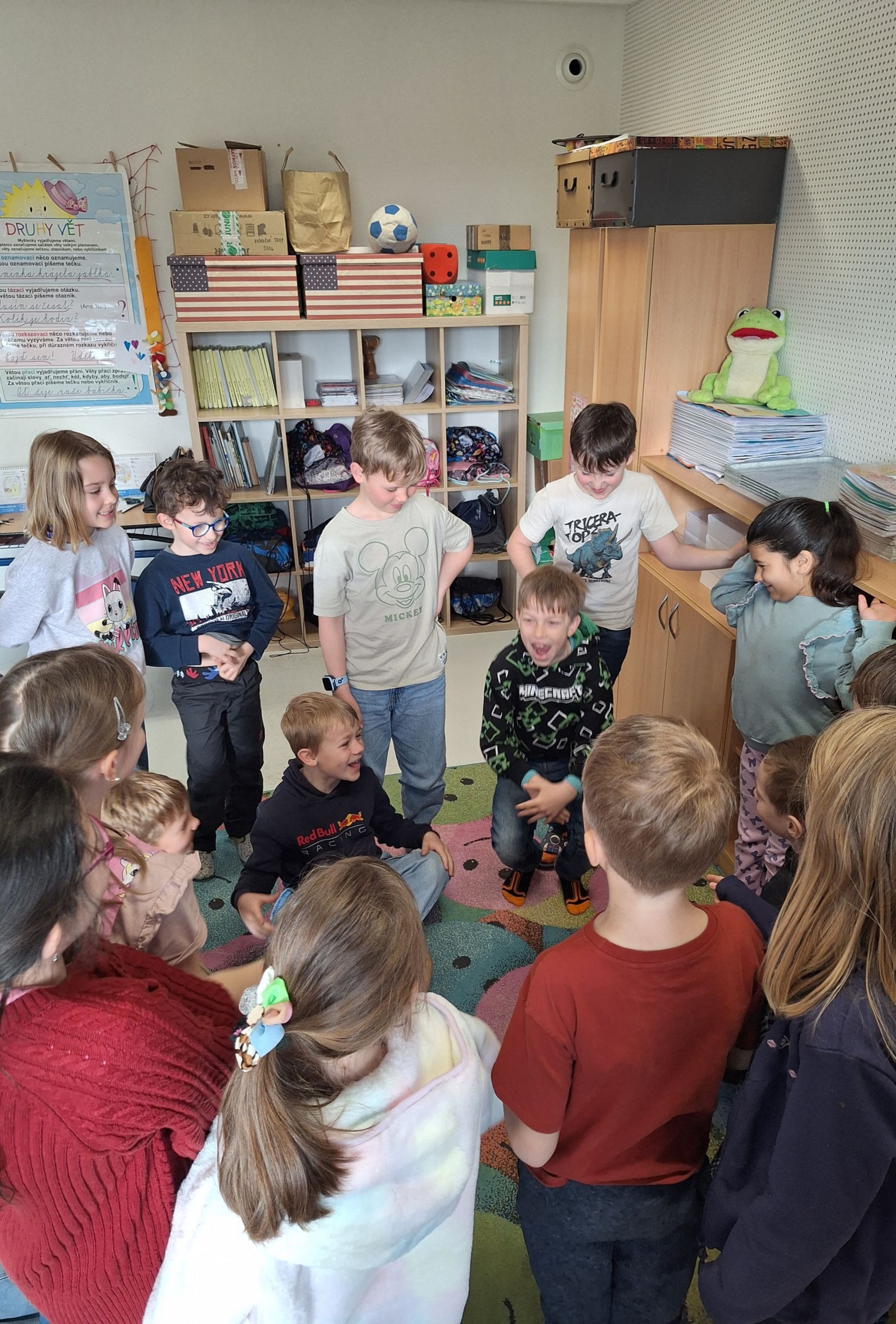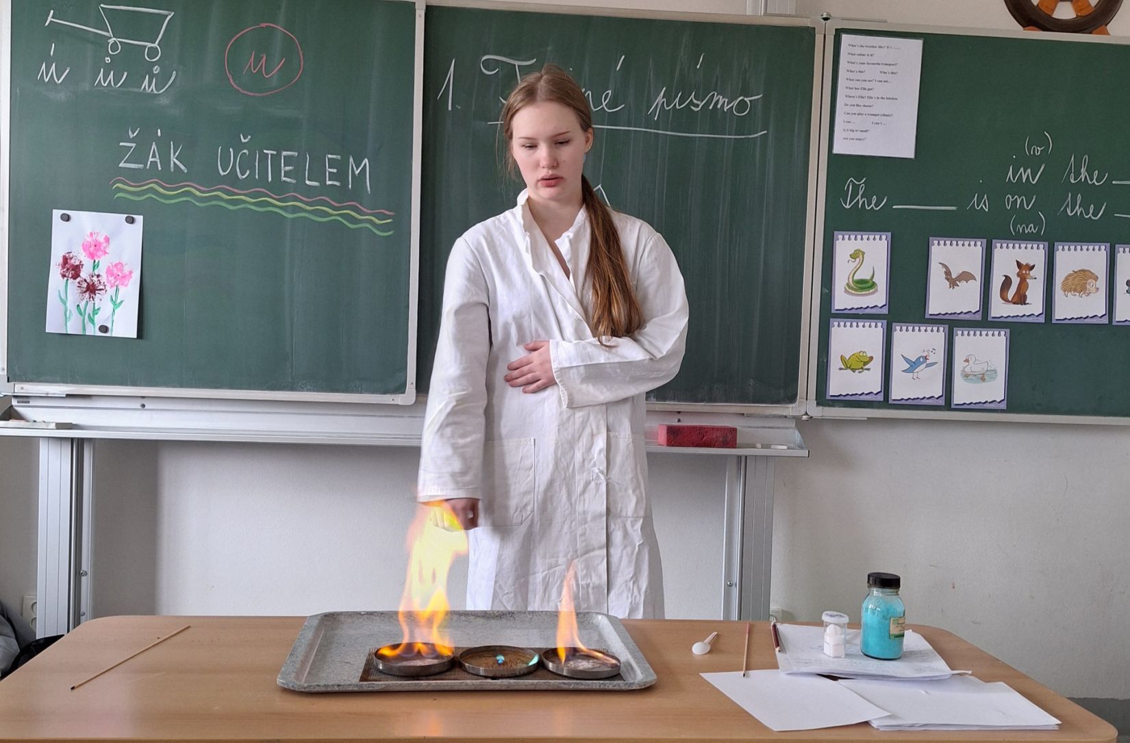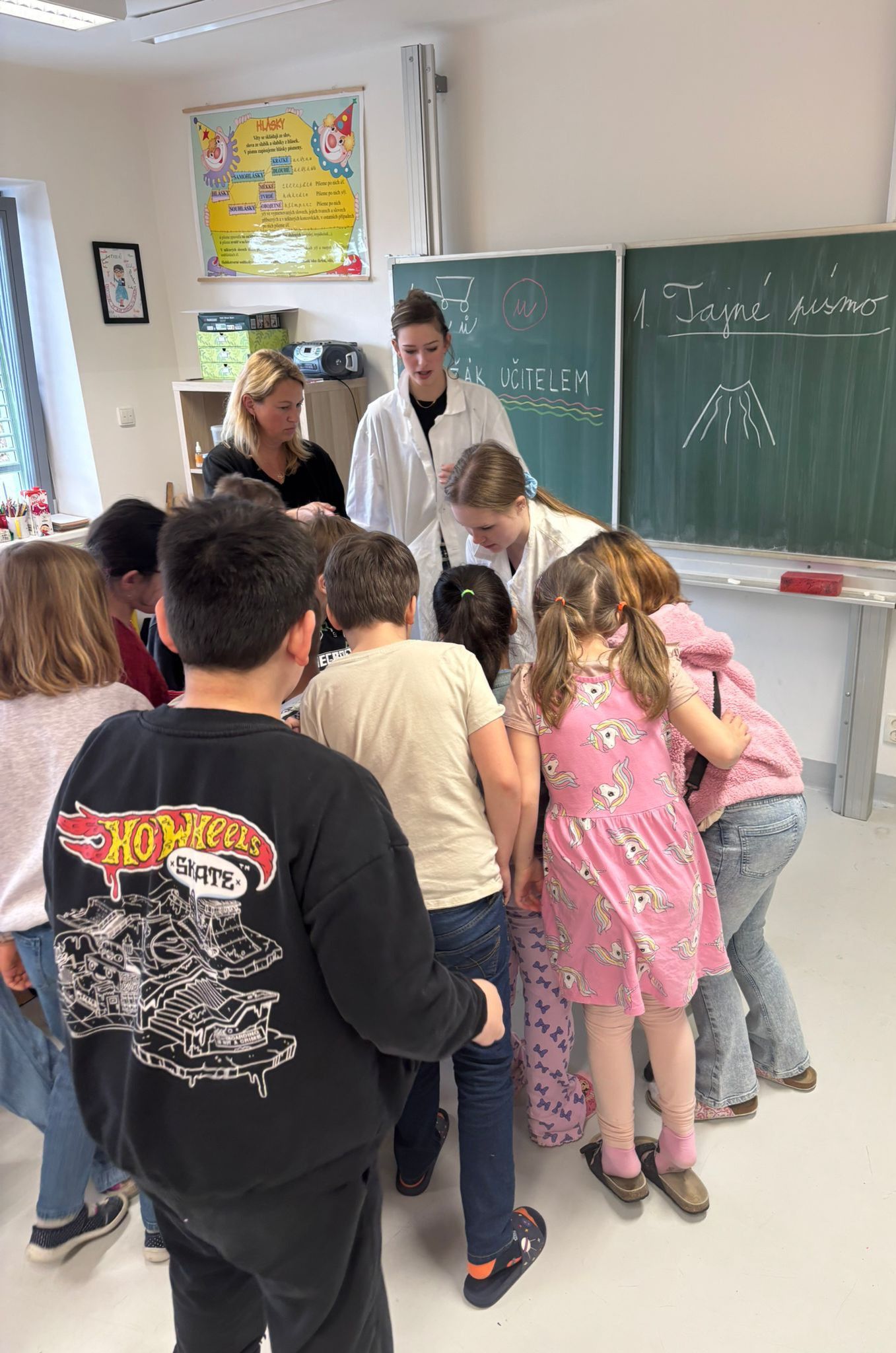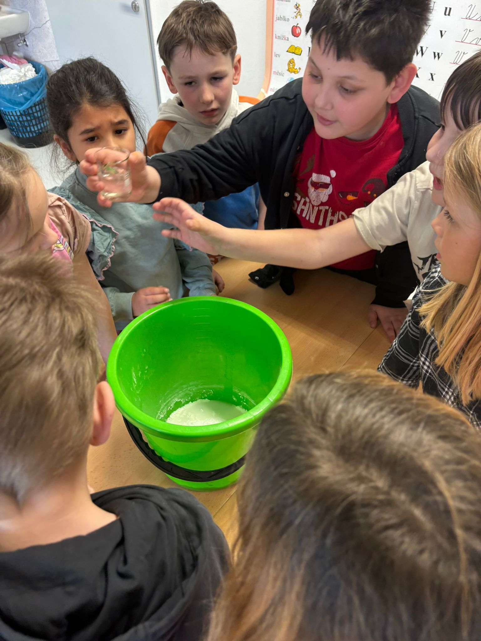 Ve středu 1. 4. 2026 se na naší škole konal projekt "Žák učitelem". V naší třídě se vystřídalo 6 milých "učitelek". První hodinu si připravily Kačka s Natálkou z 8. třídy. Byla to hodina matematiky plná her. Děti byly nadšené. Celou hodinu byly pozorné a hodné. Jedna z her se jim zalíbila natolik, že ji hrály i o přestávce. Určitě ji zařadíme i do našich hodin. Druhá hodina probíhala pod vedením Darinky a Emilky - opět žákyň z 8. třídy. Žáci pomocí otisku nastříhaných plastových brček "vykouzlili" nádherné kytice. Poslední dvě hodiny byly plné akce a napětí. Samantha a Nela z 9.A si pro nás připravily pod vedením paní zástupkyně Renaty Klimešové několik pokusů. Byly úžasné ("paní učitelky" i pokusy). Všem děvčatům moc děkujeme za skvěle připravené hodiny. Už nyní se těšíme na příští školní rok a tuto akci.