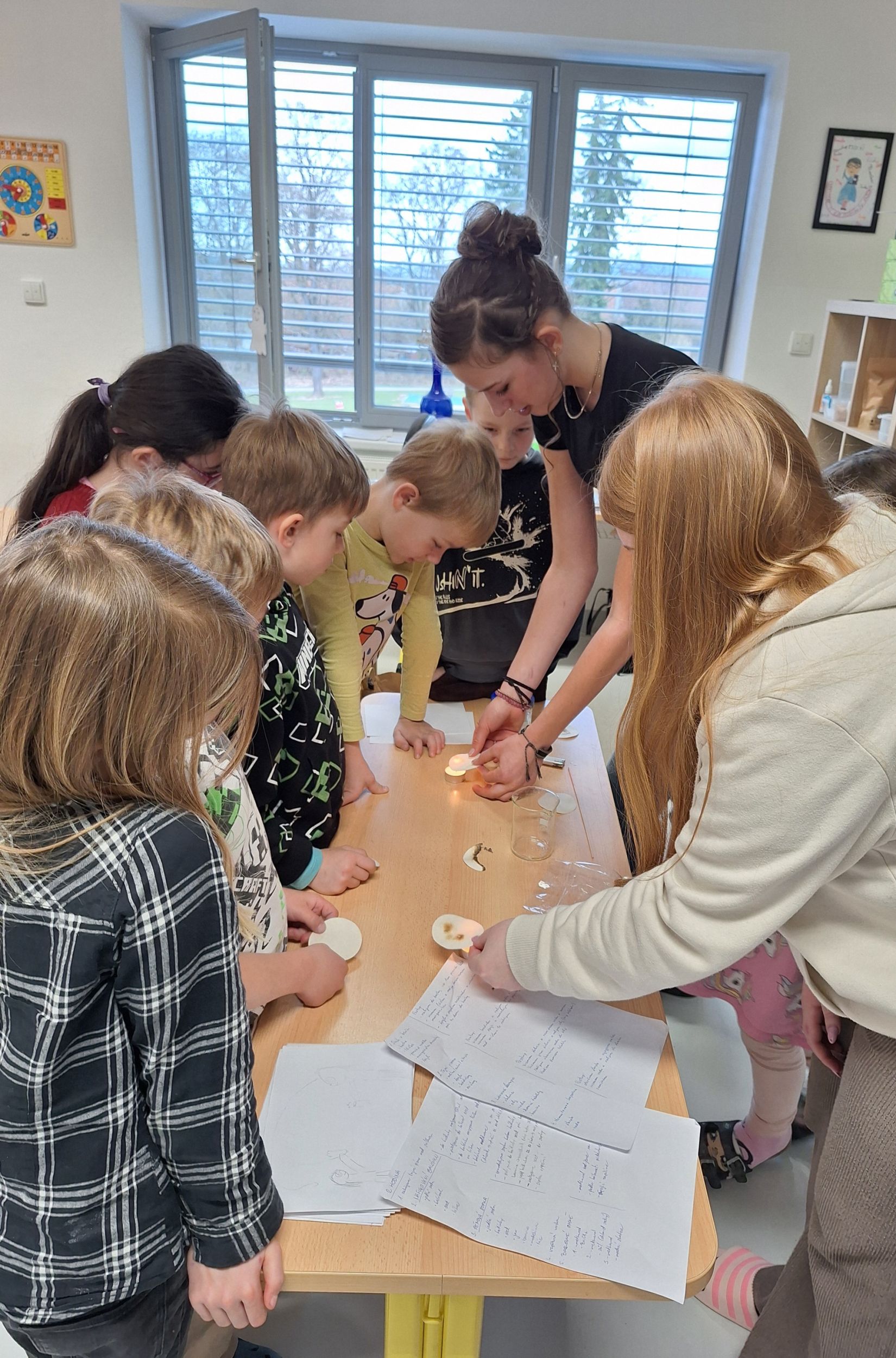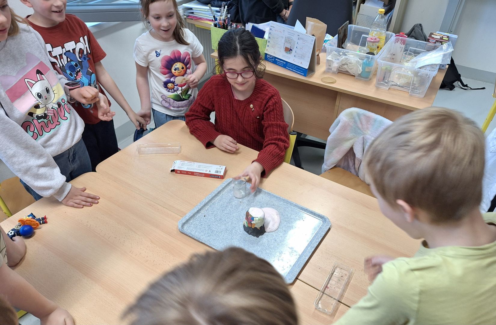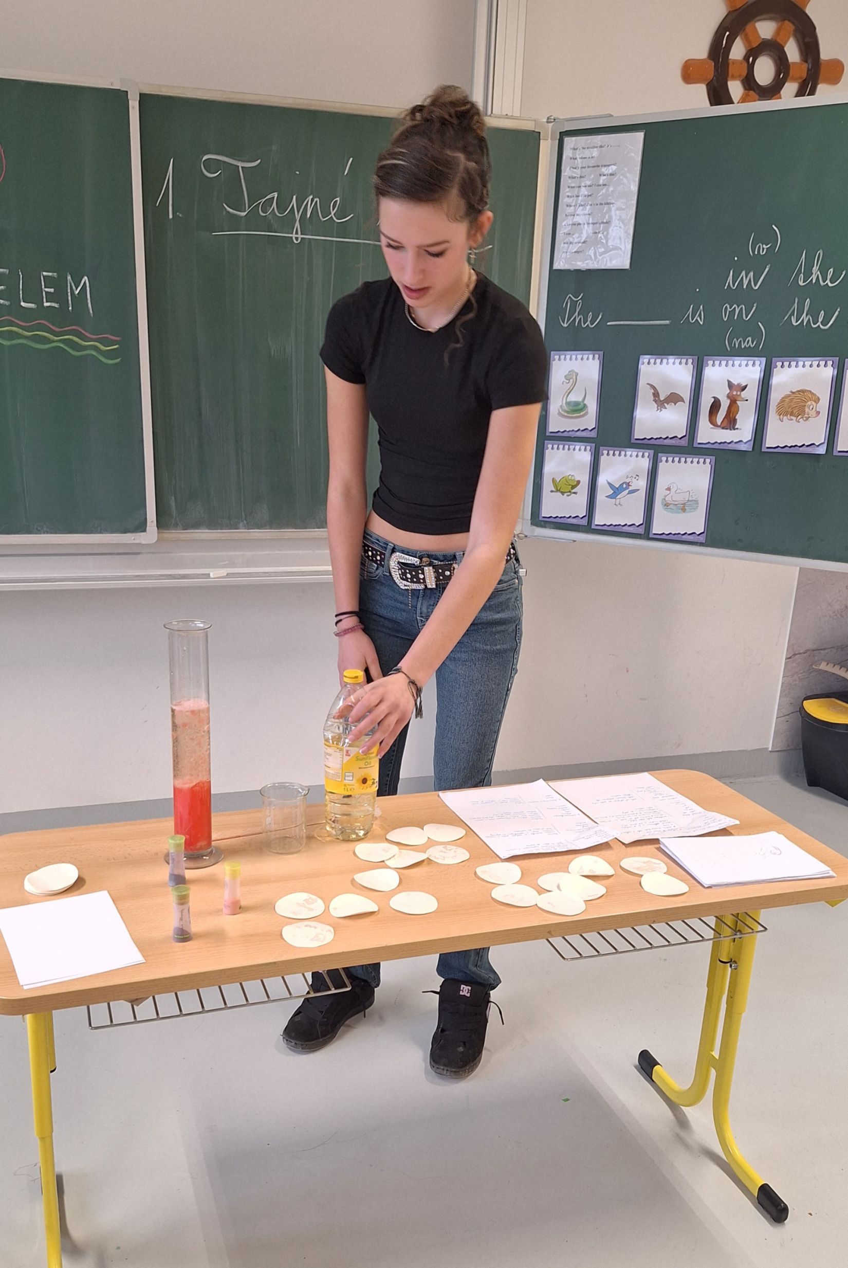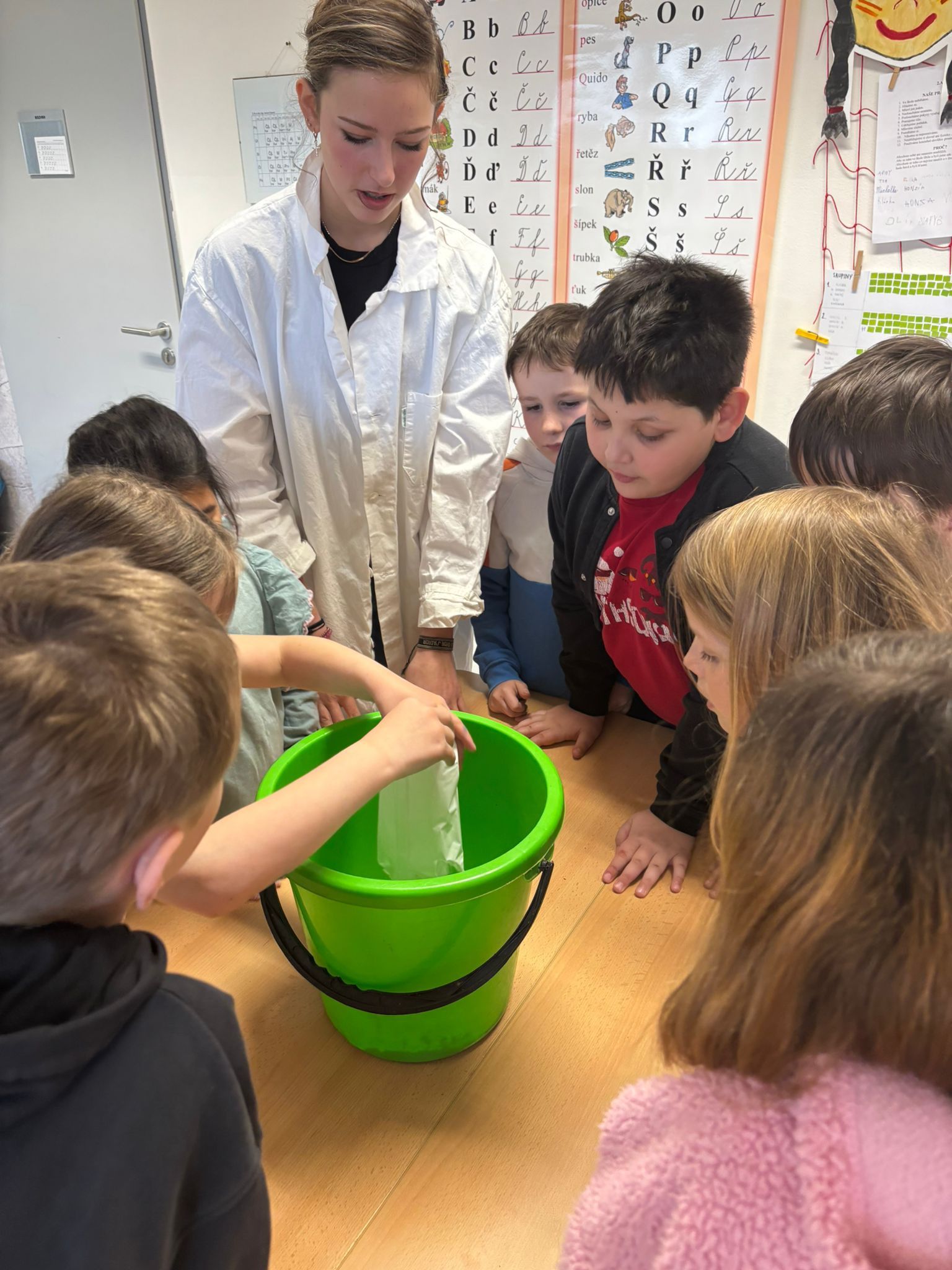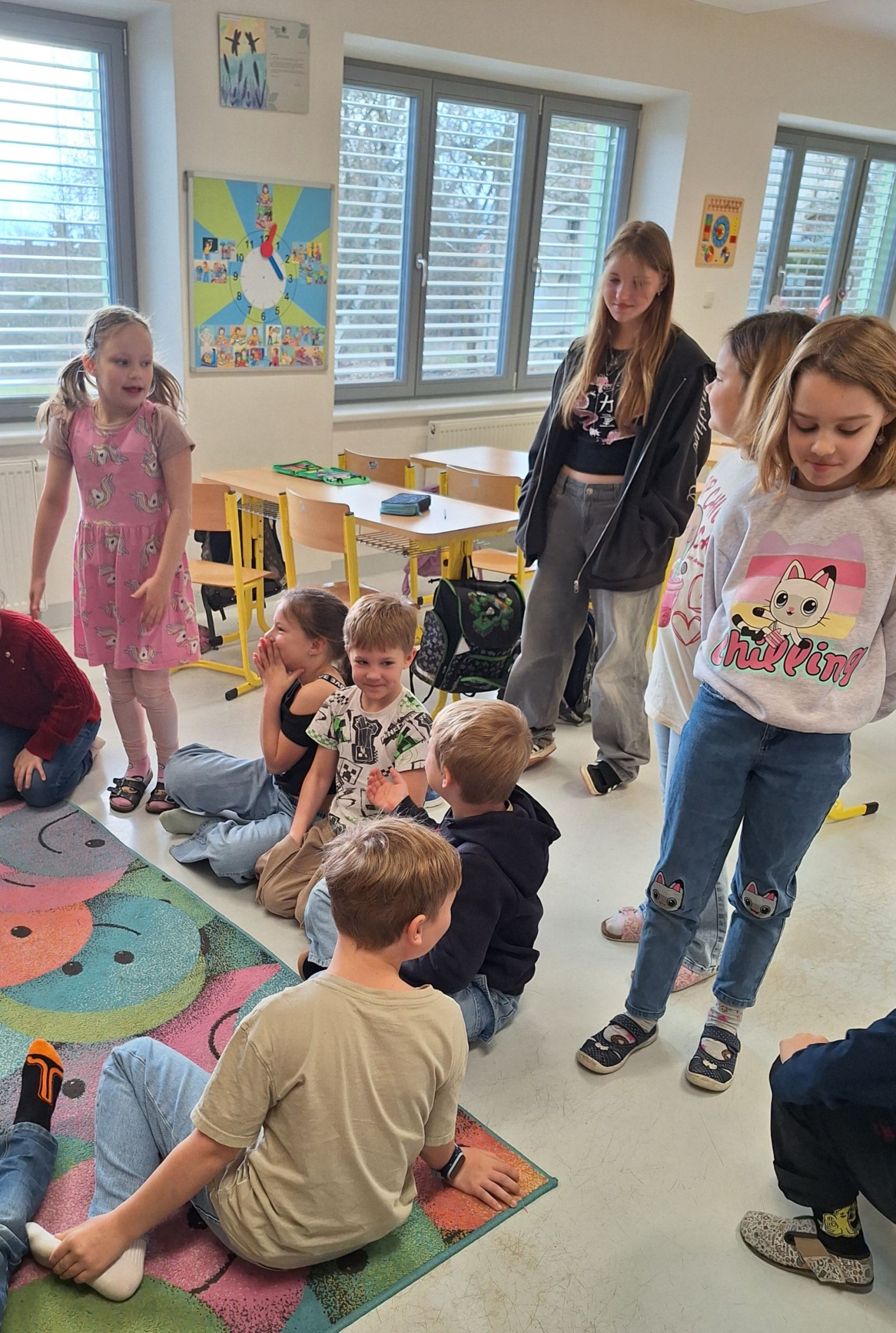 Ve středu 1. 4. 2026 se na naší škole konal projekt "Žák učitelem". V naší třídě se vystřídalo 6 milých "učitelek". První hodinu si připravily Kačka s Natálkou z 8. třídy. Byla to hodina matematiky plná her. Děti byly nadšené. Celou hodinu byly pozorné a hodné. Jedna z her se jim zalíbila natolik, že ji hrály i o přestávce. Určitě ji zařadíme i do našich hodin. Druhá hodina probíhala pod vedením Darinky a Emilky - opět žákyň z 8. třídy. Žáci pomocí otisku nastříhaných plastových brček "vykouzlili" nádherné kytice. Poslední dvě hodiny byly plné akce a napětí. Samantha a Nela z 9.A si pro nás připravily pod vedením paní zástupkyně Renaty Klimešové několik pokusů. Byly úžasné ("paní učitelky" i pokusy). Všem děvčatům moc děkujeme za skvěle připravené hodiny. Už nyní se těšíme na příští školní rok a tuto akci.