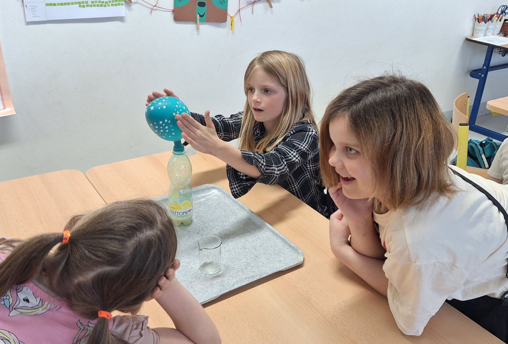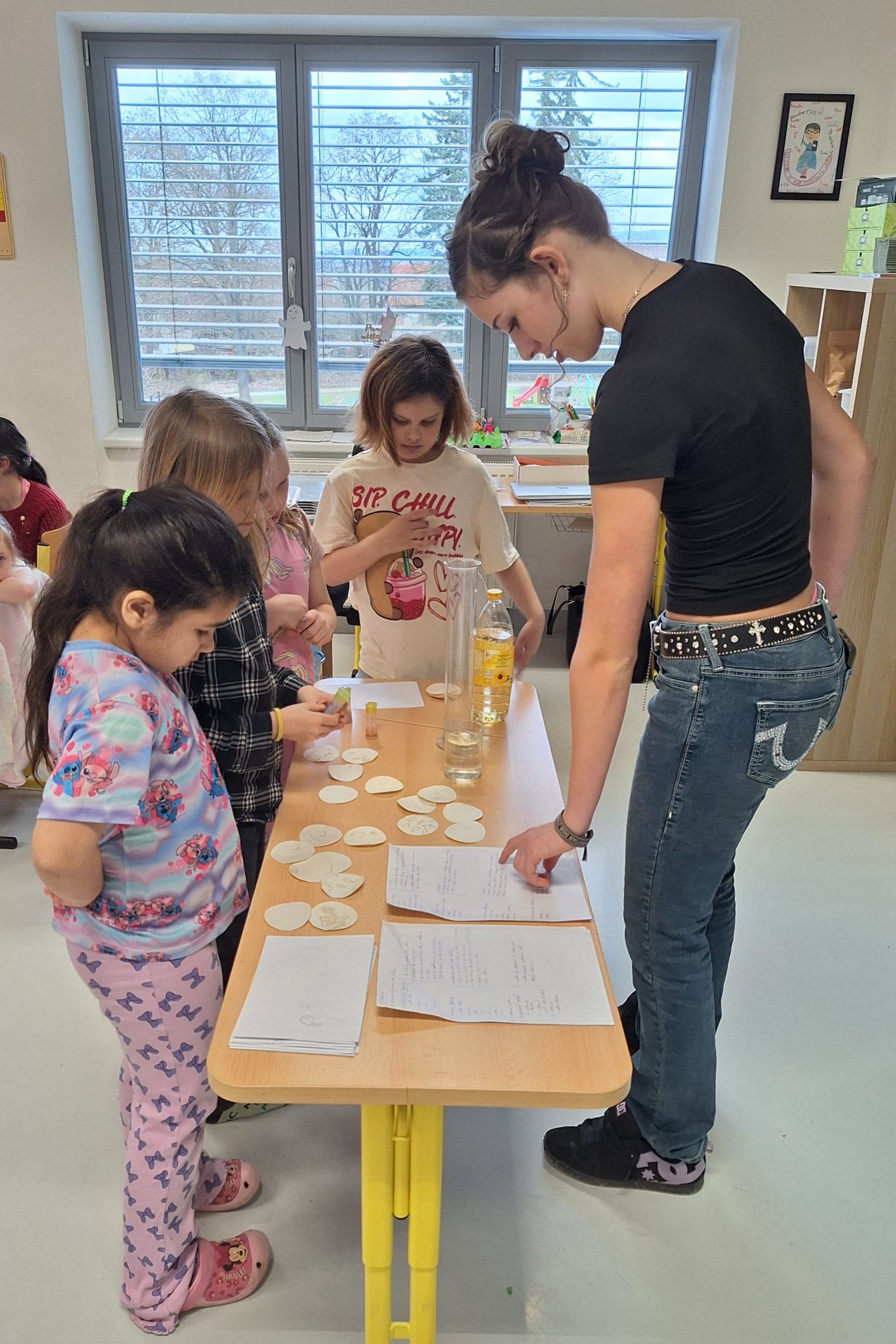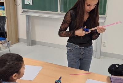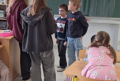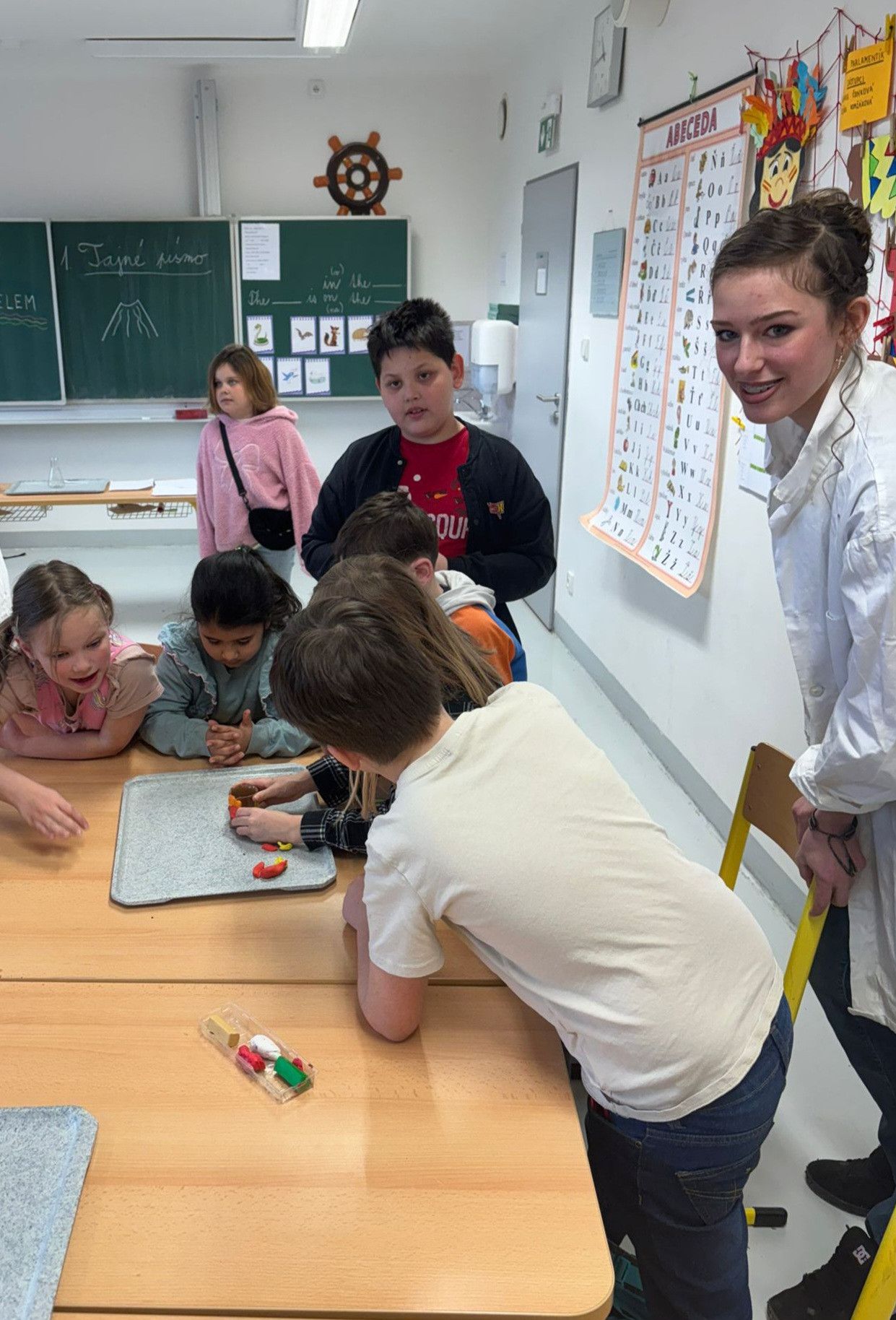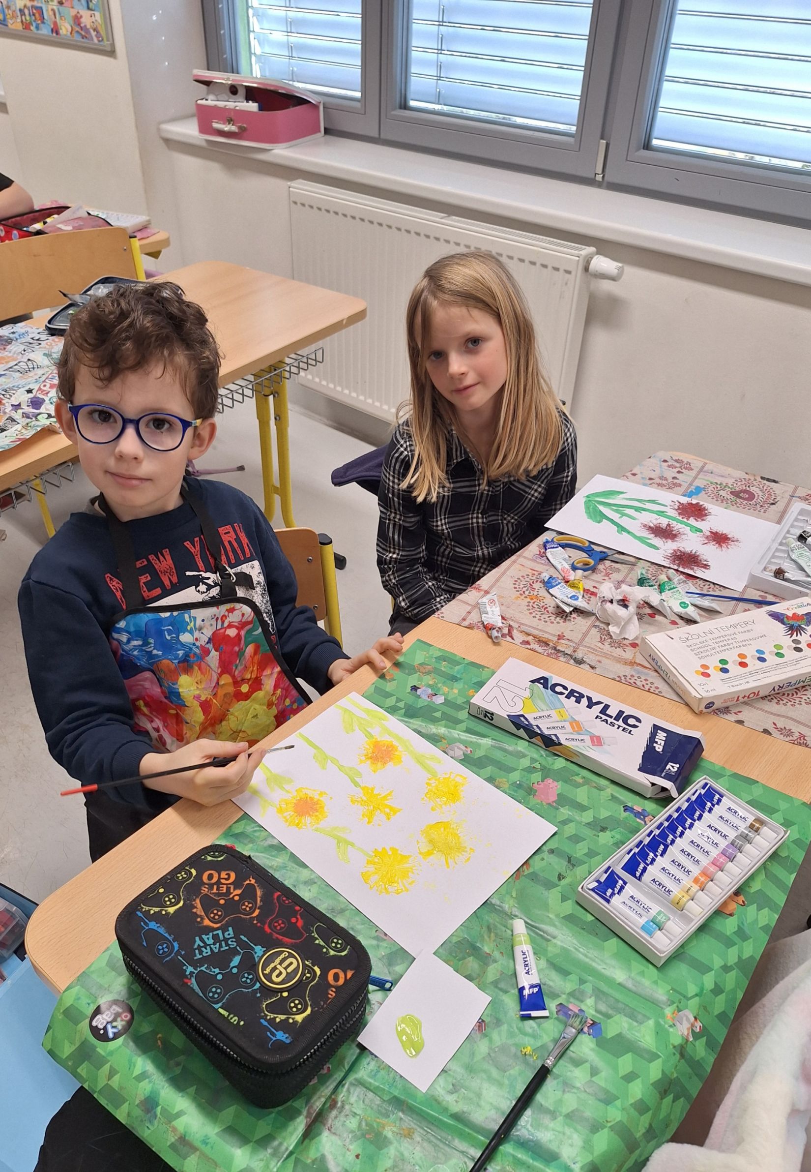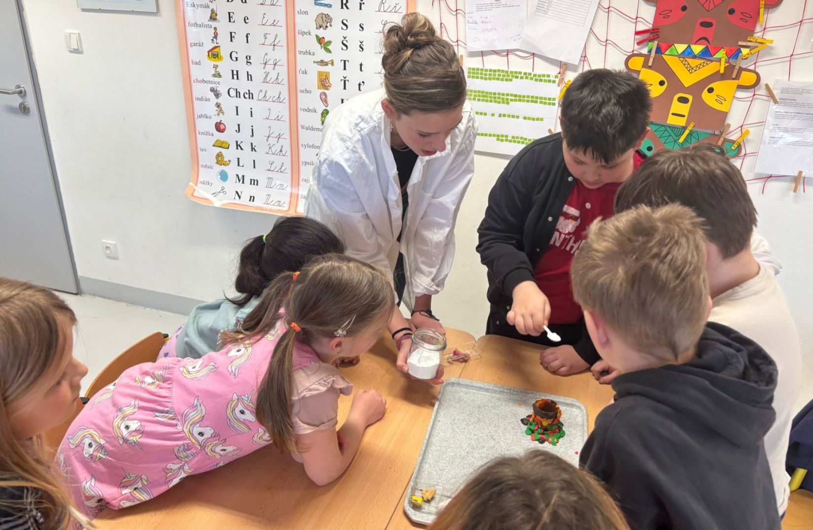 Ve středu 1. 4. 2026 se na naší škole konal projekt "Žák učitelem". V naší třídě se vystřídalo 6 milých "učitelek". První hodinu si připravily Kačka s Natálkou z 8. třídy. Byla to hodina matematiky plná her. Děti byly nadšené. Celou hodinu byly pozorné a hodné. Jedna z her se jim zalíbila natolik, že ji hrály i o přestávce. Určitě ji zařadíme i do našich hodin. Druhá hodina probíhala pod vedením Darinky a Emilky - opět žákyň z 8. třídy. Žáci pomocí otisku nastříhaných plastových brček "vykouzlili" nádherné kytice. Poslední dvě hodiny byly plné akce a napětí. Samantha a Nela z 9.A si pro nás připravily pod vedením paní zástupkyně Renaty Klimešové několik pokusů. Byly úžasné ("paní učitelky" i pokusy). Všem děvčatům moc děkujeme za skvěle připravené hodiny. Už nyní se těšíme na příští školní rok a tuto akci.