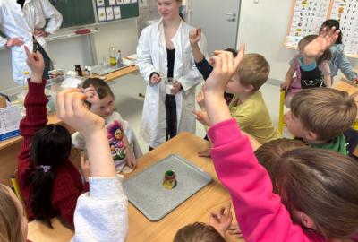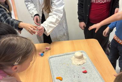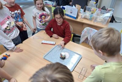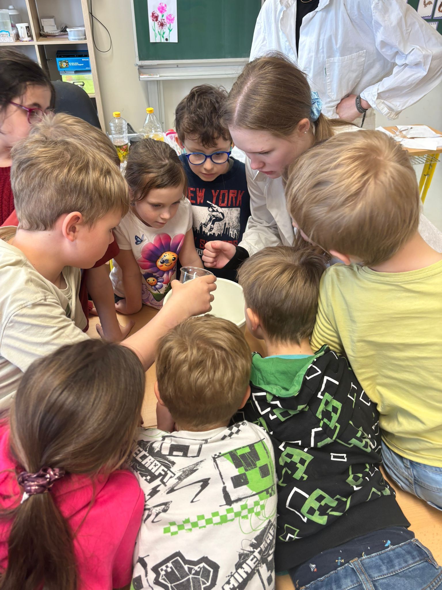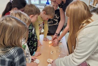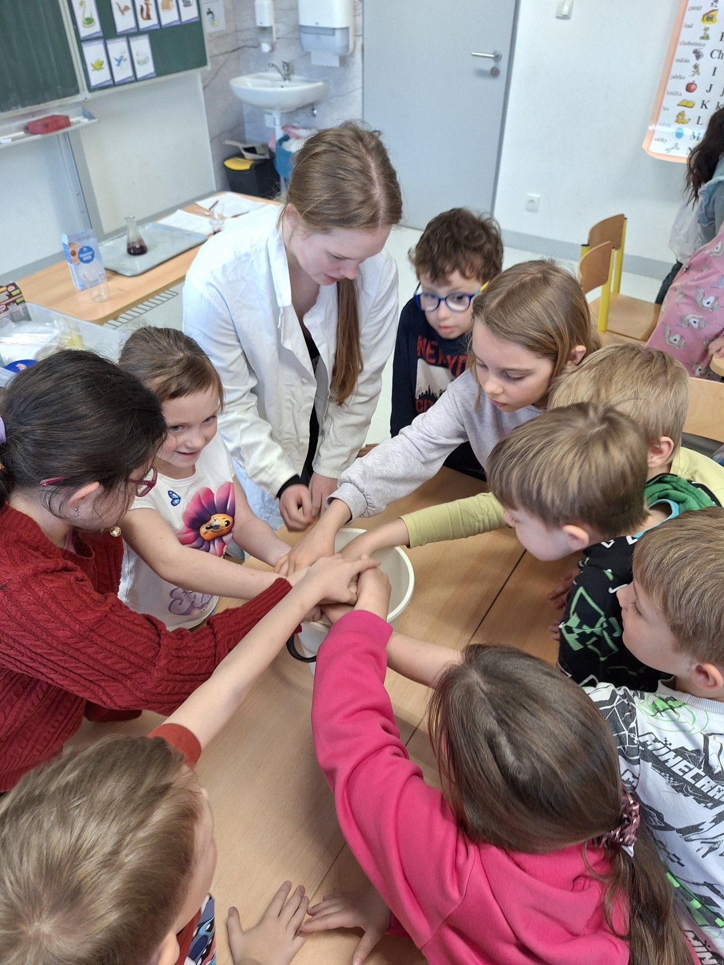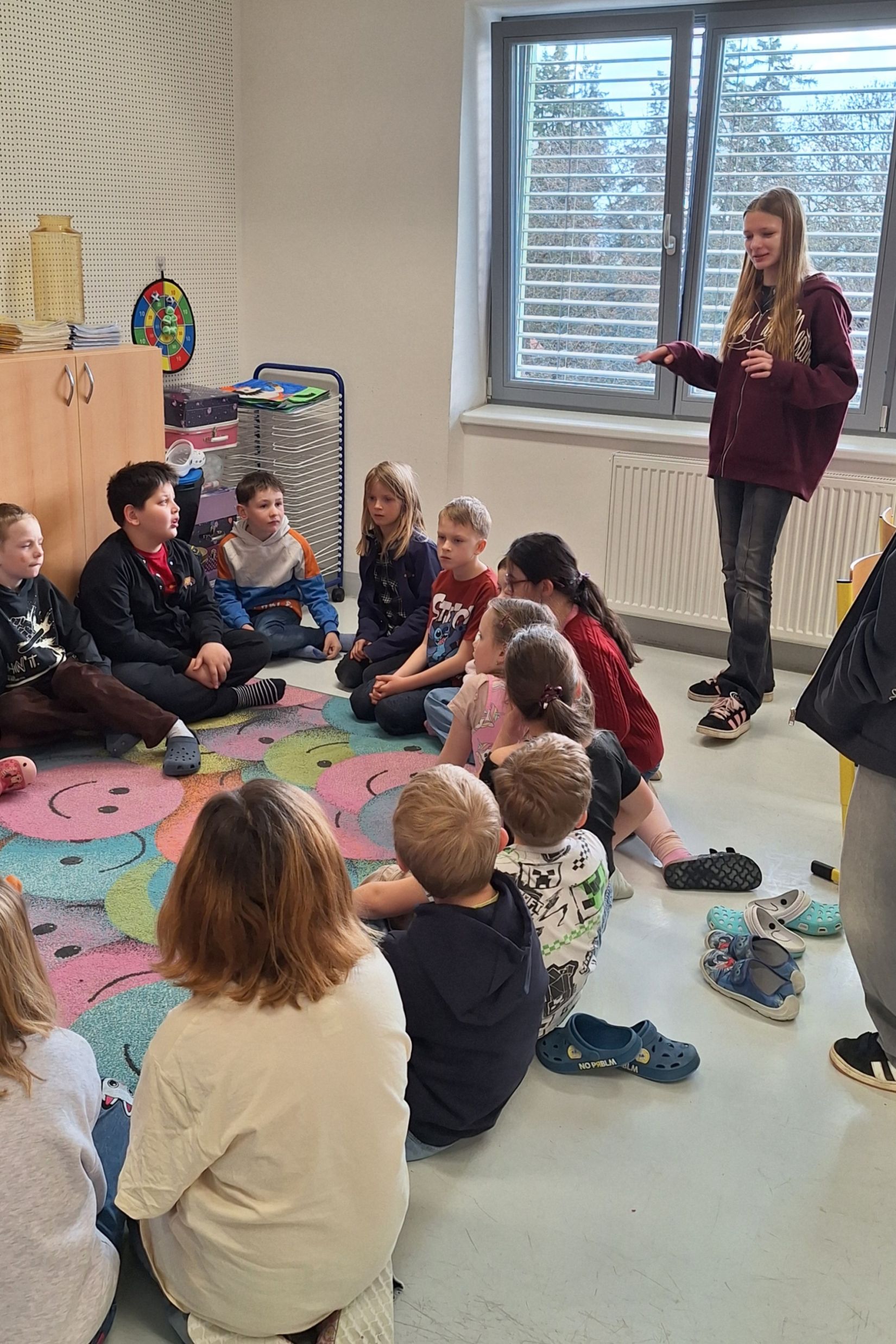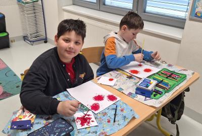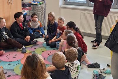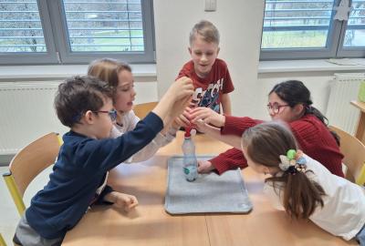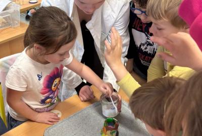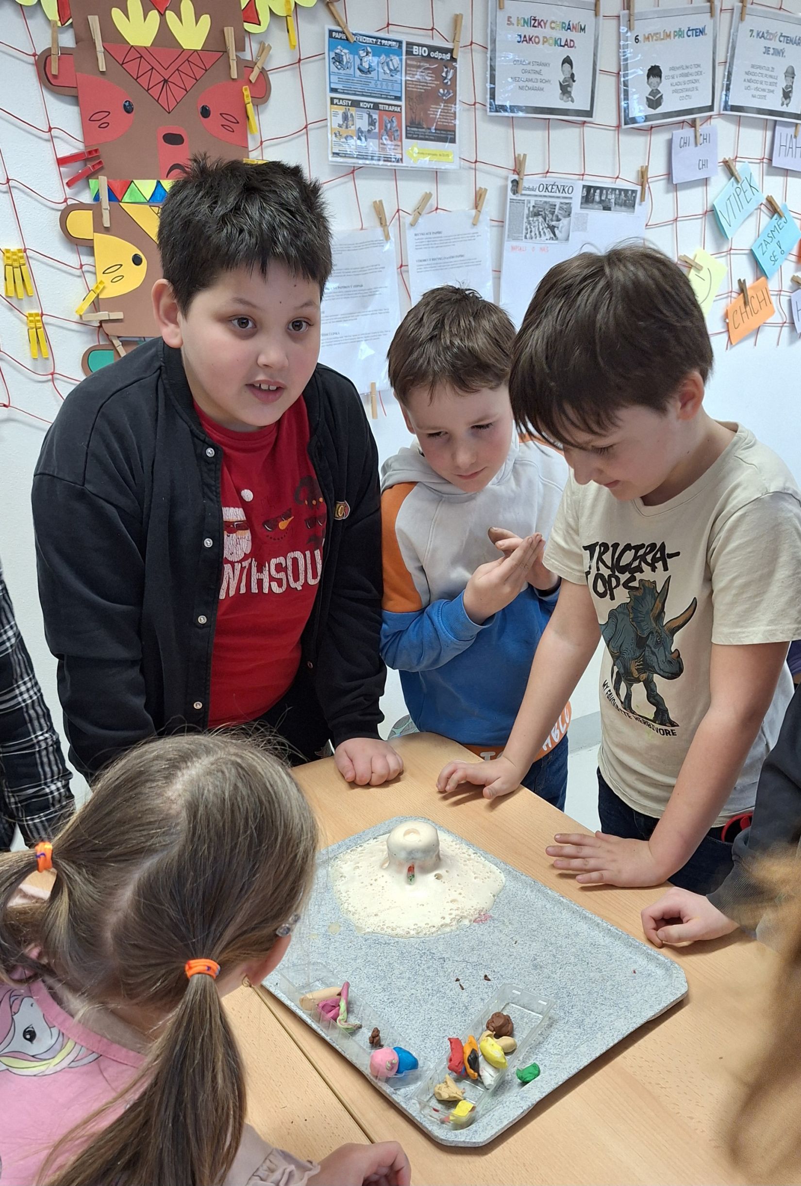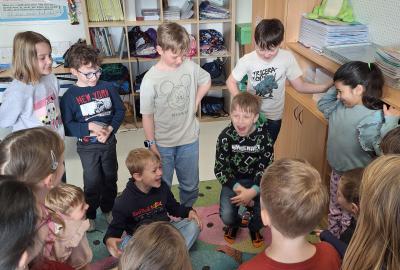 Ve středu 1. 4. 2026 se na naší škole konal projekt "Žák učitelem". V naší třídě se vystřídalo 6 milých "učitelek". První hodinu si připravily Kačka s Natálkou z 8. třídy. Byla to hodina matematiky plná her. Děti byly nadšené. Celou hodinu byly pozorné a hodné. Jedna z her se jim zalíbila natolik, že ji hrály i o přestávce. Určitě ji zařadíme i do našich hodin. Druhá hodina probíhala pod vedením Darinky a Emilky - opět žákyň z 8. třídy. Žáci pomocí otisku nastříhaných plastových brček "vykouzlili" nádherné kytice. Poslední dvě hodiny byly plné akce a napětí. Samantha a Nela z 9.A si pro nás připravily pod vedením paní zástupkyně Renaty Klimešové několik pokusů. Byly úžasné ("paní učitelky" i pokusy). Všem děvčatům moc děkujeme za skvěle připravené hodiny. Už nyní se těšíme na příští školní rok a tuto akci.