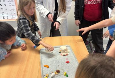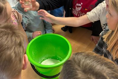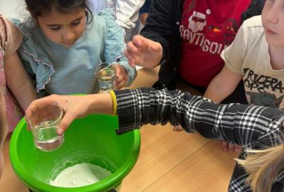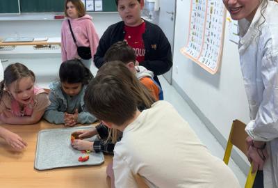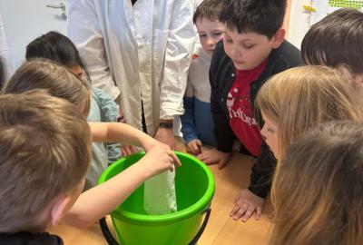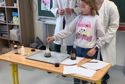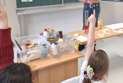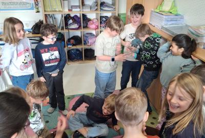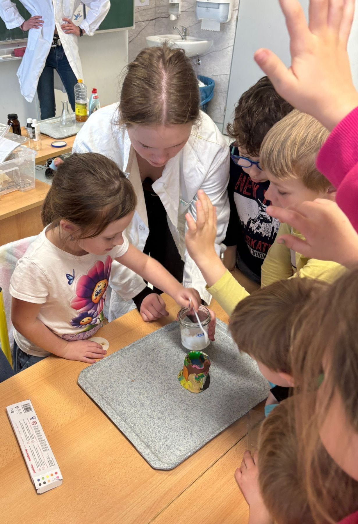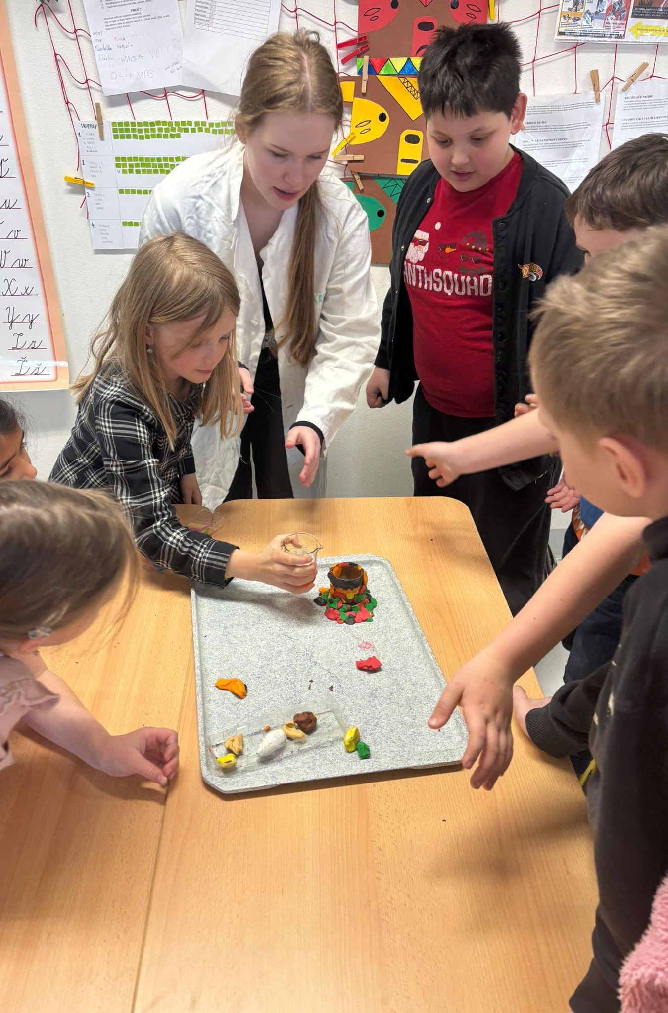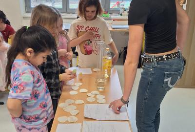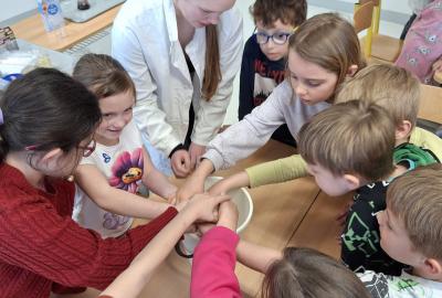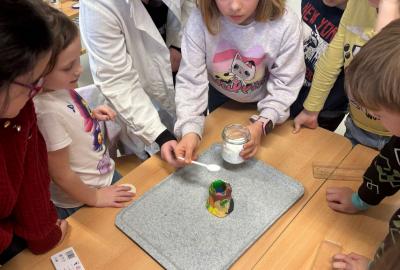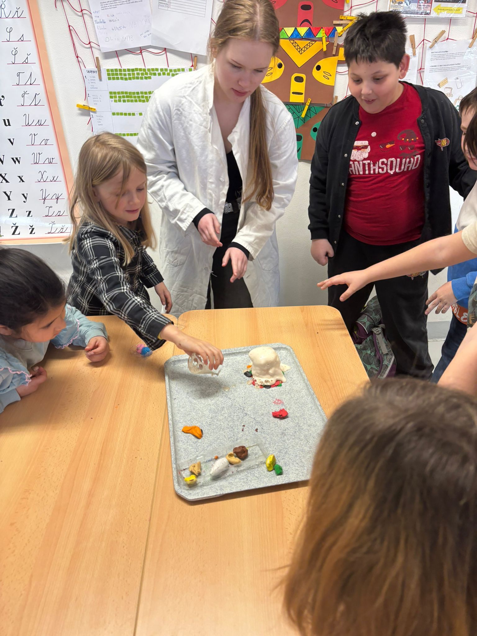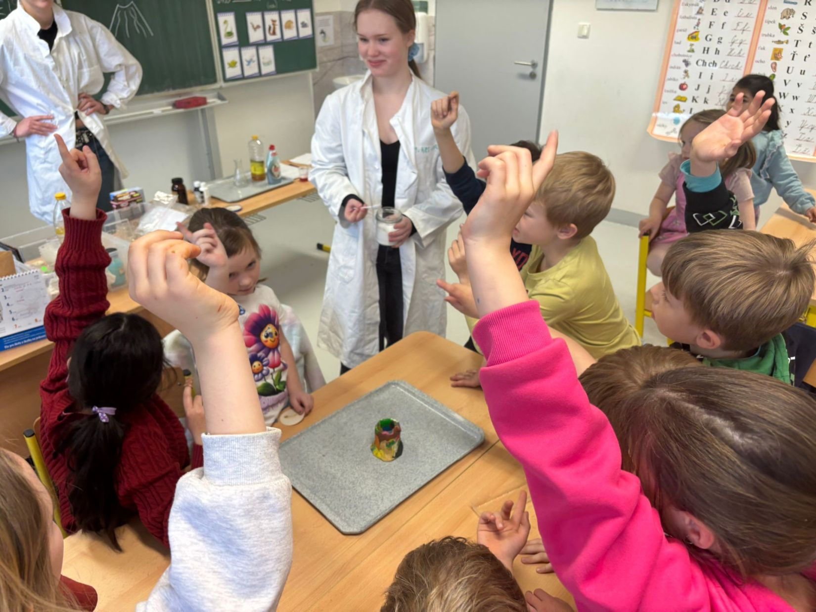 Ve středu 1. 4. 2026 se na naší škole konal projekt "Žák učitelem". V naší třídě se vystřídalo 6 milých "učitelek". První hodinu si připravily Kačka s Natálkou z 8. třídy. Byla to hodina matematiky plná her. Děti byly nadšené. Celou hodinu byly pozorné a hodné. Jedna z her se jim zalíbila natolik, že ji hrály i o přestávce. Určitě ji zařadíme i do našich hodin. Druhá hodina probíhala pod vedením Darinky a Emilky - opět žákyň z 8. třídy. Žáci pomocí otisku nastříhaných plastových brček "vykouzlili" nádherné kytice. Poslední dvě hodiny byly plné akce a napětí. Samantha a Nela z 9.A si pro nás připravily pod vedením paní zástupkyně Renaty Klimešové několik pokusů. Byly úžasné ("paní učitelky" i pokusy). Všem děvčatům moc děkujeme za skvěle připravené hodiny. Už nyní se těšíme na příští školní rok a tuto akci.