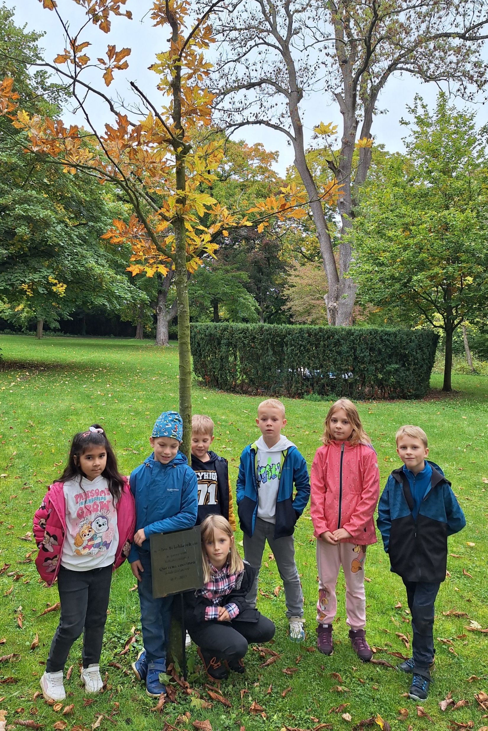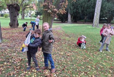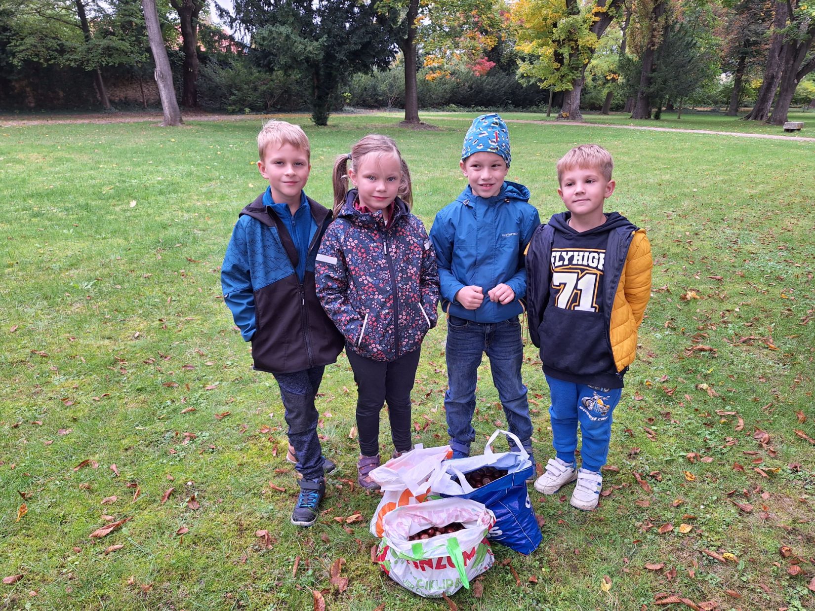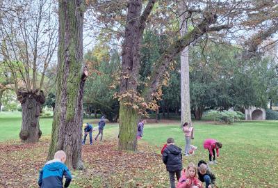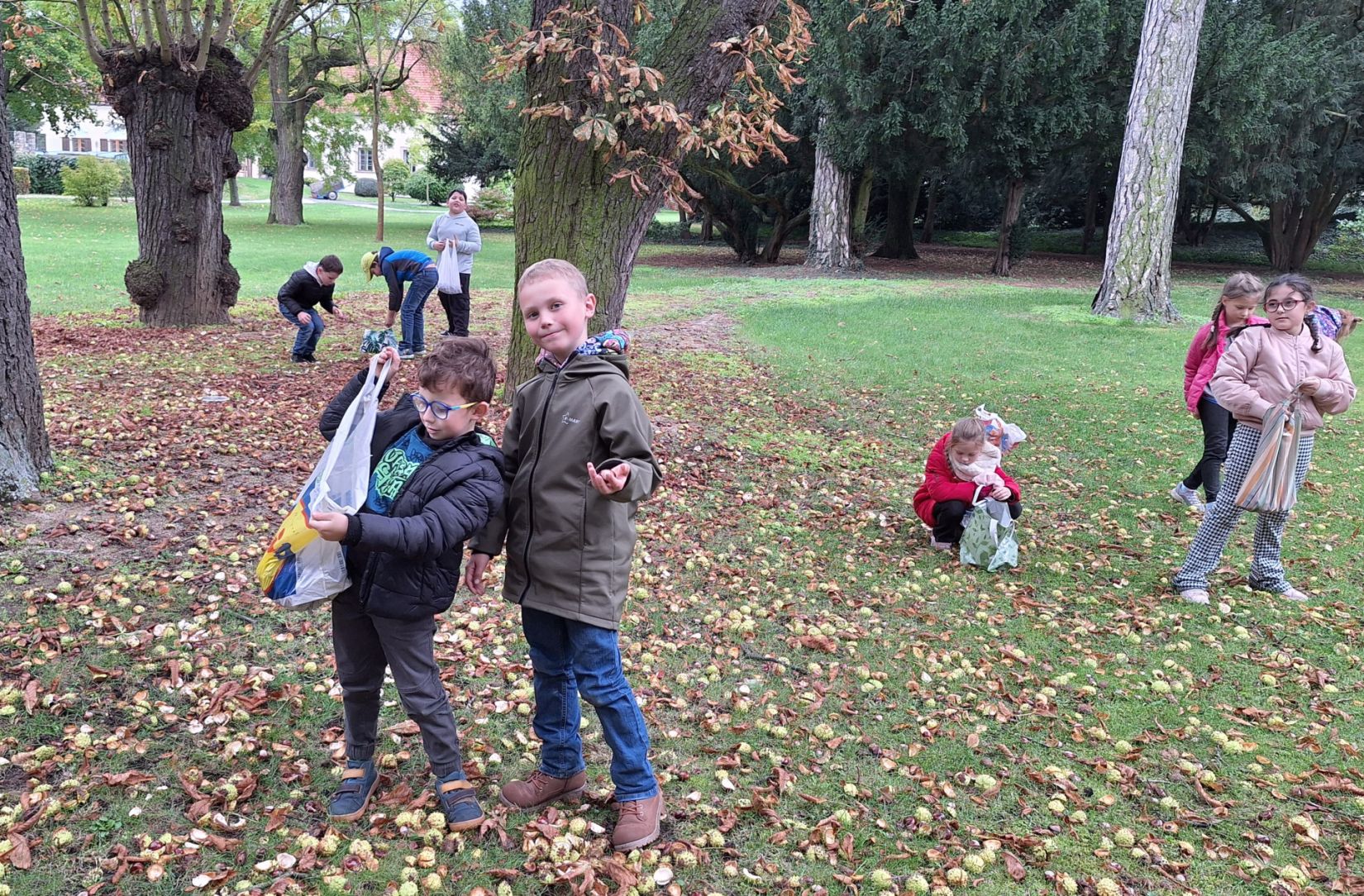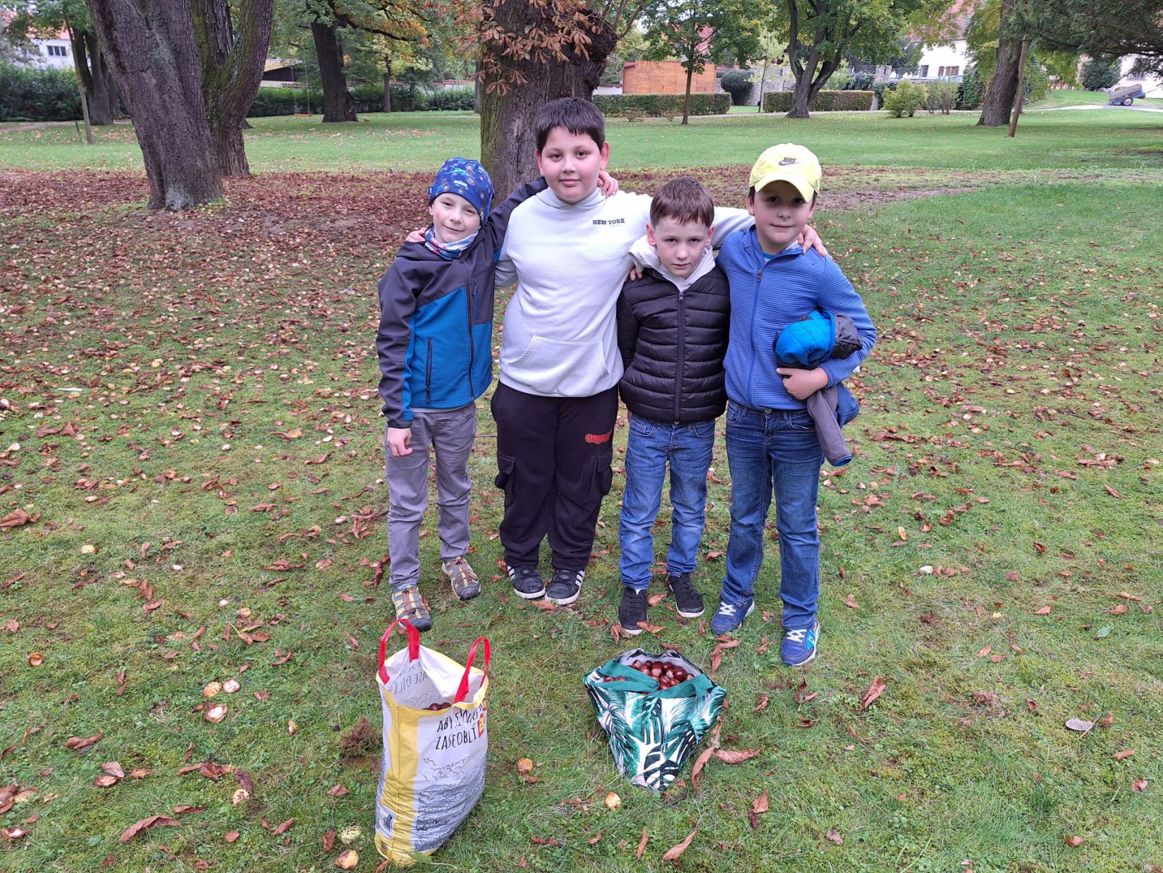 Ve středu 8. 10. jsme využili nabídky pana správce zámeckého parku a vydali se sbírat kaštany. Návštěvu areálu jsme si náležitě užili. Ukázali jsme si významné budovy - zámek, Čechovnu, oranžerii, sala terrenu, grotu. Mohli jsme nahlédnout do nově opraveného zahradního sálu a podívat se na zrestaurovanou fresku. Připomněli jsme si významné osobnosti - Jarmilu Novotnou, Svatopluka Čecha. Dále jsme se pokoušeli poznávat jehličnaté a listnaté stromy a keře. Seznámili jsme se s novými druhy. Viděli jsme tis červený nebo pavlovnii plstnatou. Některé stromy zde zasadily významné osobnosti jako např. dirigent Jiří Bělohlávek, pěvci Adam Plachetka, Dagmar Pecková nebo politik Karel Schwarzenberg. Dozvěděli jsme se tedy mnoho nového a ještě udělali prospěšnou věc. Nasbírané kaštany jsme následující den odnesli do obory jelenům a daňkům.