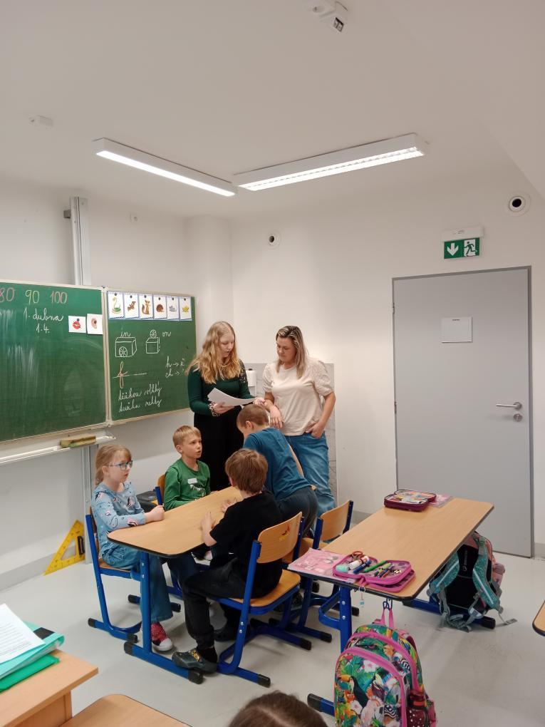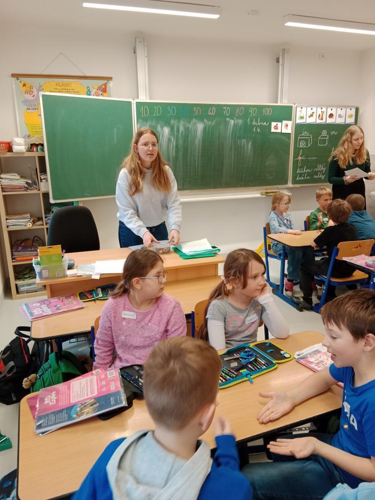 1. duben byl dnes ve znamení projektu "Žák učitelem". První hodinu proběhla výuka matematiky pod vedením Marušky a Terezky z 9. třídy. Děvčata si připravila zajímavé didaktické hry spojené s pohybem. Třetí vyučovací hodinu nás navštívila děvčata z 8. třídy - Katka a Natálka. I jejich hodina byla promyšlená a zajímavá množstvím vyučovacích pomůcek - od kartiček přes přírodniny. Poslední vyučovací hodinu se nám opět vrátila děvčata z 9. třídy. Tentokrát to byla hodina anglického jazyka. Při této vyučovací hodině si děti zopakovaly slovní zásobu ze všech lekcí formou her. Děkujeme všem děvčatům za vzorně připravené hodiny.