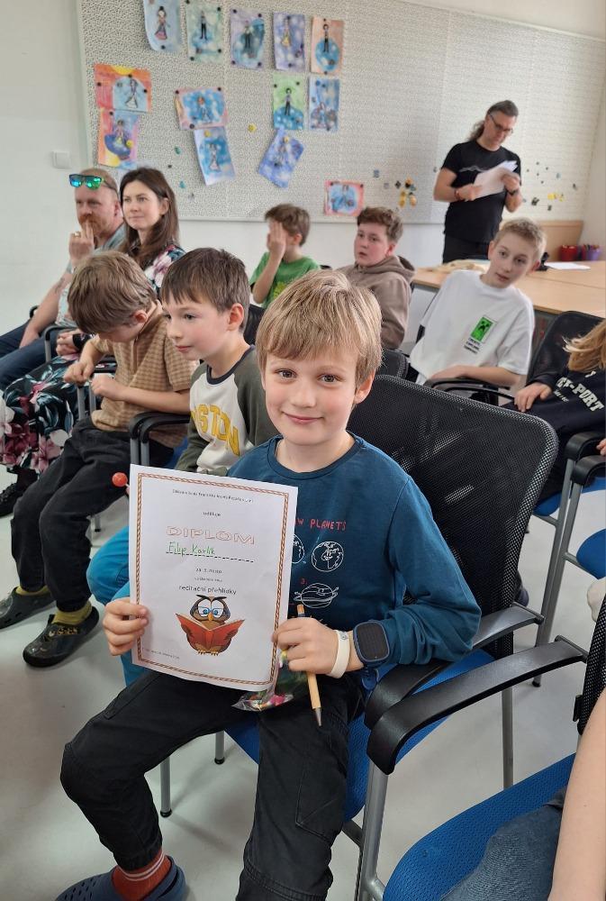 Děkujeme všem účastníkům "Recitační soutěže" za přednes krásných básniček a za odvahu vystoupit před publikem. Zejména gratulujeme Filipovi Karlíkovi z naší třídy, který se umístil na 3. místě v rámci kategorie žáků 2. a 3. tříd.