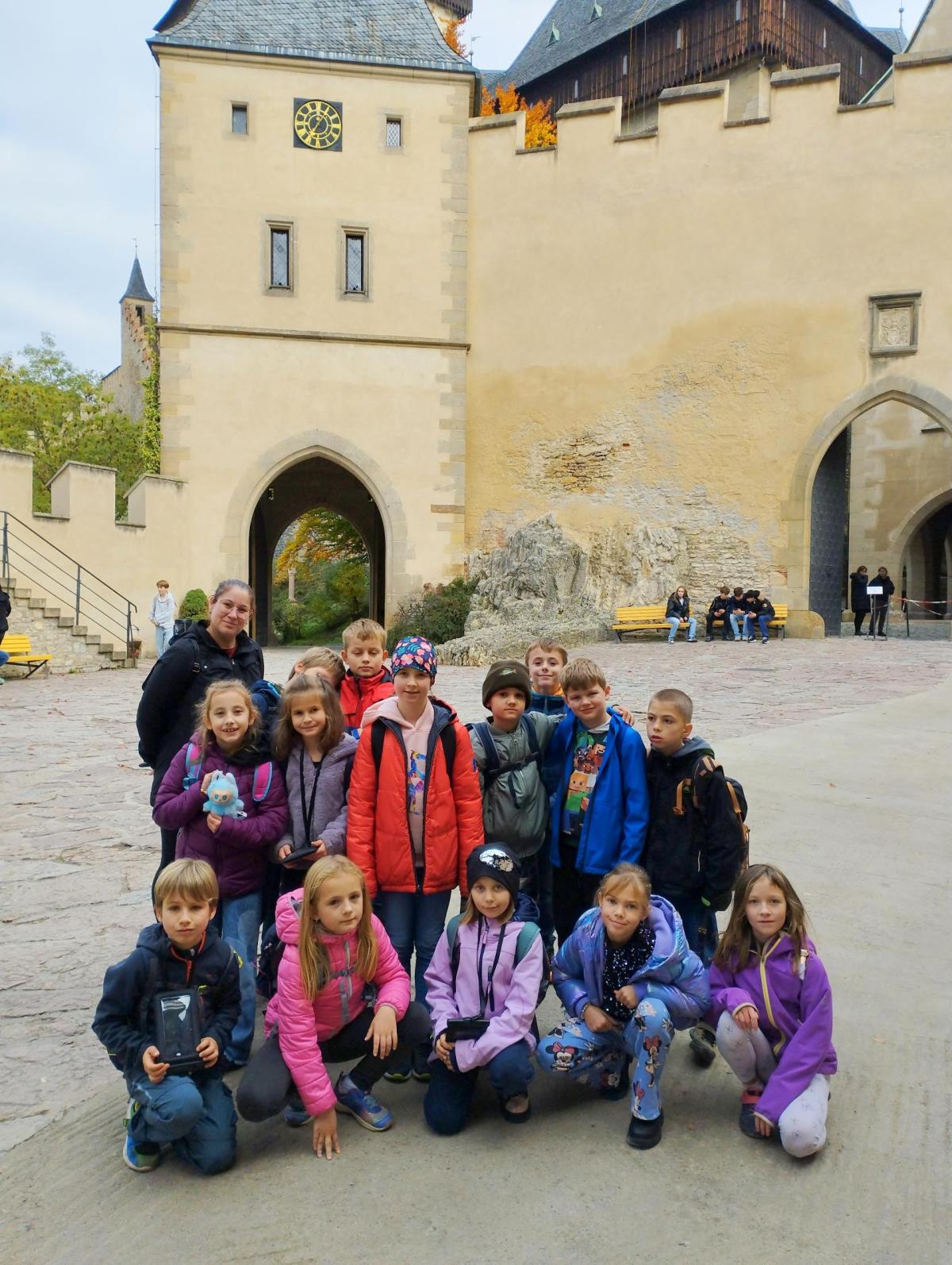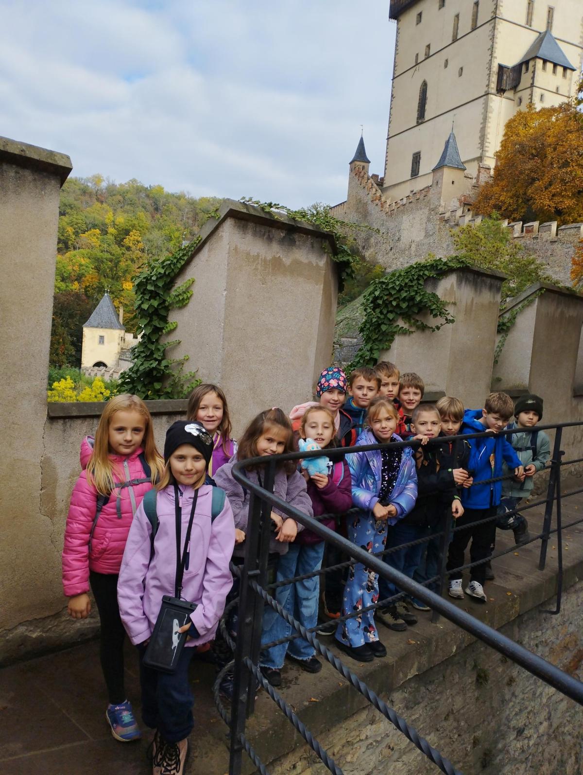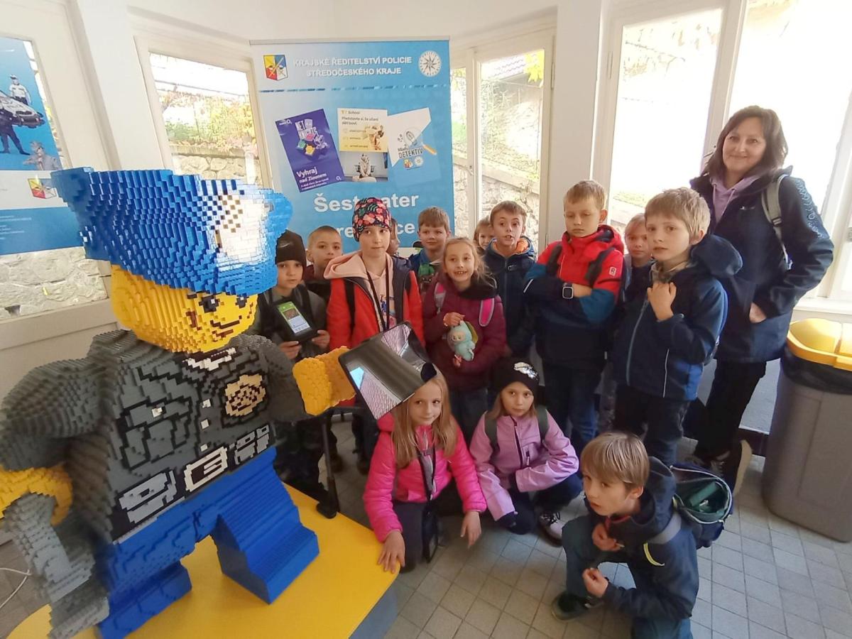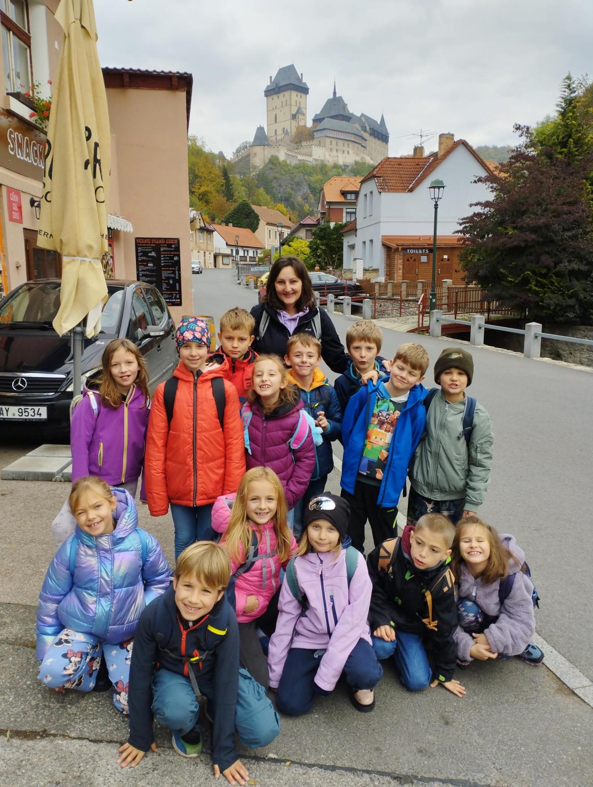 16.10.2025 jsme se vydali vlakem do Karlštejna, kde jsme se zúčastnili preventivního projektu “K6 – Šest pater prevence”, který se zaměřuje na prevenci kriminality, rizikového chování a závislostí. Počasí nám velmi přálo, takže jsme si po cestě z vlaku dali svačinku, zahráli jsme si na vláček a poté jsme se vydali pátrat po zloději obrazu. Detektivní hra nás zavedla až na hrad Karlštejn, kde jsme si na chvíli užívali krásný výhled a poté se vydali zpět. Zloděje děti odhalily :-). Další část jsme strávili v objektu Obvodního oddělení Policie ČR, kde si děti vyslechly přednášku o kyberšikaně, seznámily se s různými nástrahami, a také si připomněly i dopravní výchovu. Zpět vlakem do Litně jsme přijeli všichni spokojeni a plni zážitků :-).
