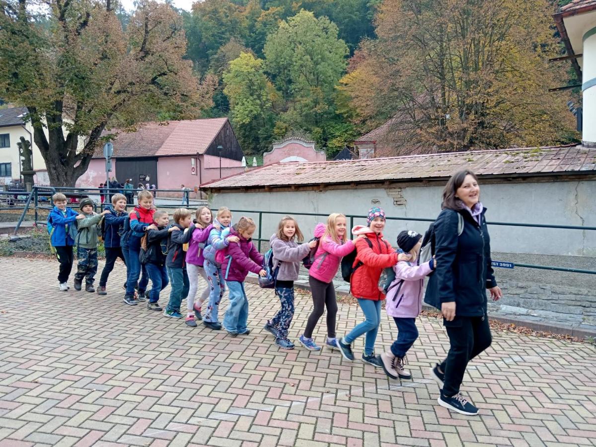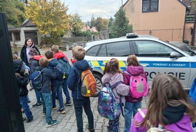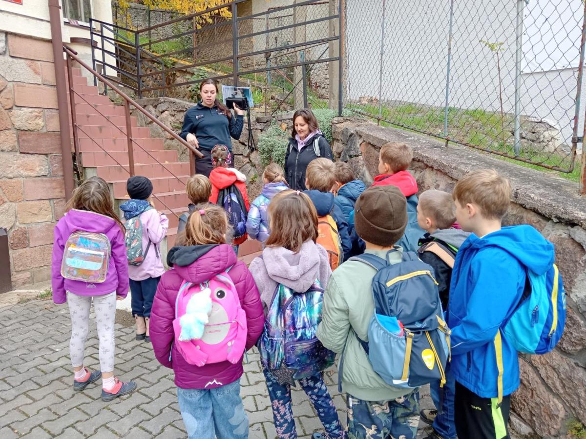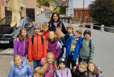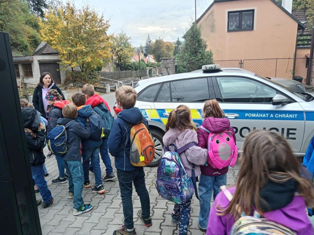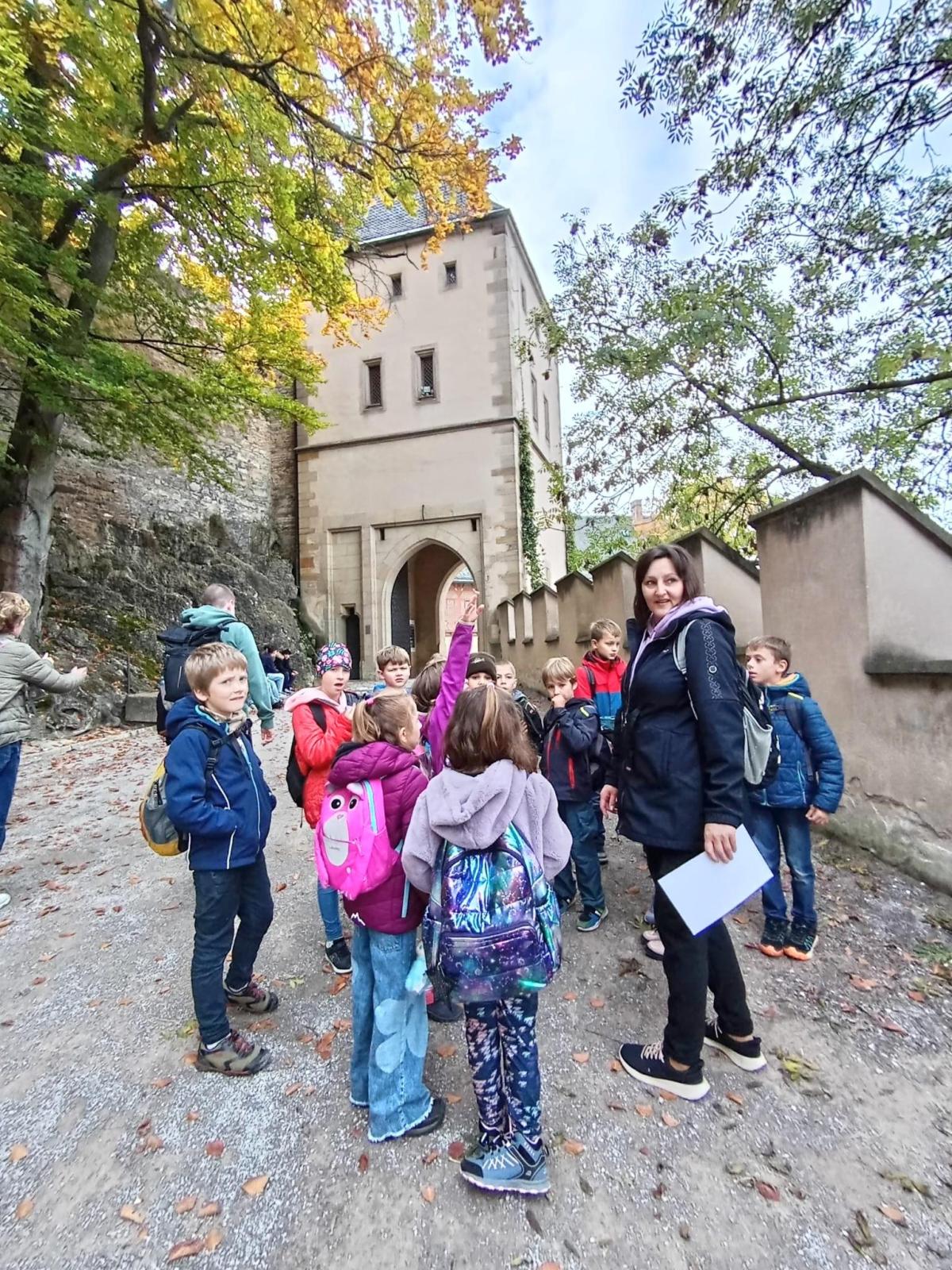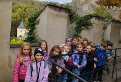 16.10.2025 jsme se vydali vlakem do Karlštejna, kde jsme se zúčastnili preventivního projektu “K6 – Šest pater prevence”, který se zaměřuje na prevenci kriminality, rizikového chování a závislostí. Počasí nám velmi přálo, takže jsme si po cestě z vlaku dali svačinku, zahráli jsme si na vláček a poté jsme se vydali pátrat po zloději obrazu. Detektivní hra nás zavedla až na hrad Karlštejn, kde jsme si na chvíli užívali krásný výhled a poté se vydali zpět. Zloděje děti odhalily :-). Další část jsme strávili v objektu Obvodního oddělení Policie ČR, kde si děti vyslechly přednášku o kyberšikaně, seznámily se s různými nástrahami, a také si připomněly i dopravní výchovu. Zpět vlakem do Litně jsme přijeli všichni spokojeni a plni zážitků :-).