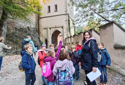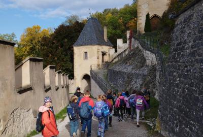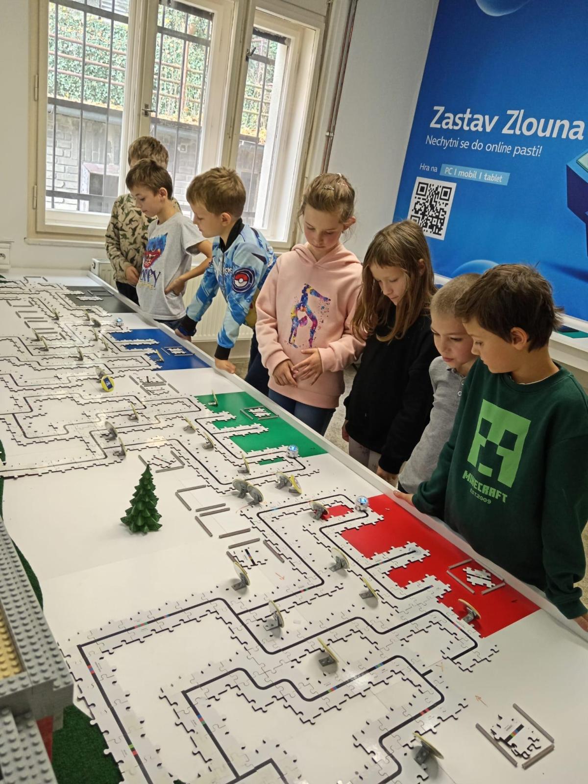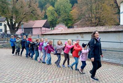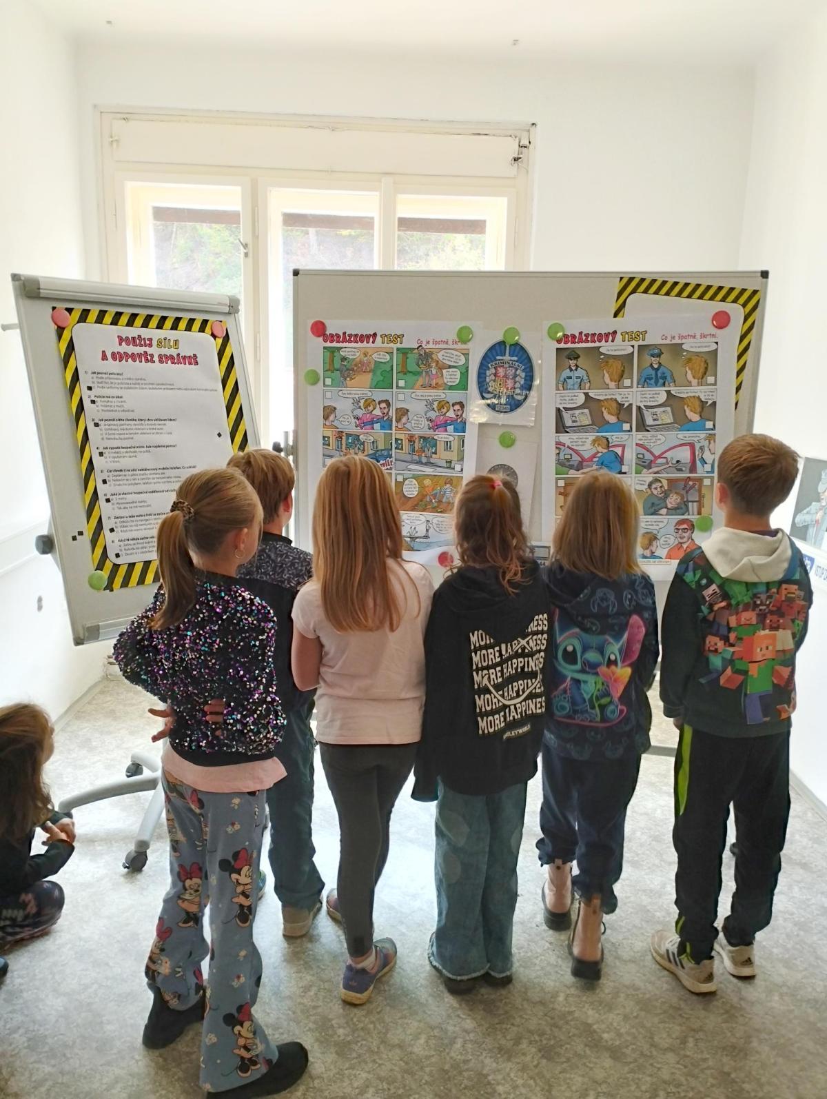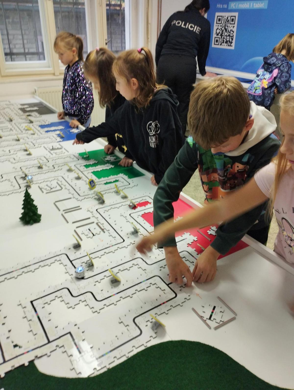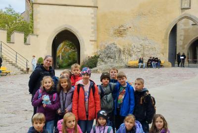 16.10.2025 jsme se vydali vlakem do Karlštejna, kde jsme se zúčastnili preventivního projektu “K6 – Šest pater prevence”, který se zaměřuje na prevenci kriminality, rizikového chování a závislostí. Počasí nám velmi přálo, takže jsme si po cestě z vlaku dali svačinku, zahráli jsme si na vláček a poté jsme se vydali pátrat po zloději obrazu. Detektivní hra nás zavedla až na hrad Karlštejn, kde jsme si na chvíli užívali krásný výhled a poté se vydali zpět. Zloděje děti odhalily :-). Další část jsme strávili v objektu Obvodního oddělení Policie ČR, kde si děti vyslechly přednášku o kyberšikaně, seznámily se s různými nástrahami, a také si připomněly i dopravní výchovu. Zpět vlakem do Litně jsme přijeli všichni spokojeni a plni zážitků :-).