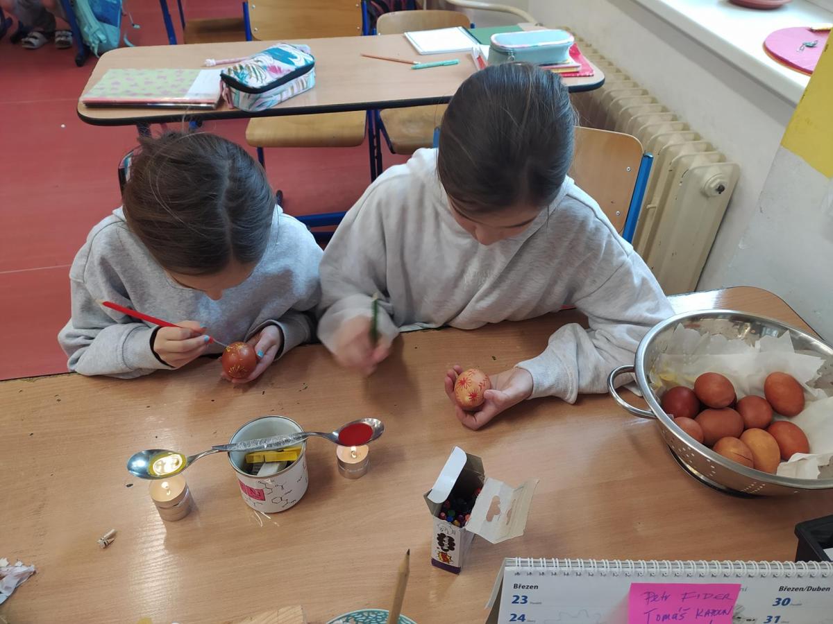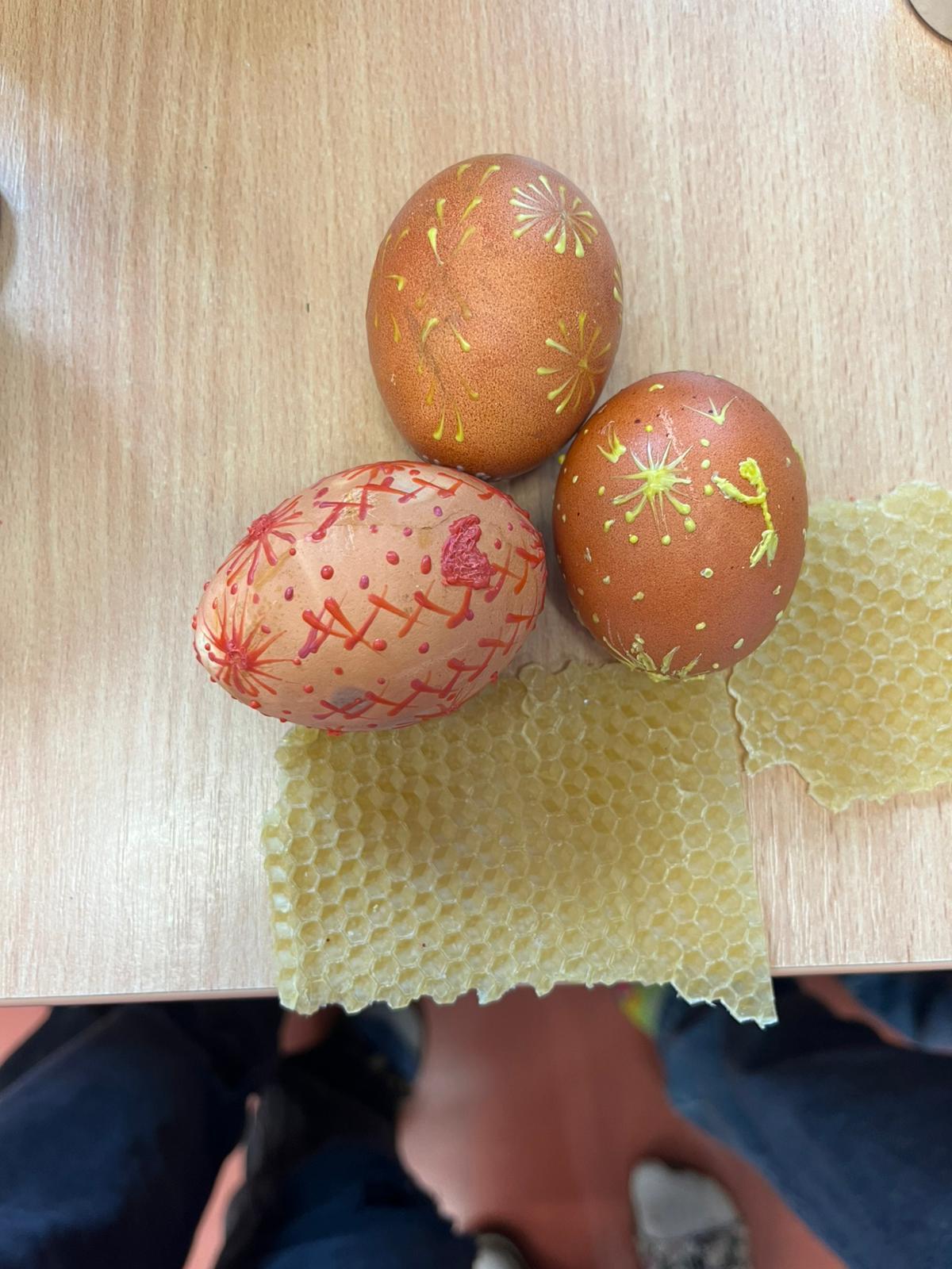 Blíží se velikonoční svátky a my jsme se pustili do zdobení vajíček obarvených v cibulových slupkách voskem. Jak se nam to podařilo?