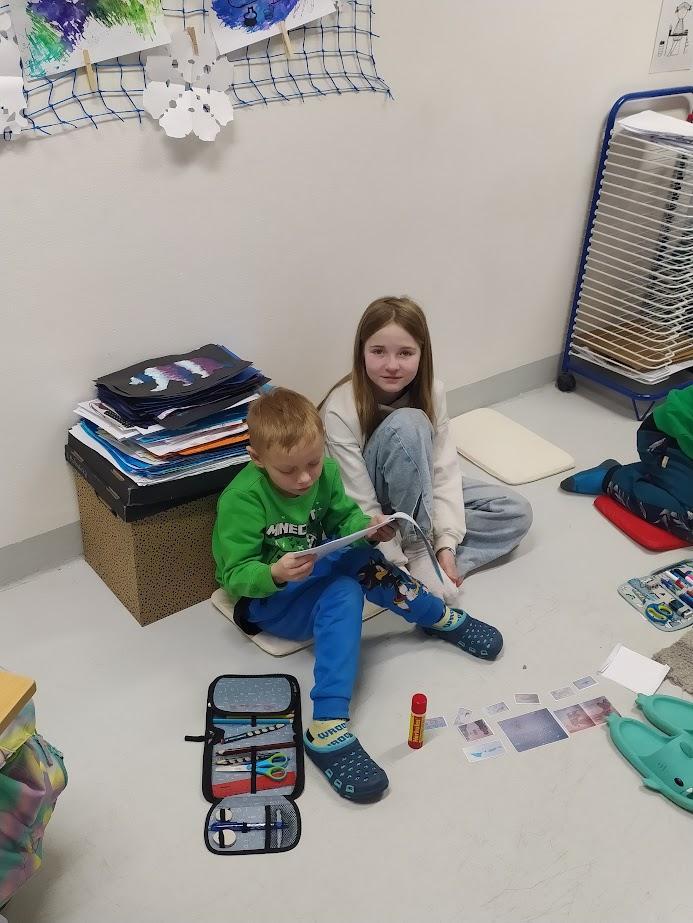 Jak přečíst knihu Podivuhodný příběh Eskymo Welzla za dvě vyučovací hodiny na to přišla paní učitelka žáků 1.B Kateřina Hrodková a pozvala žáky 5.A, aby pomohly s touto zakázkou spolužákům z 1.B a že se lekce vydařila nám ukázaly veselé tváře dětí ozdobené brýlemi proti sněžné slepotě.