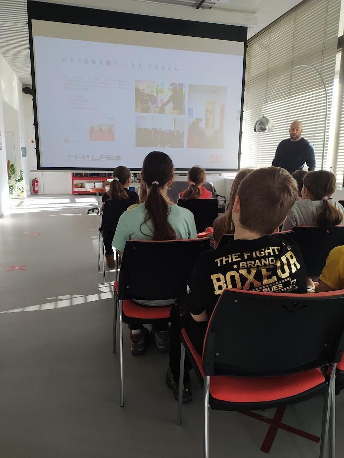 Žáci se vypravili do Prahy do Kongresového centra do HW labu k panu Pavlovi Beránkovi, kde se seznámili s možnostmi komunikace a využití AI při tvorbě školních projektů.