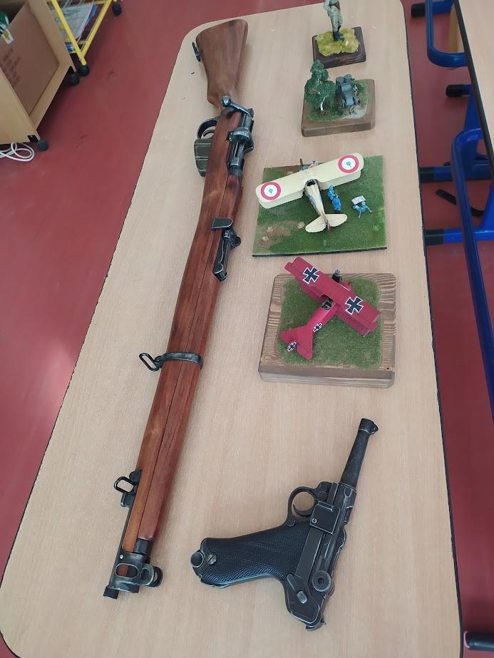 Pan Čadil dětem ukázal i repliky zbraní z první světové války. Dokonce jim pustil i autentickou nahrávku střelby z té doby.