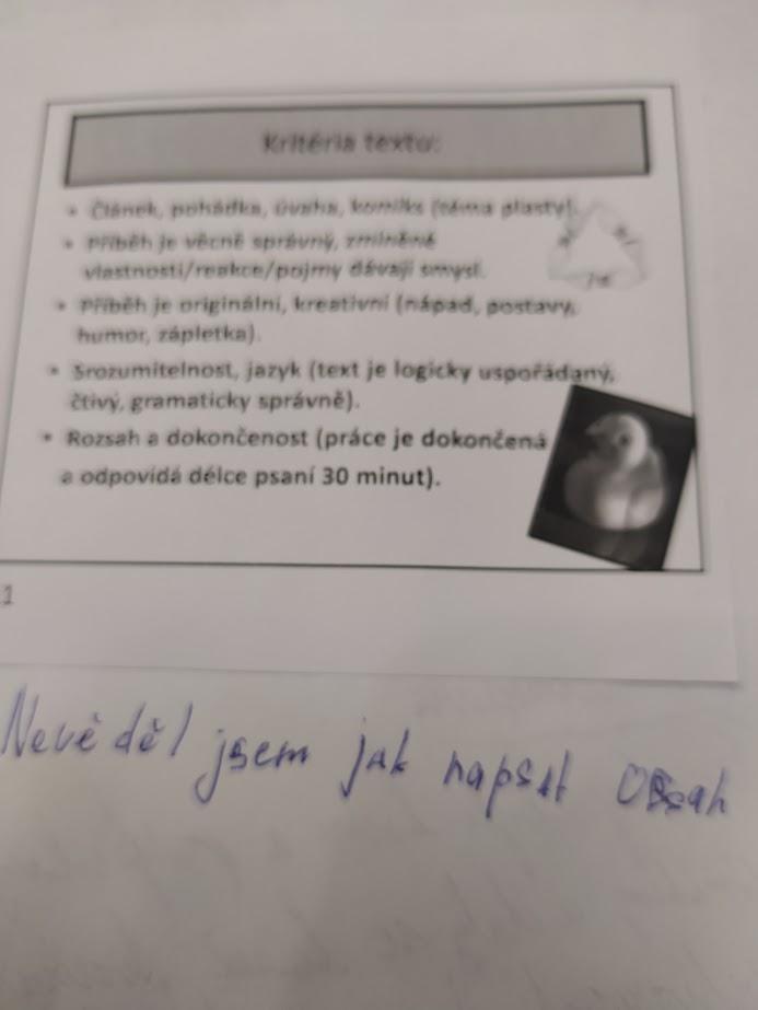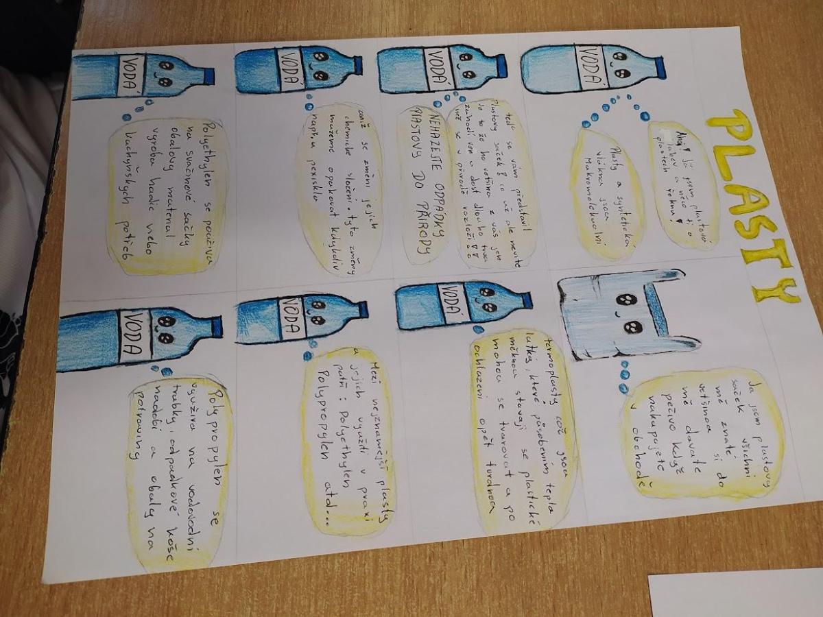 Žáci 9.A dostali zadání napsat práci o plastech. Obdrželi kriteria textu a hodnotící tabulku. Žáci 5.A se dostali do rolí redaktorů a směli posuzovat a zaznamenávat do tabulky, zda byl text srozumitelný, čtivý, kreativní, zda dával smysl, logicky uspořádaný a dokončený. Děti směly připsat i své komentáře.