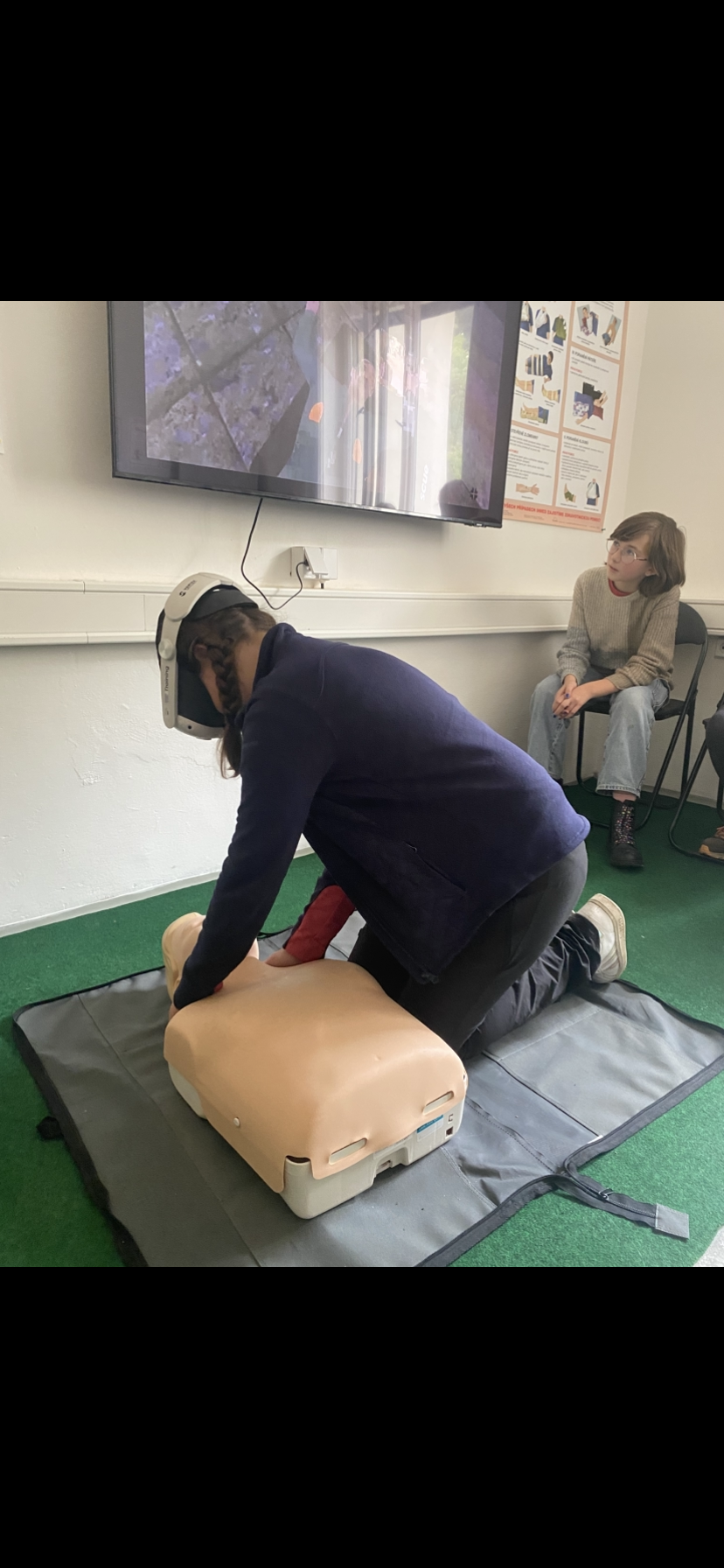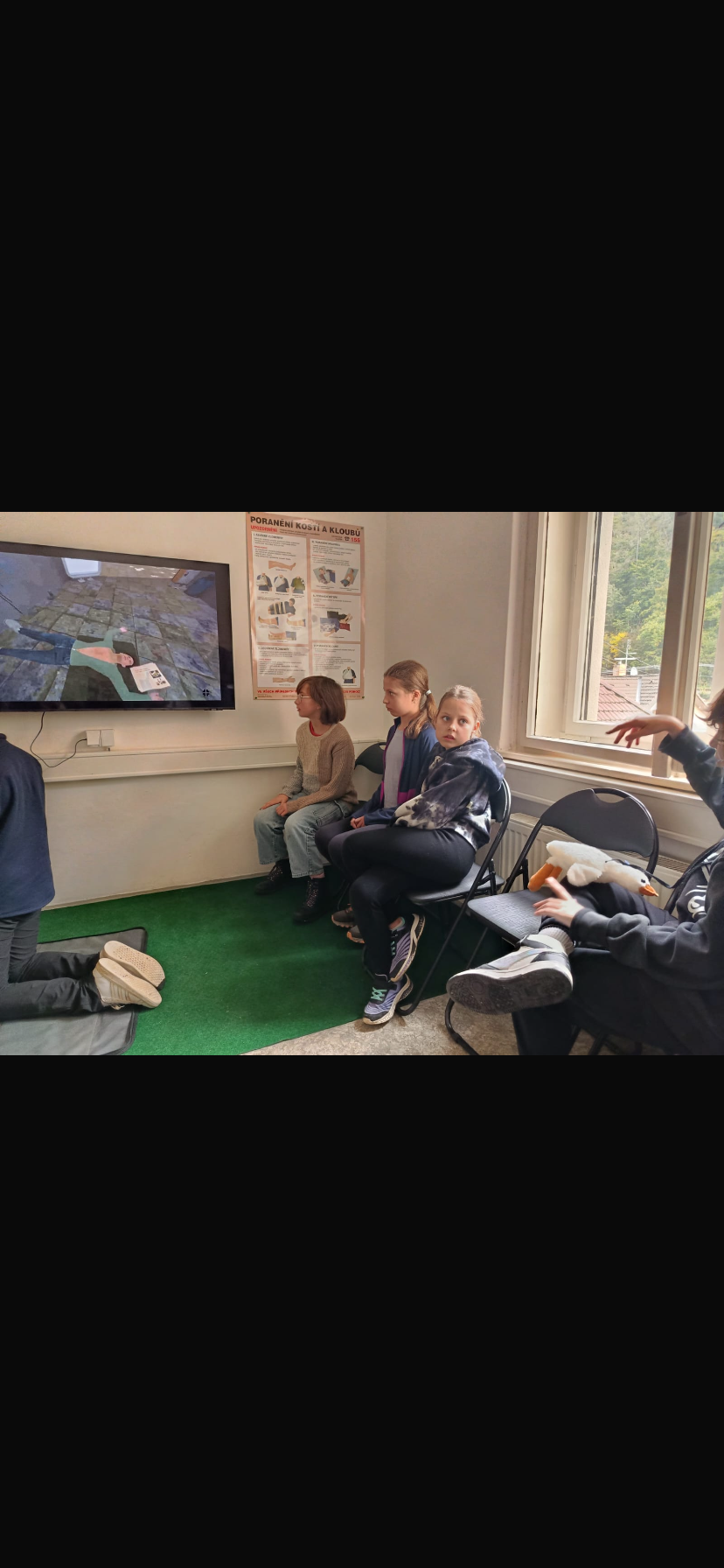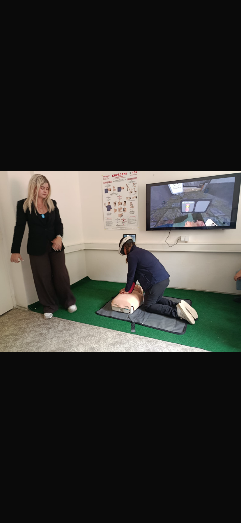 V druhé části programu jsme měli přednášku o první pomoci a o tom, jak moc je důležité dávat na sebe pozor. Vyzkoušeli jsme si první pomoc a jak postupovat podle pokynů ze záchranky.