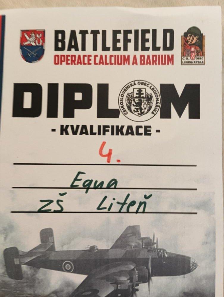 Vyrazili jsme do Prahy na branný závod Operace Battlefield. Po dvou minulých úspěšných ročnících, kdy jsme postoupili do kola republikového, jsme i letos měli postupové ambice. A podařilo se. Šestičlenné družstvo „ Osmsetdesítka“ složené ze šesti žáků devátého ročníku, Samantha Krásná, Zuzka Borovková, Karolína Dubenová, Tomáš Pokorný, Vincent Jaeger a Marek Homola, postoupilo do republikového kola, které se letos bude konat v 19. května v Praze. Druhé družstvo EUQA, ve složení Tereza Boháčková, Karolína Vlasáková, Adéla Knopová, Lenka Šlégrová, Ondřej Klomínek a Vojta Němec, překvapilo ziskem poněkud neoblíbeného čtvrtého místa, ale z jedenácti družstev to byl skutečně skvělý výkon. Jejich závěrečný úspěšný pokus doslova v posledním vteřinách závodu, kdy Ondřej s Adélkou porušili několik fyzikálních zákonů a pro mě nepochopitelně zdolali jednu z nejtěžších překážek – Jakubův žebřík, byl obdivuhodný. Všem soutěžícím děkuji za dobrou reprezentaci.